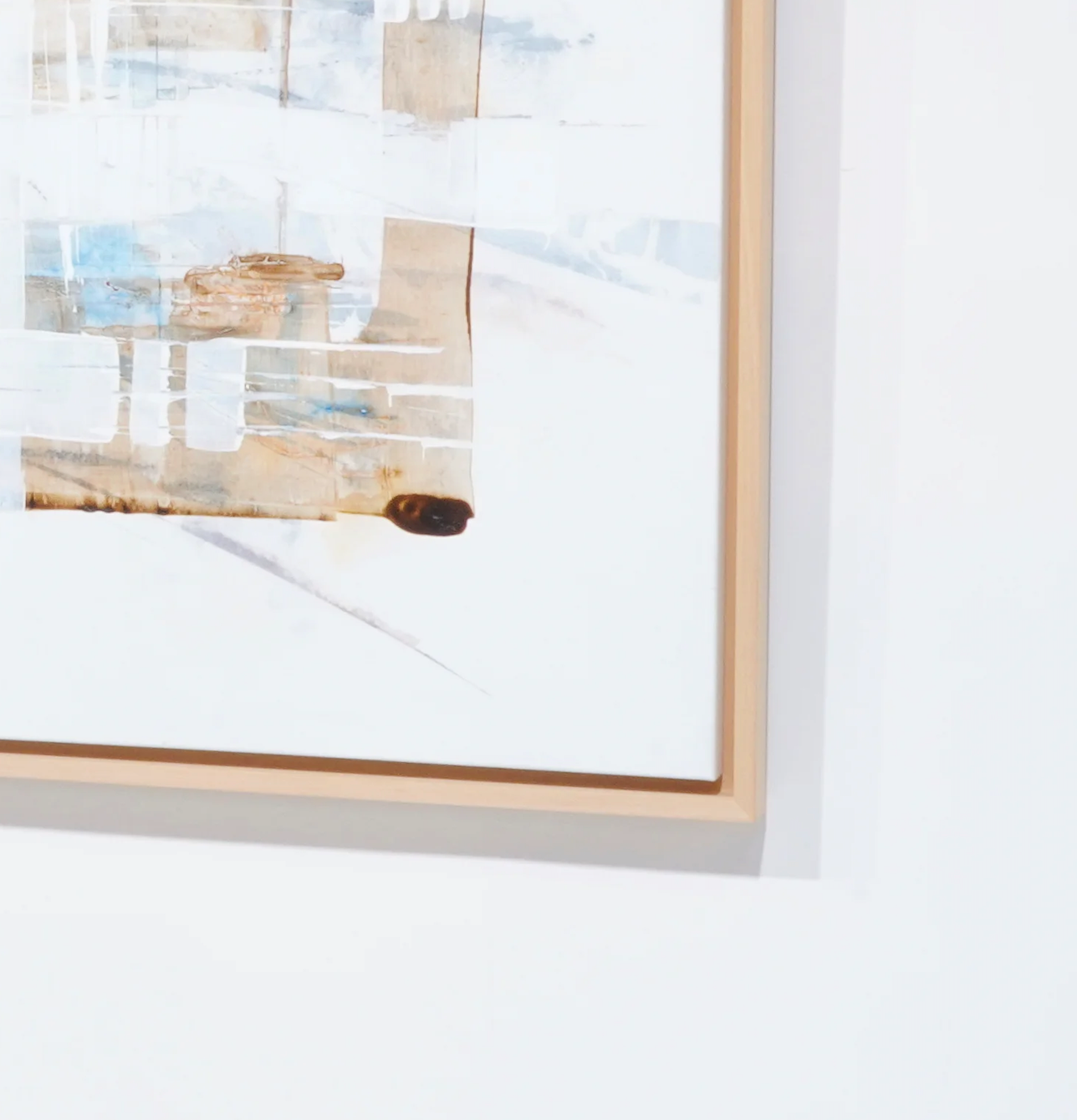 Espacios 2026 est une œuvre contemporaine signée Monti, artiste espagnol de la région d’Alicante, présentée dans un élégant cadre en bois naturel qui accentue son caractère épuré et lumineux. Réalisée en peinture acrylique, cette composition abstraite explore la notion d’espace, de structure et de respiration visuelle.