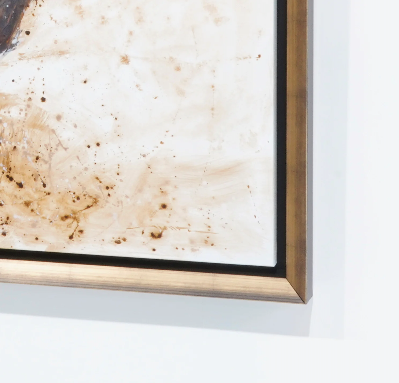 L’encadrement en bois massif noir et or joue ici un rôle essentiel. Il ne se contente pas d’accompagner la toile : il en prolonge la présence et en magnifie l’impact visuel. Le noir souligne la profondeur et la tension dramatique de la composition, tandis que l’or apporte une dimension précieuse, élégante et intemporelle. Cet encadrement de luxe renforce ainsi le caractère puissant de l’œuvre et lui donne une allure particulièrement raffinée, idéale pour un intérieur haut de gamme, un espace de réception ou une collection privée.