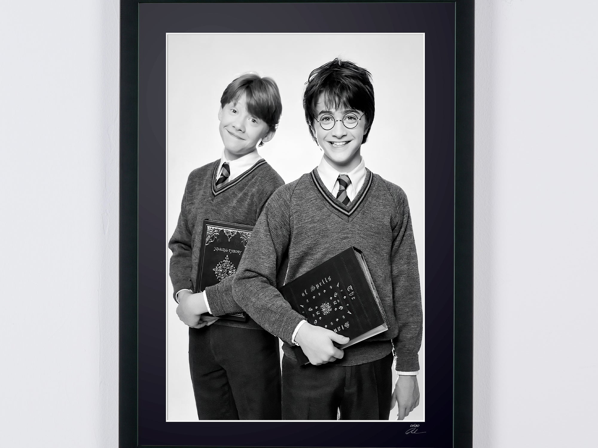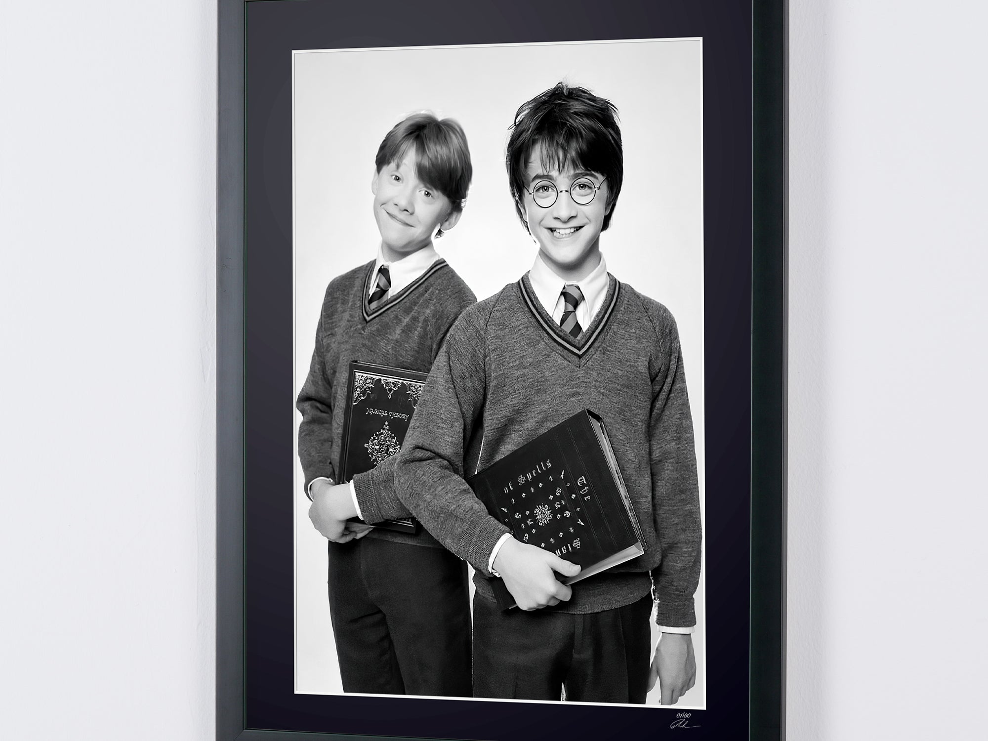 Photo encadrée de "Harry Potter, Harry Potter Cast - Duo Promo Shoot" — Tirage d'art noir et blanc sur papier Fine Art 70x50 cm