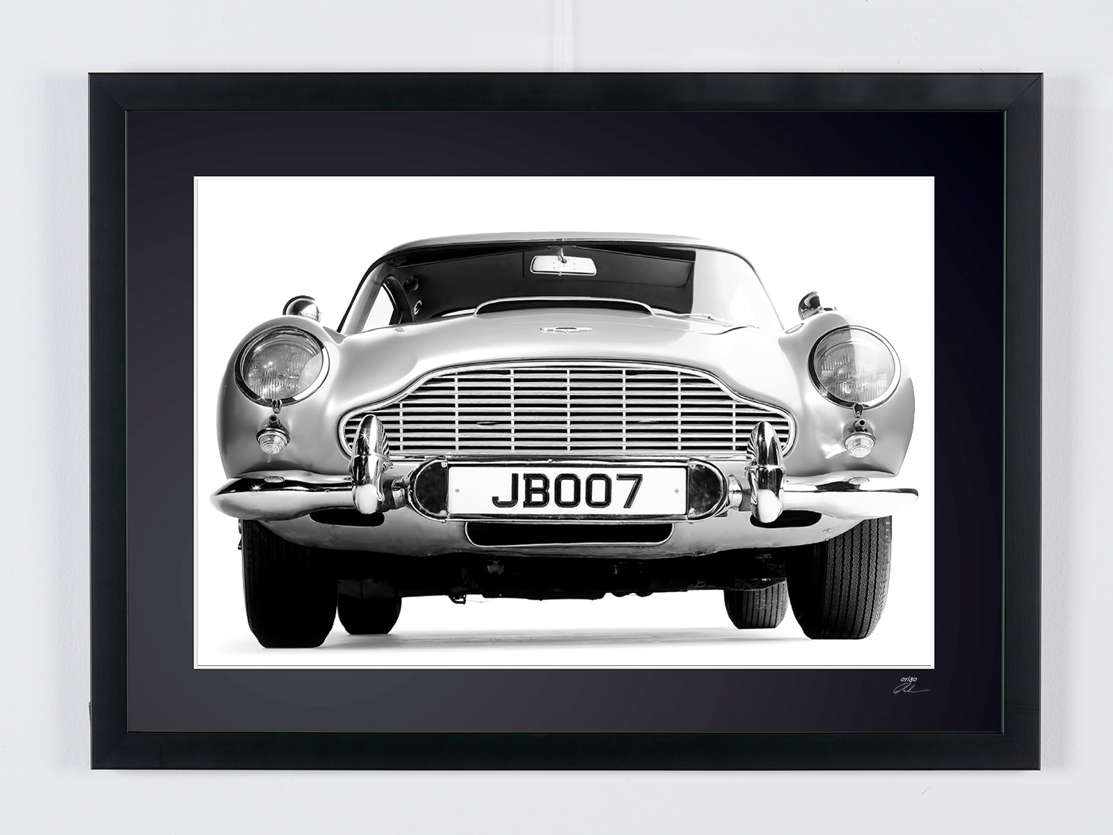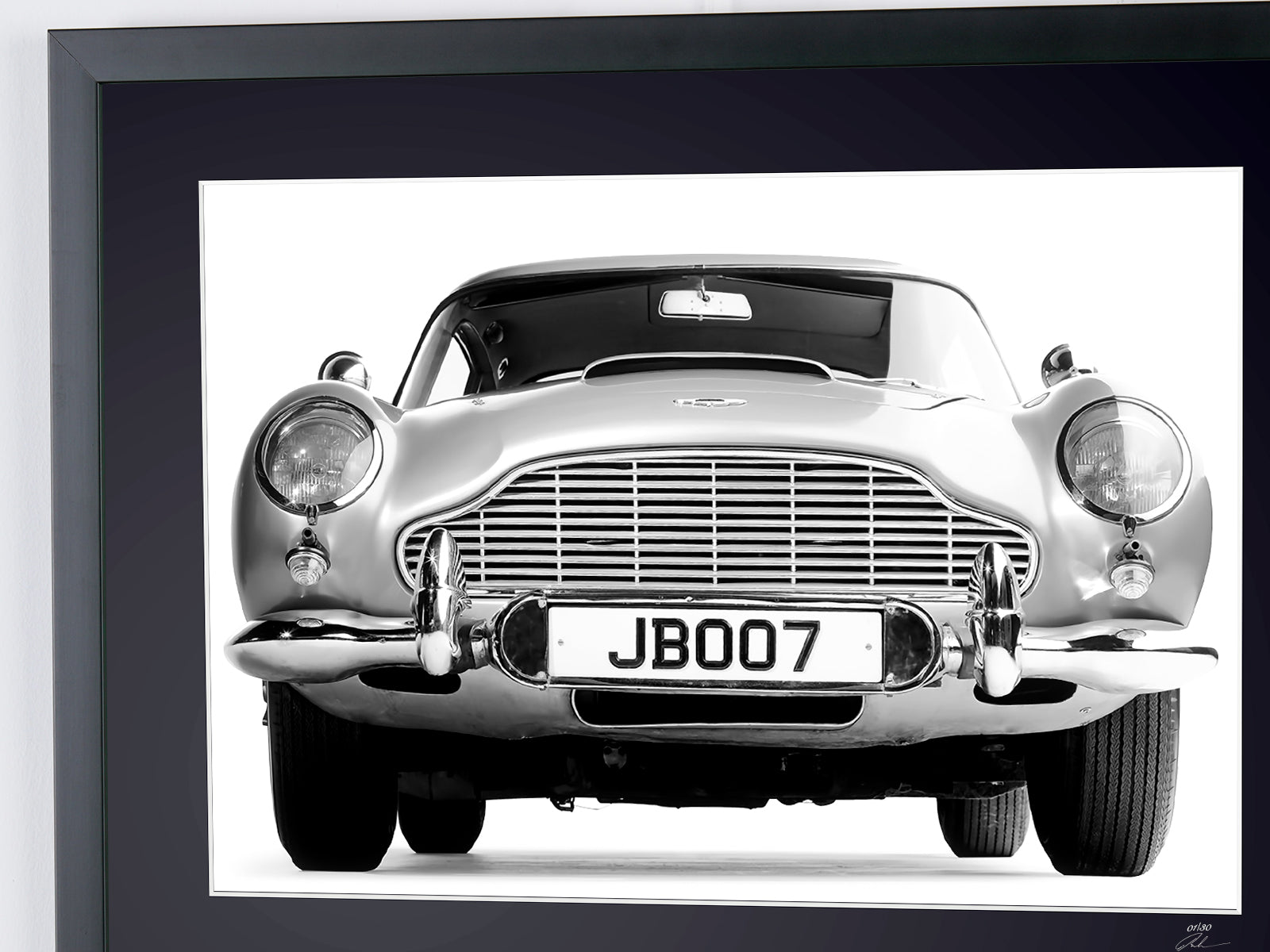 Photo encadrée de "James Bond 007 - Aston Martin DB5 History Models" — Tirage d'art noir et blanc sur papier Fine Art 70x50 cm