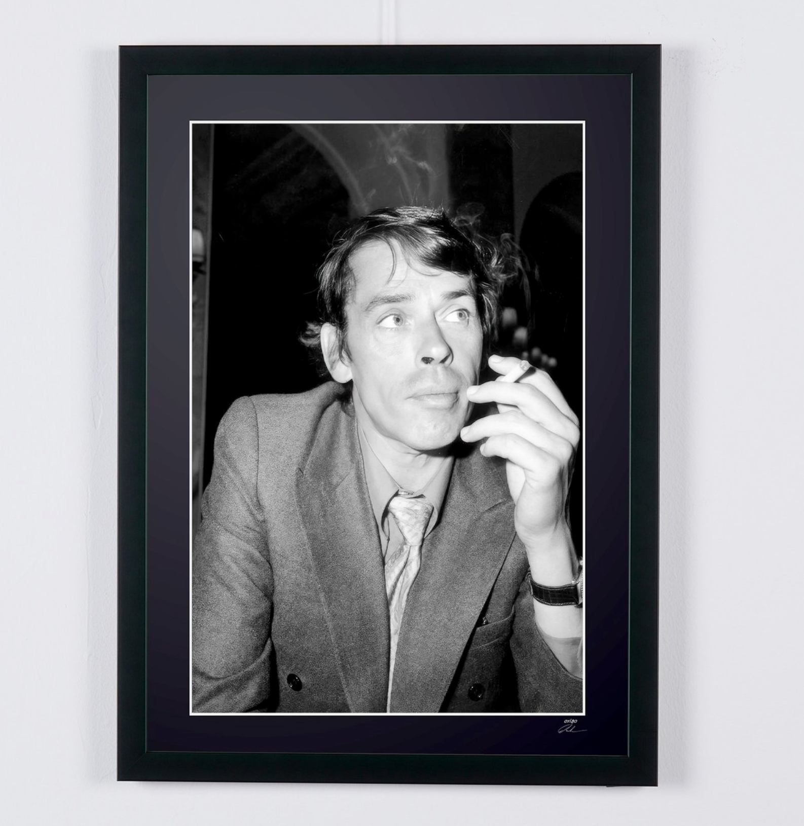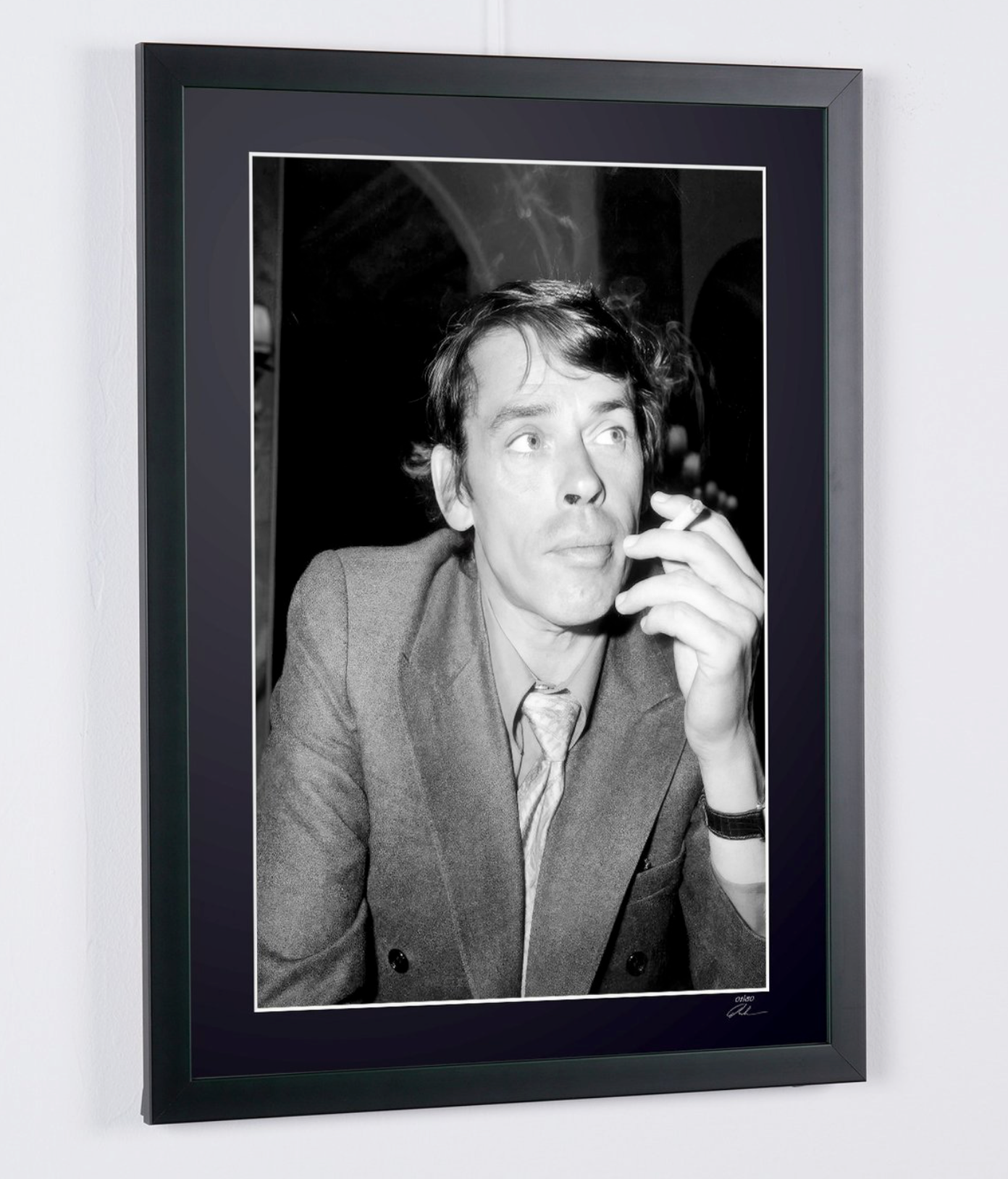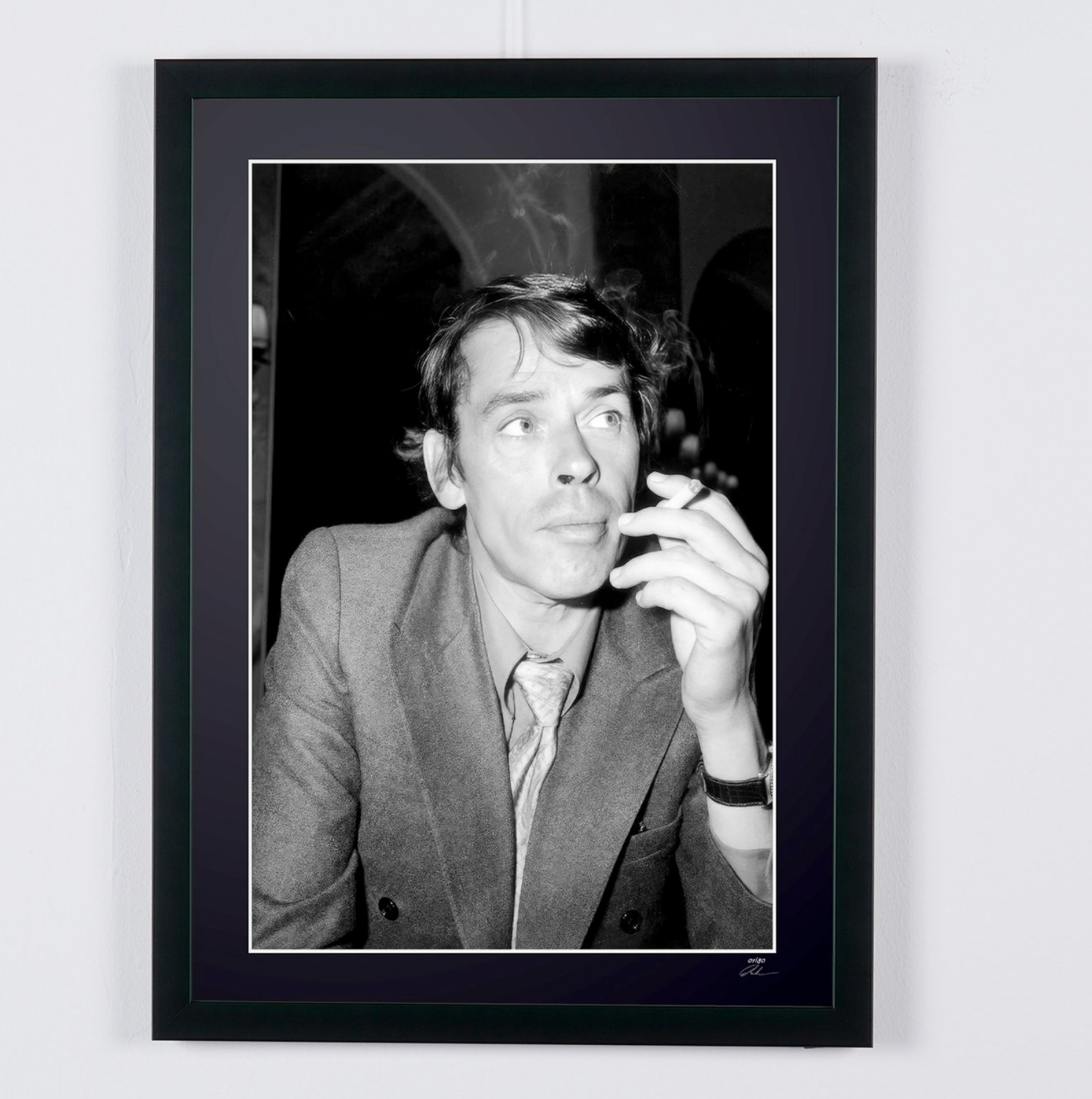 Photo encadrée de "Jaques Brel - Actor & singer - Wooden Framed 70X50 cm - Original Certificate (COA), Hologram Logo Editor and QR Code" — Tirage d'art noir et blanc sur papier Fine Art 70x50 cm