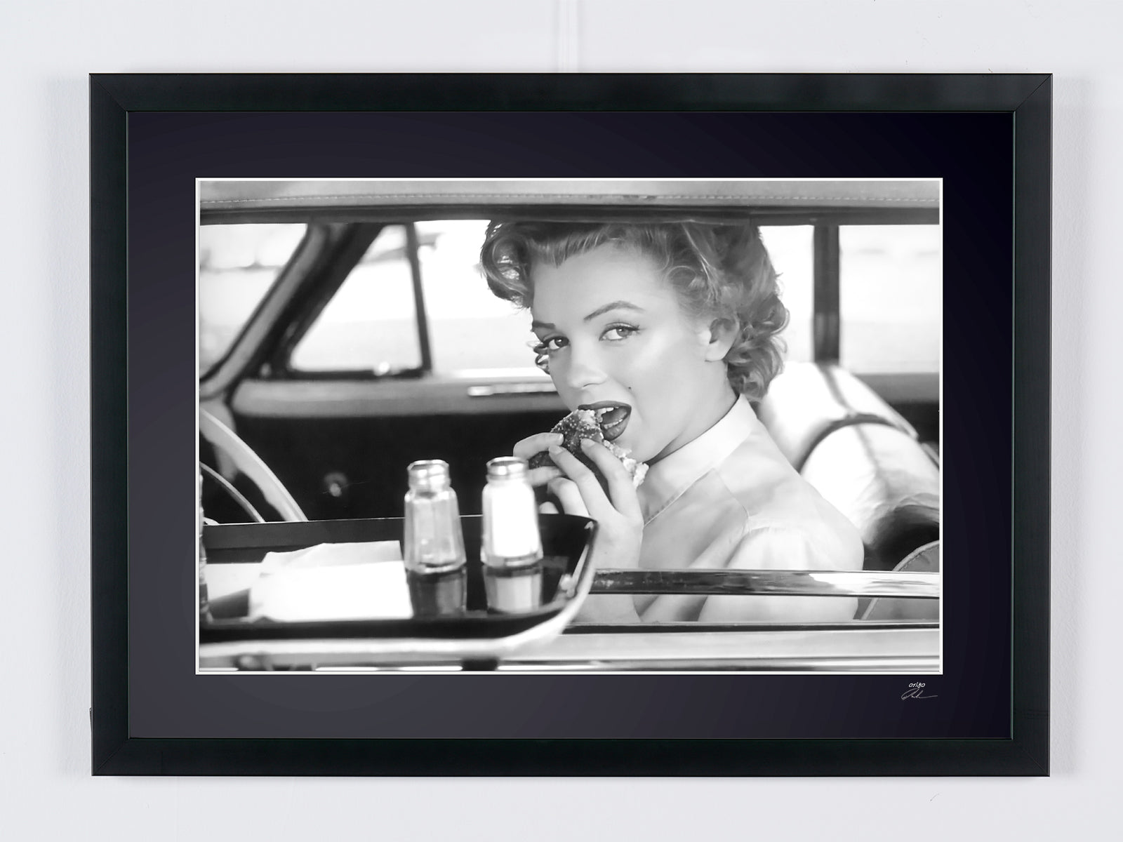 Photo encadrée de "Marilyn Monroe at The Drive-in, 1952" — Tirage d'art noir et blanc sur papier Fine Art 70x50 cm