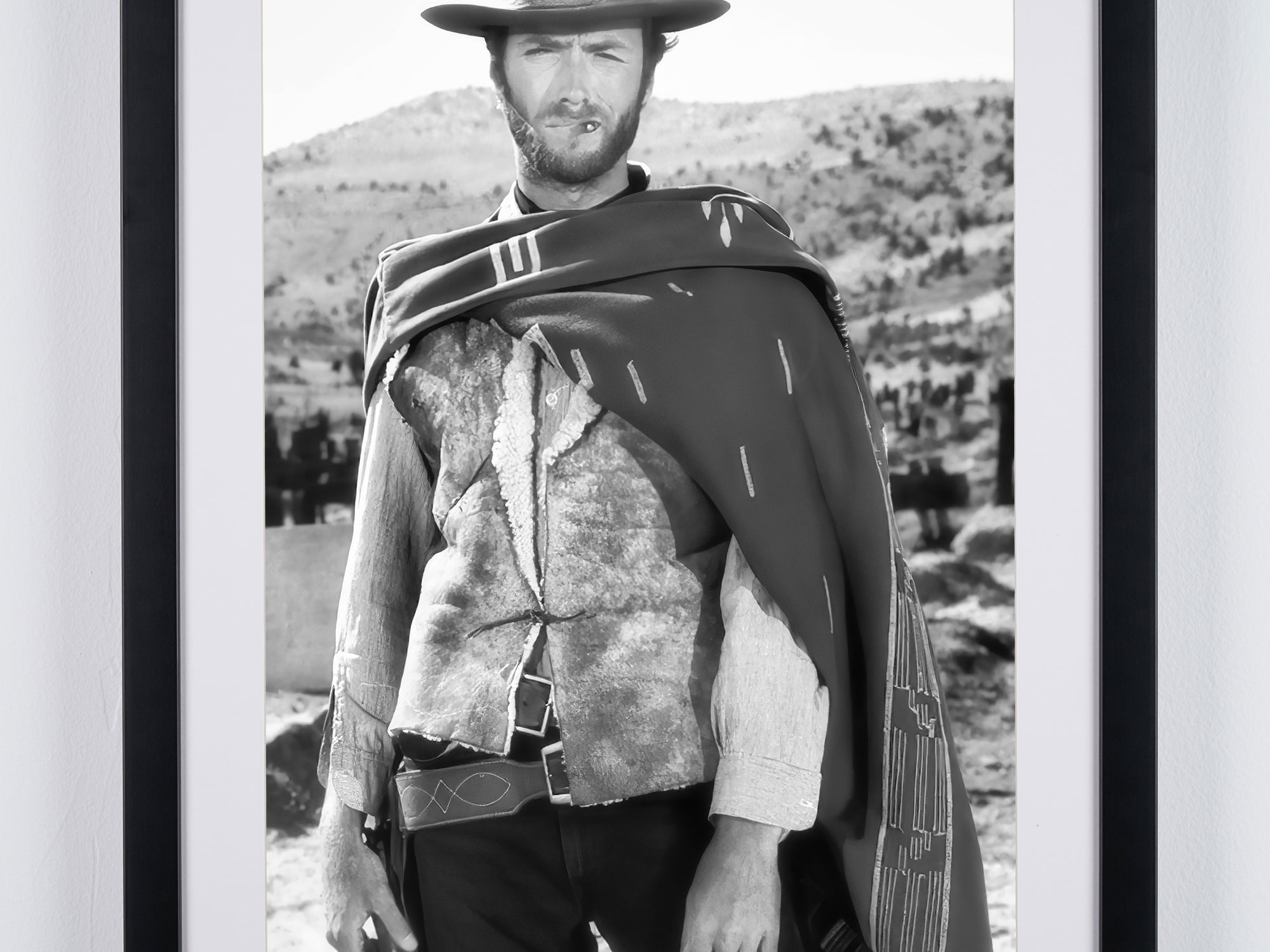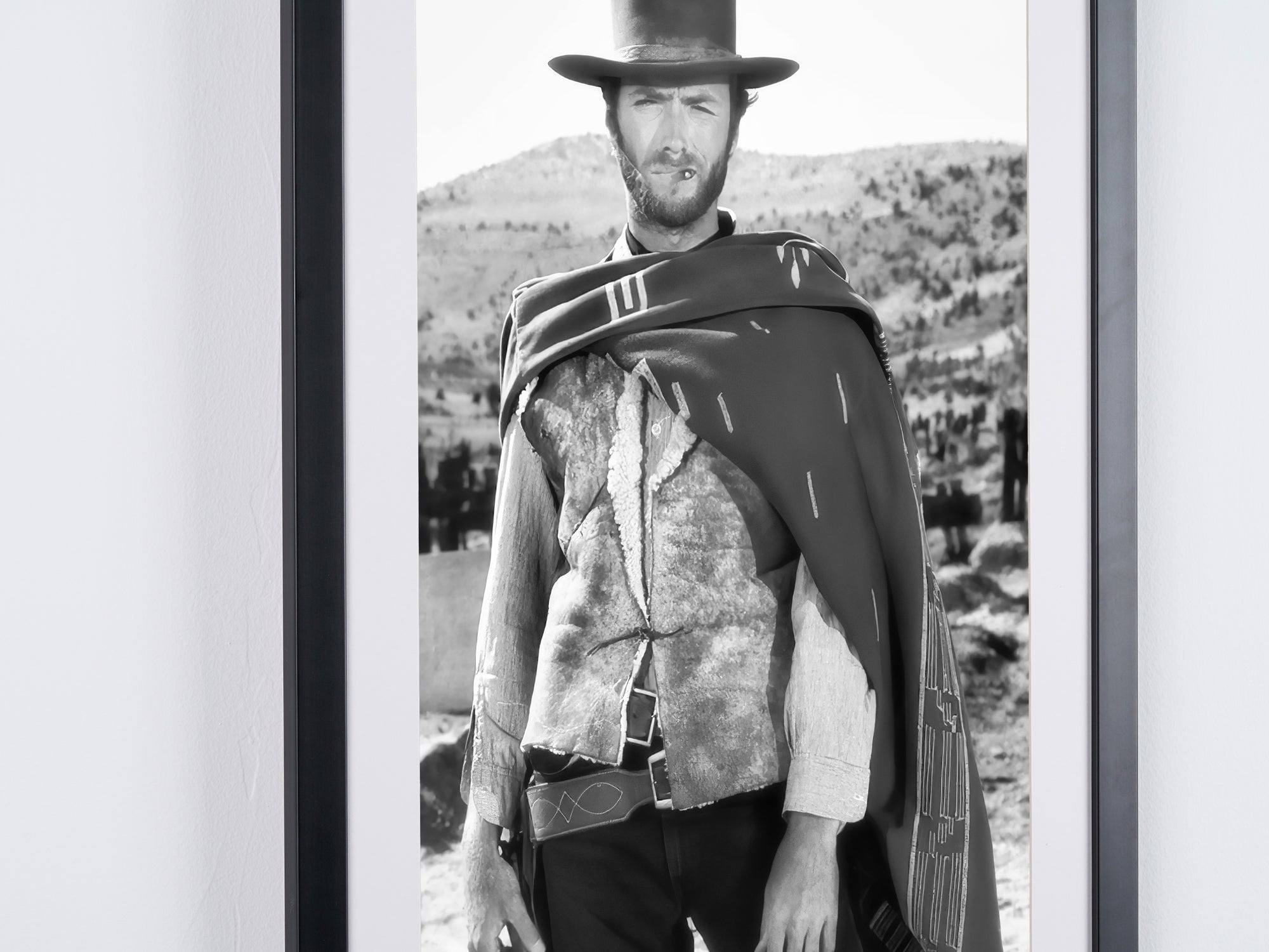 Photo encadrée de "The Good, the Bad and the Ugly (1966) - Clint Eastwood as Blondie" — Tirage d'art noir et blanc sur papier Fine Art 70x50 cm