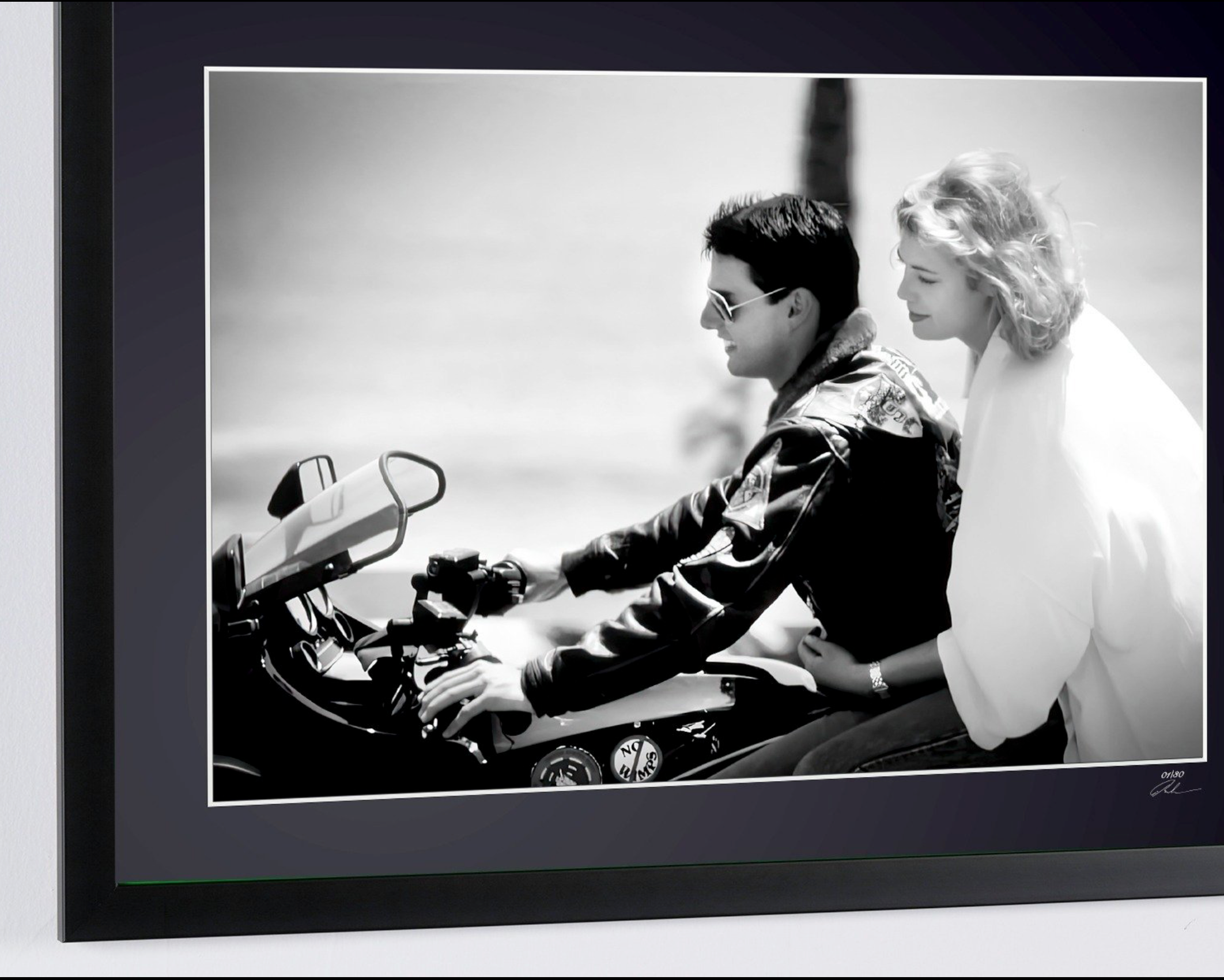 Photo encadrée de "Top Gun 1986 - Tom Cruise & Kelly Mc Gillis" — Tirage d'art noir et blanc sur papier Fine Art 70x50 cm