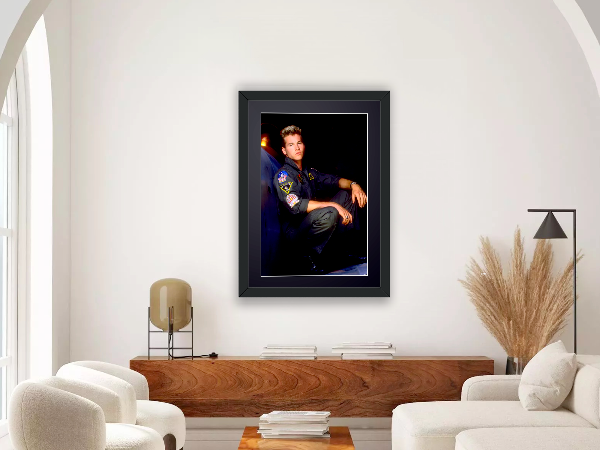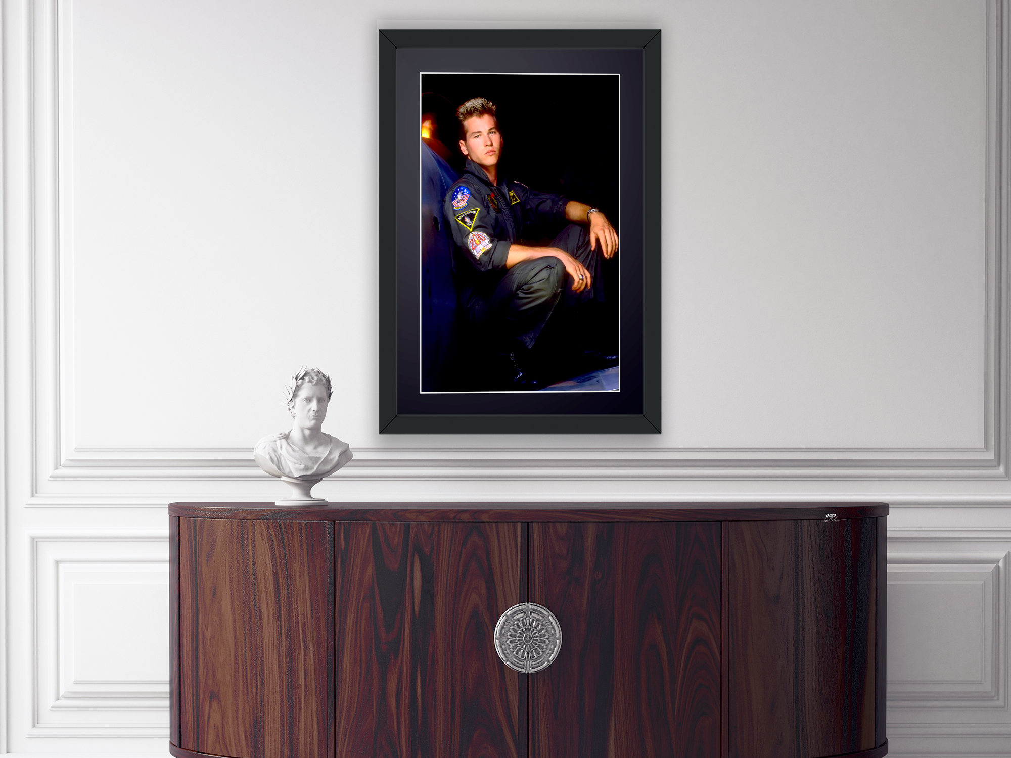 Photo encadrée de "Top Gun (1986) - Val Kilmer (Ice)" — Tirage d'art noir et blanc sur papier Fine Art 70x50 cm