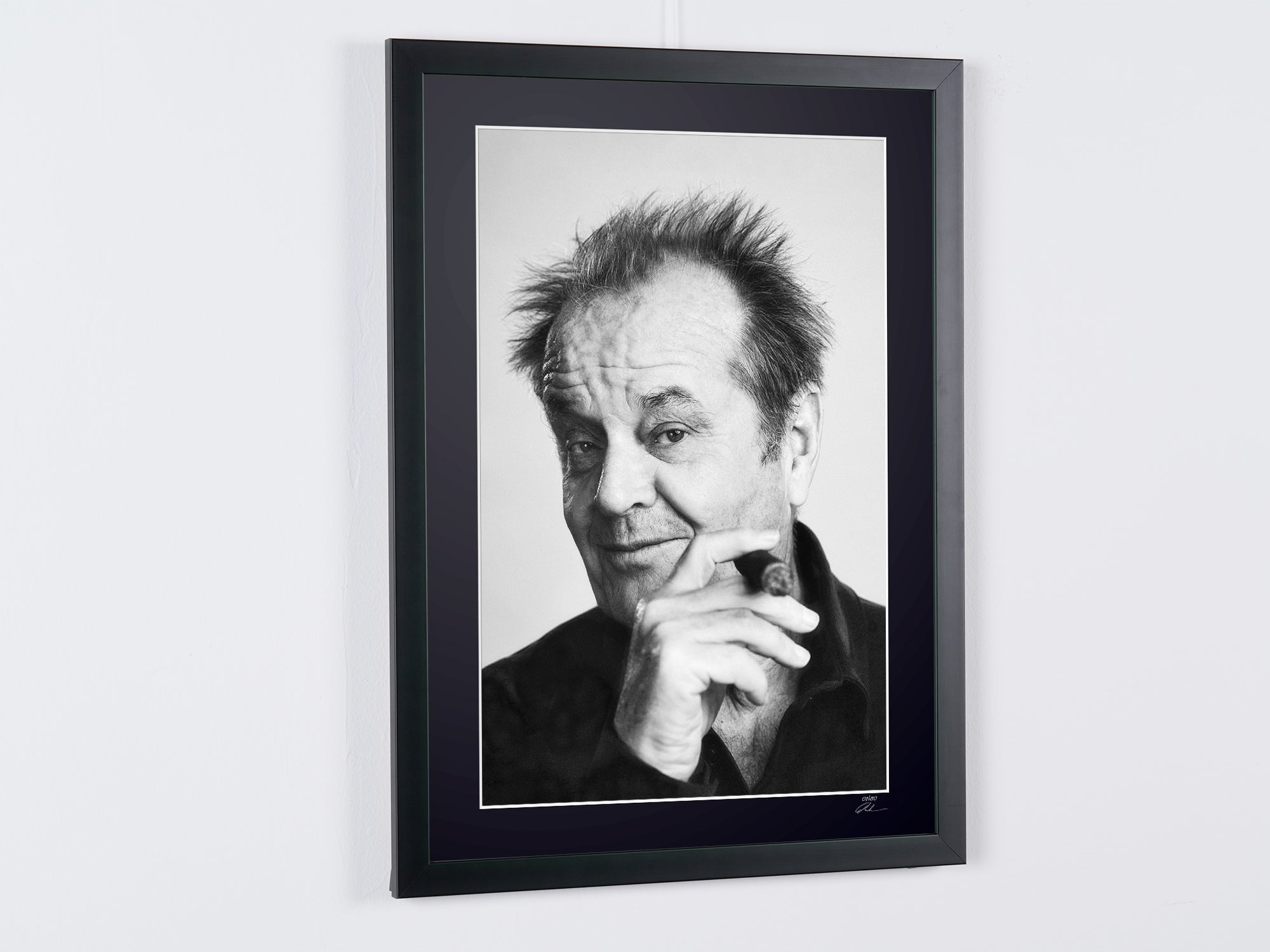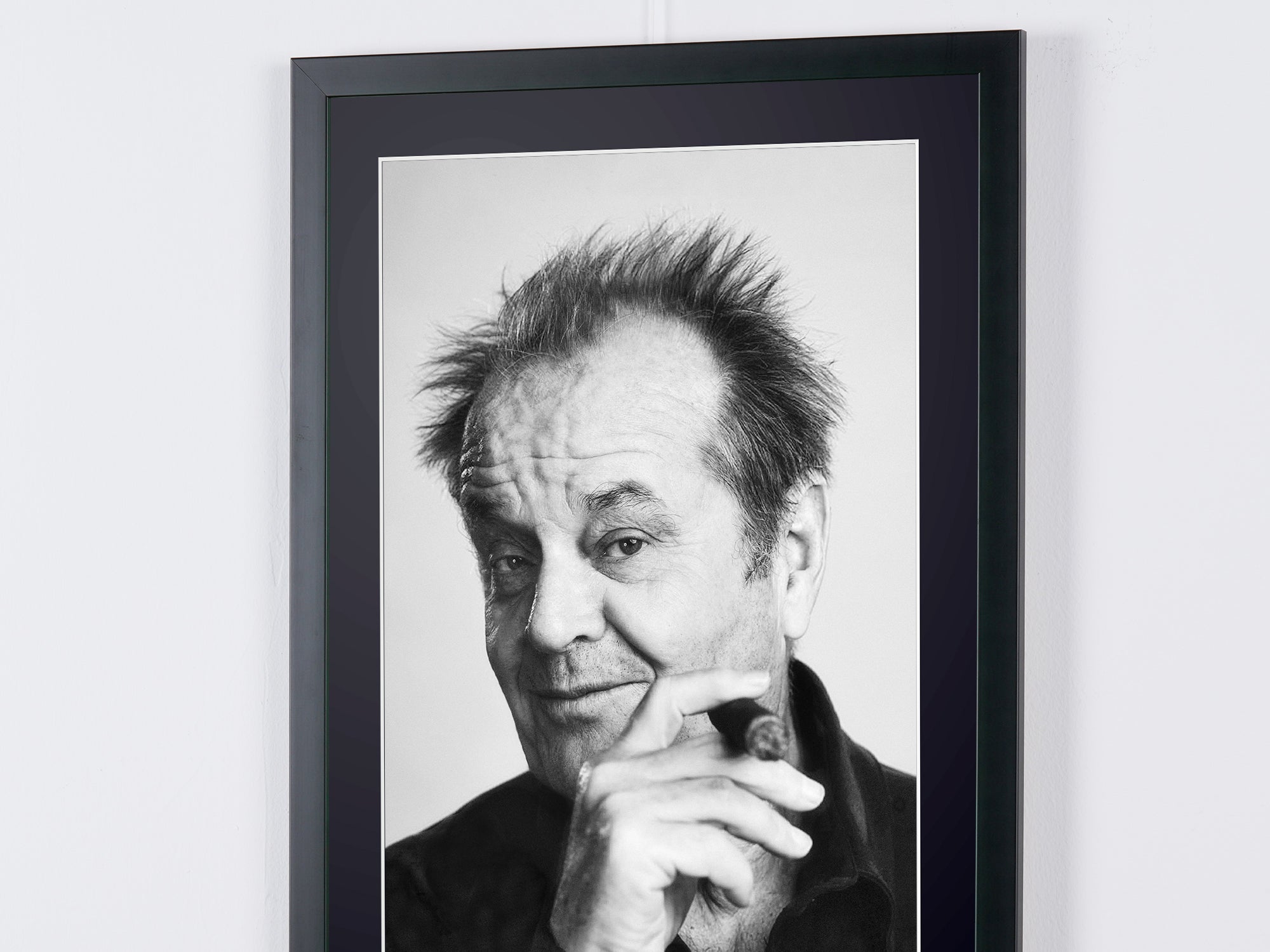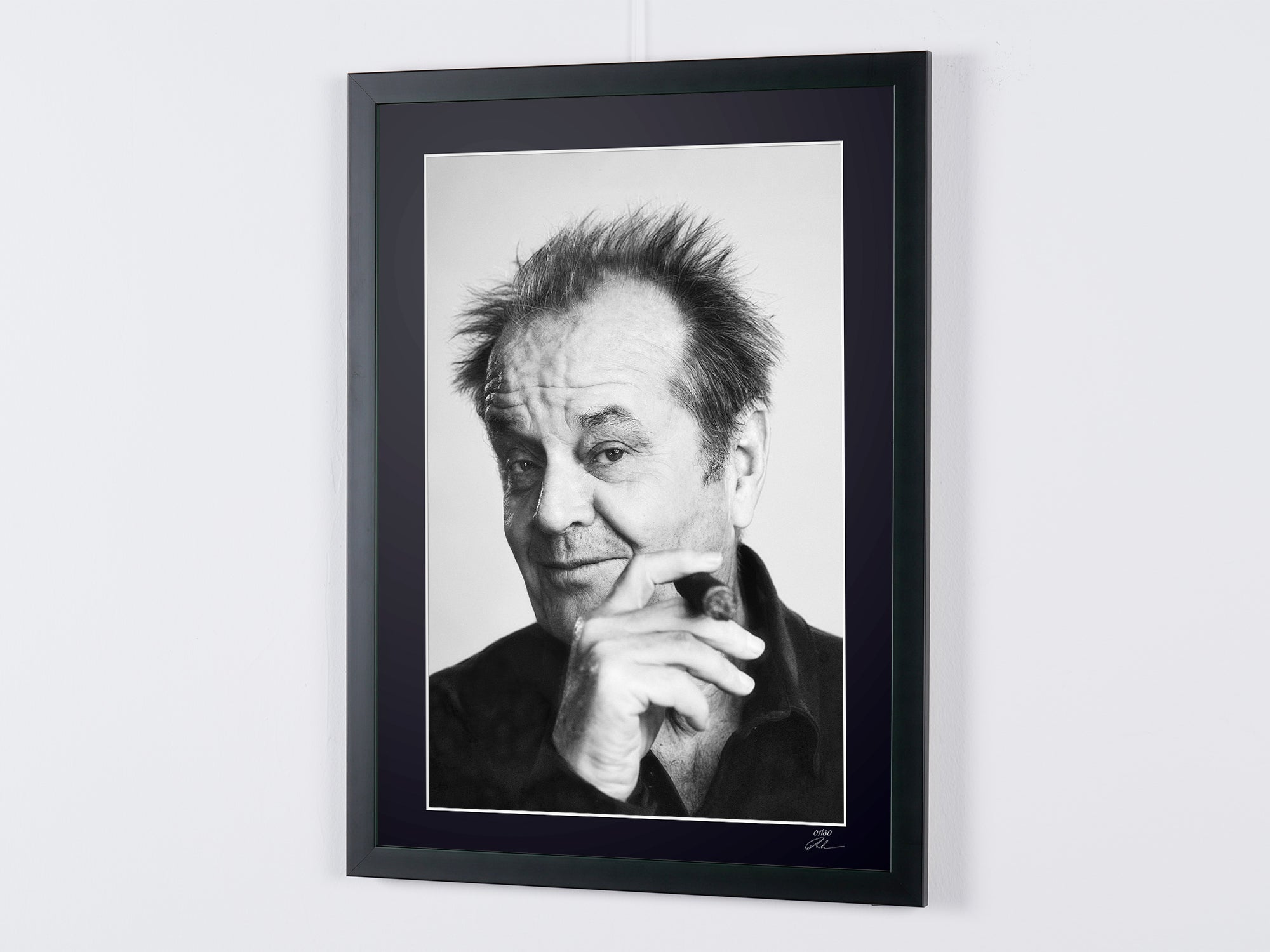 Photo encadrée de "Jack Nicholson Portrait (with cigar)" — Tirage d'art noir et blanc sur papier Fine Art 70x50 cm