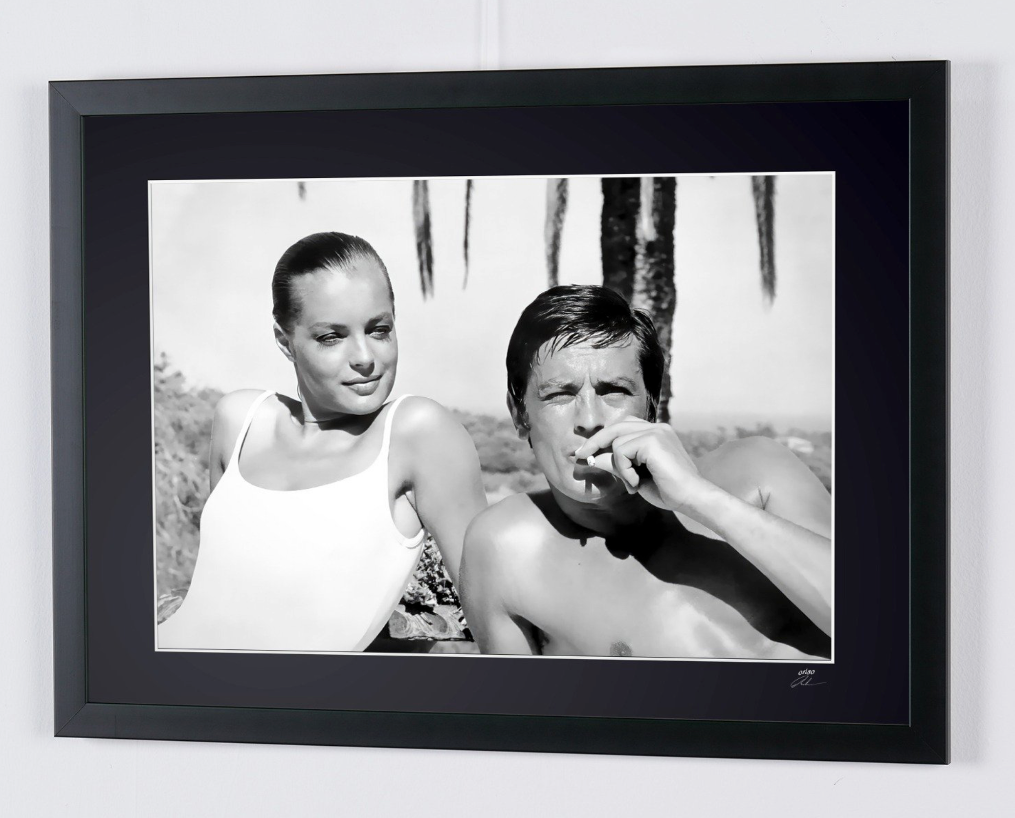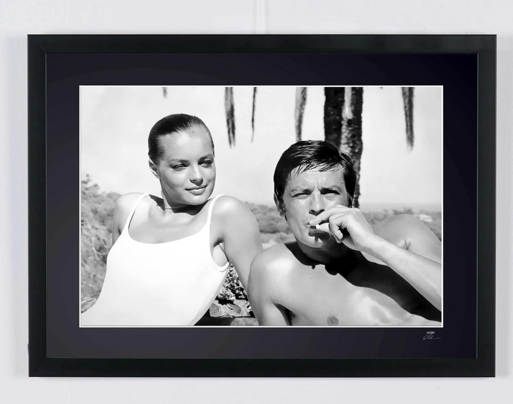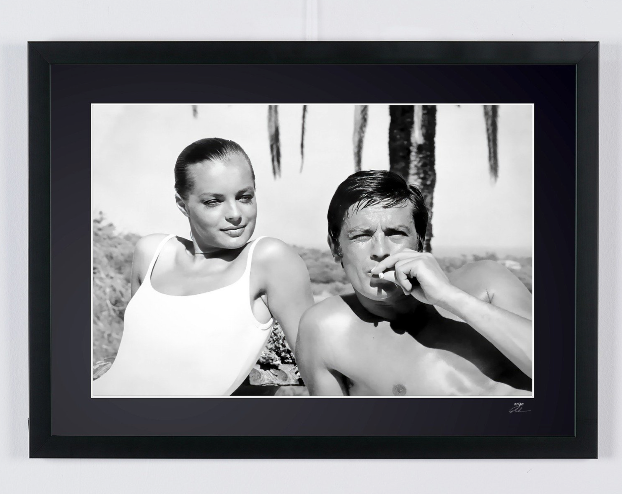 Gerahmtes Foto von „La Piscine 1969 – Romy Schneider & Alain Delon“ — Schwarz-Weiß-Kunstdruck auf Fine-Art-Papier 70 x 50 cm