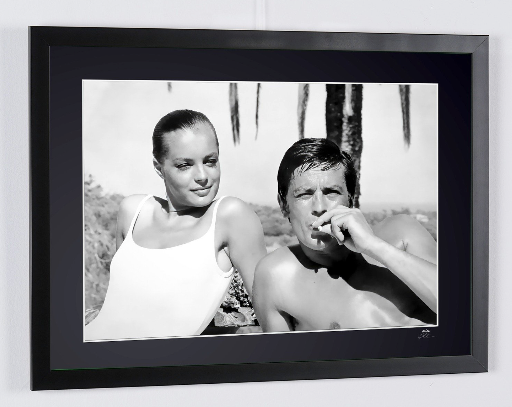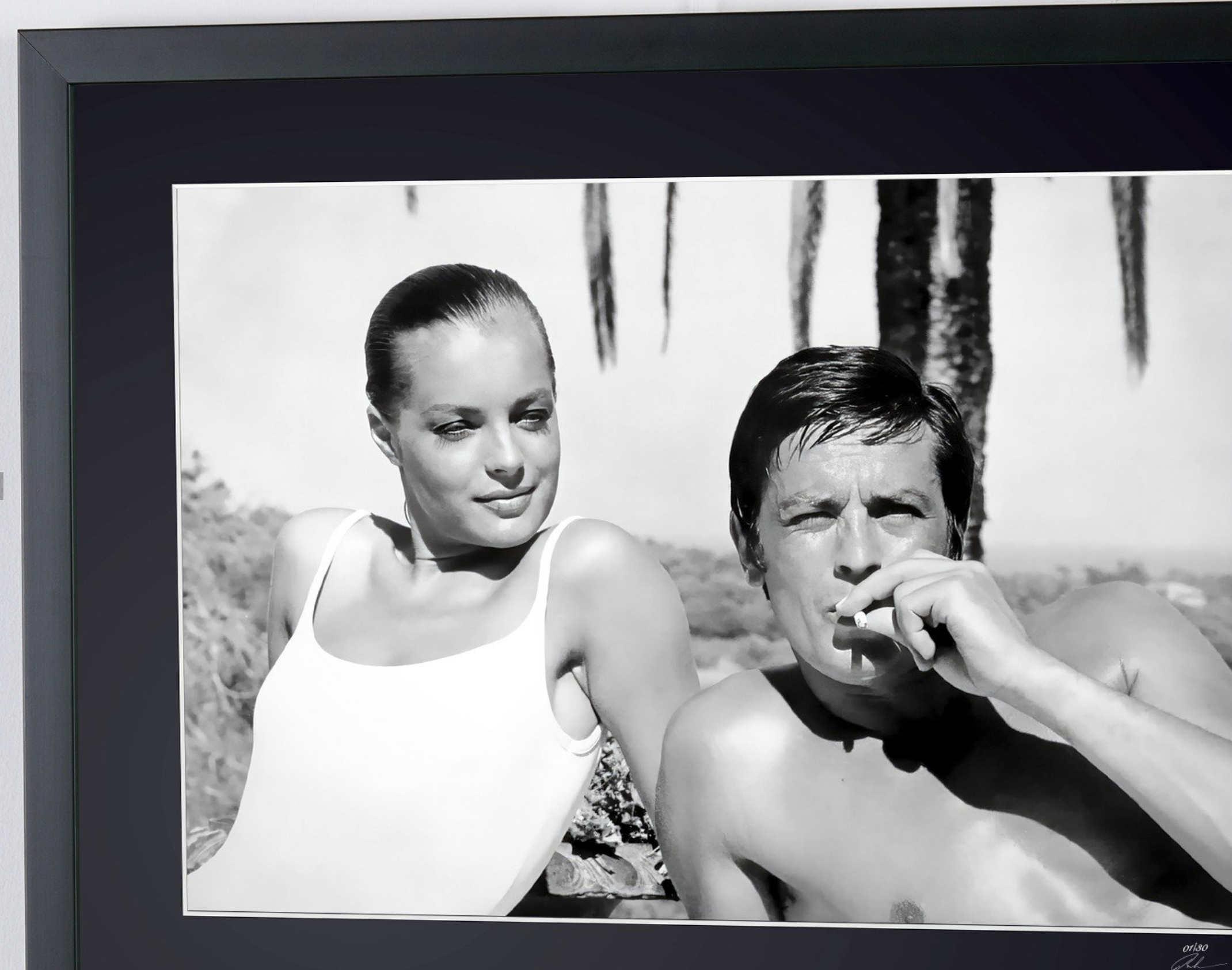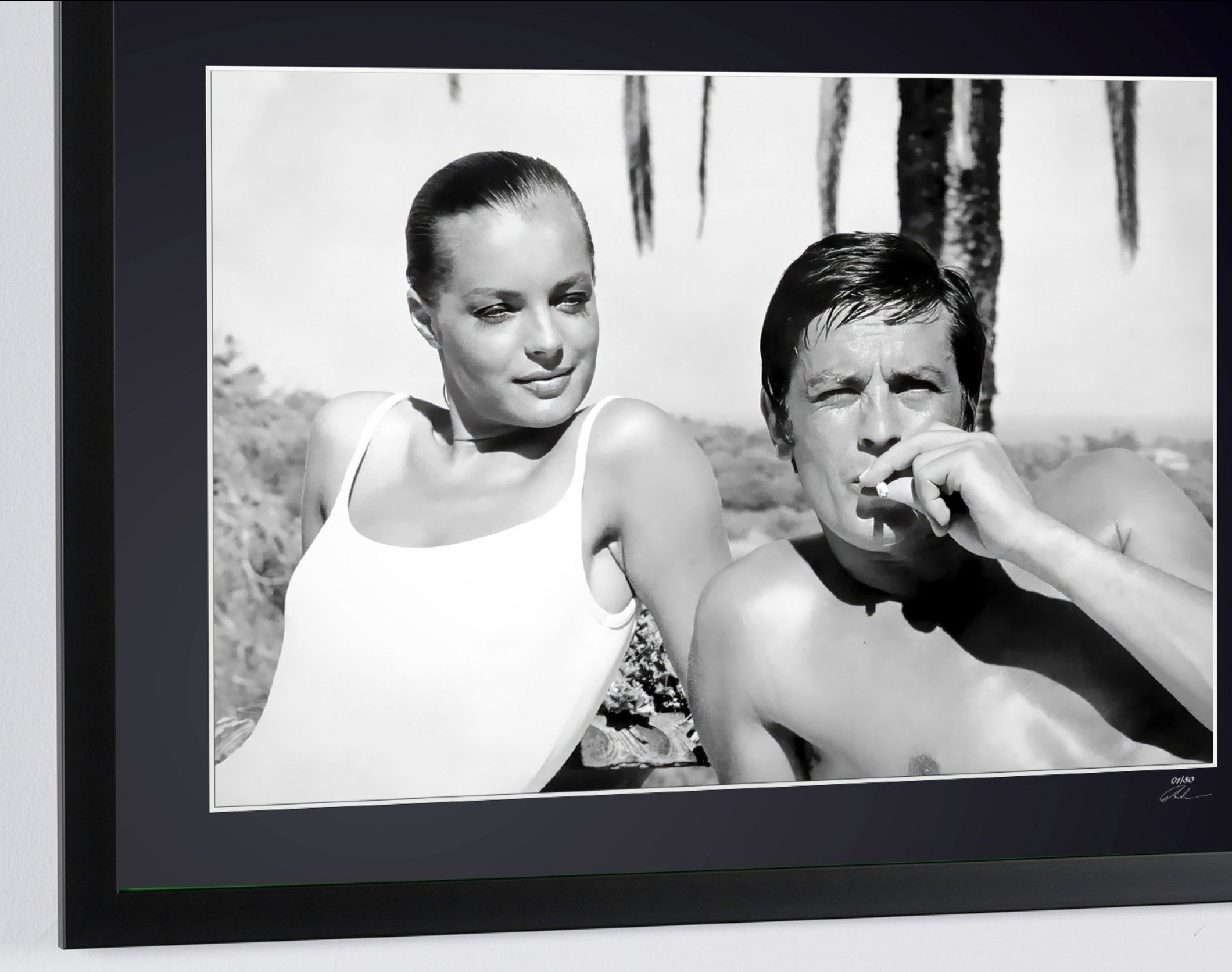 Gerahmtes Foto von „La Piscine 1969 – Romy Schneider & Alain Delon“ — Schwarz-Weiß-Kunstdruck auf Fine-Art-Papier 70 x 50 cm