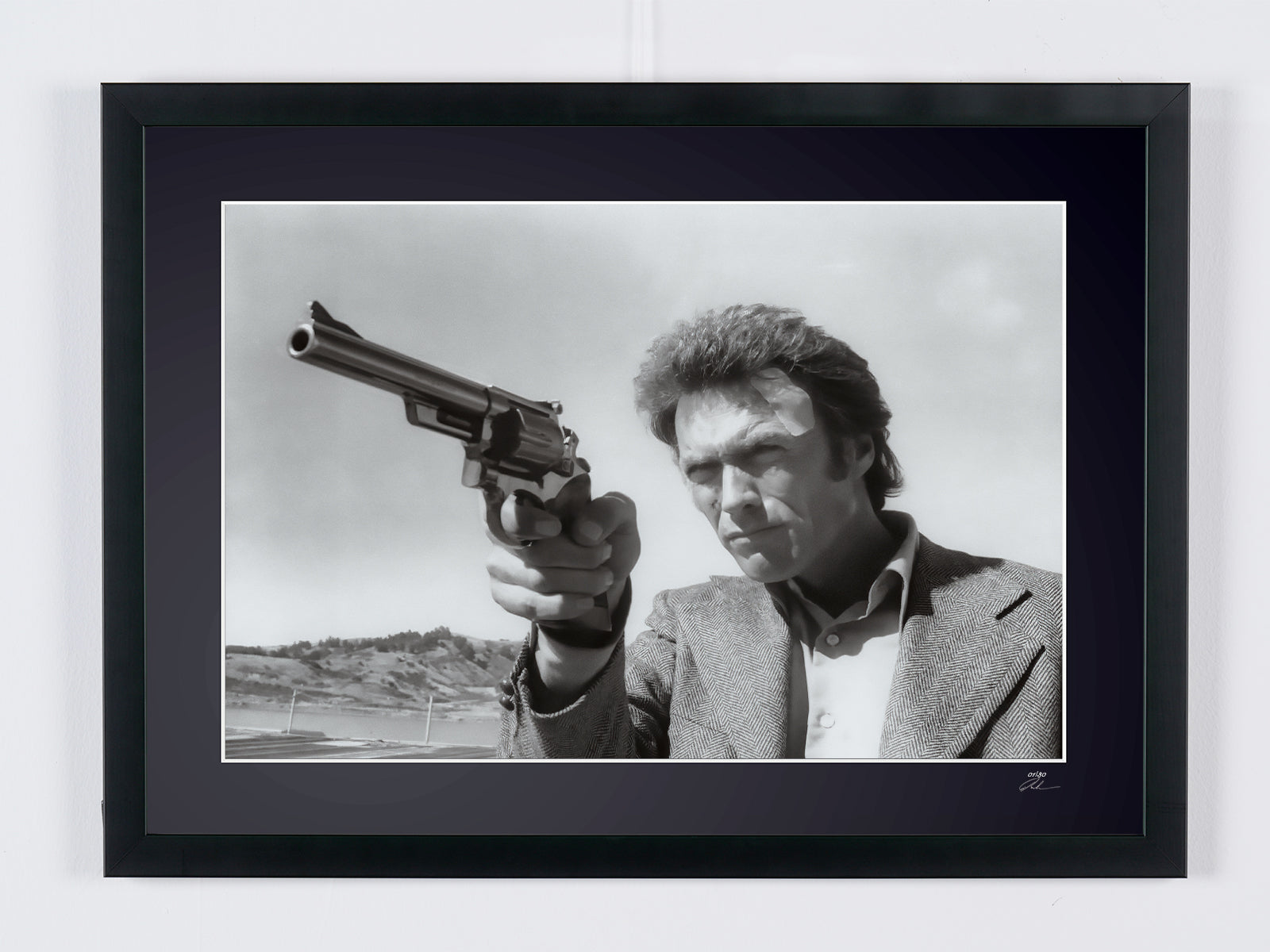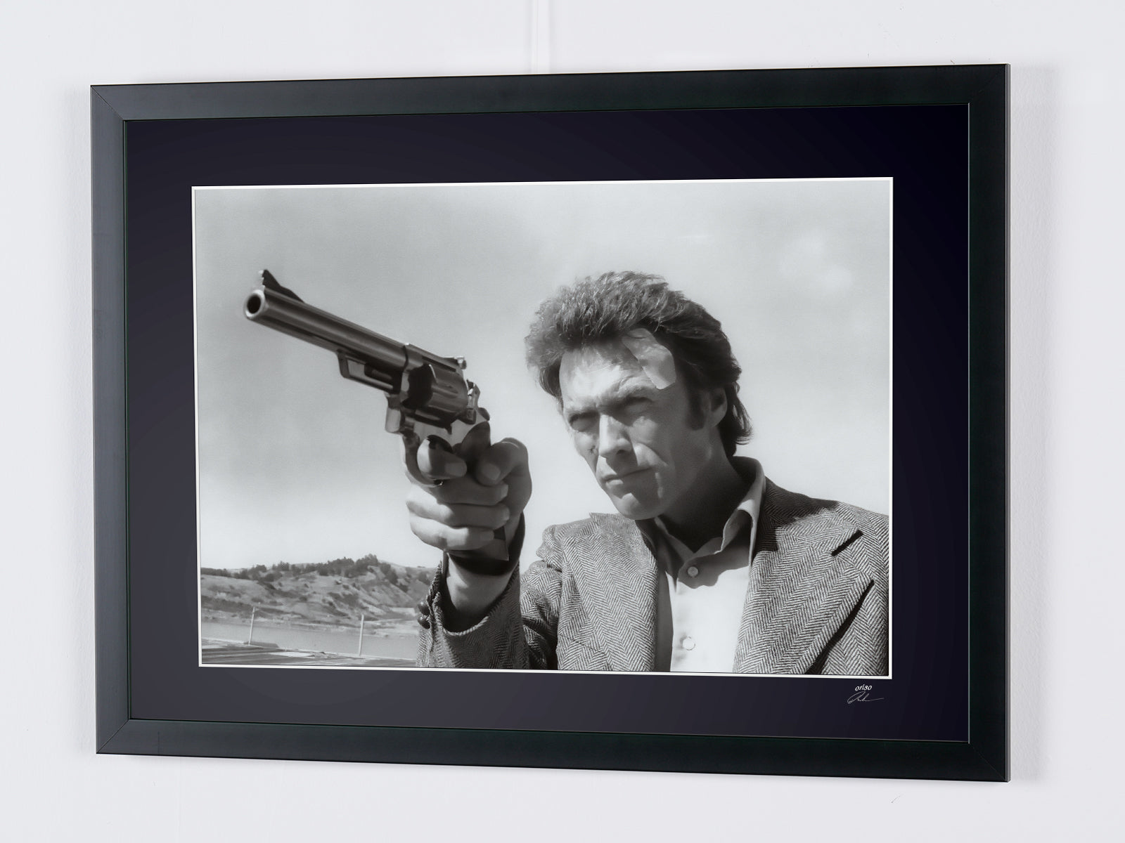 Gerahmtes Foto aus „Magnum Force (1973) – Clint Eastwood als Dirty Harry“ — Schwarz-Weiß-Kunstdruck auf Fine-Art-Papier 70 x 50 cm