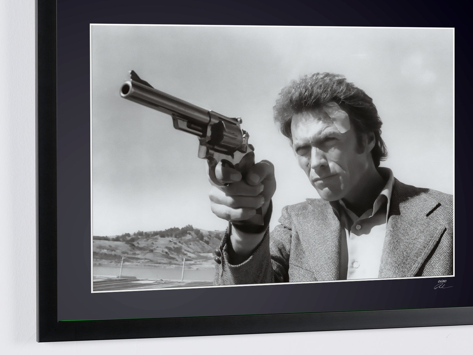 Dans cette scène iconique de Magnum Force, tourné en 1973 sous la direction de Ted Post, Clint Eastwood reprend son rôle légendaire de l'inspecteur Harry Callahan. Le film fut principalement tourné dans les quartiers de Chinatown et près du Golden Gate Bridge, avec cette séquence particulière capturée durant les premières heures matinales pour obtenir cette atmosphère brumeuse si caractéristique de Magnum Force.