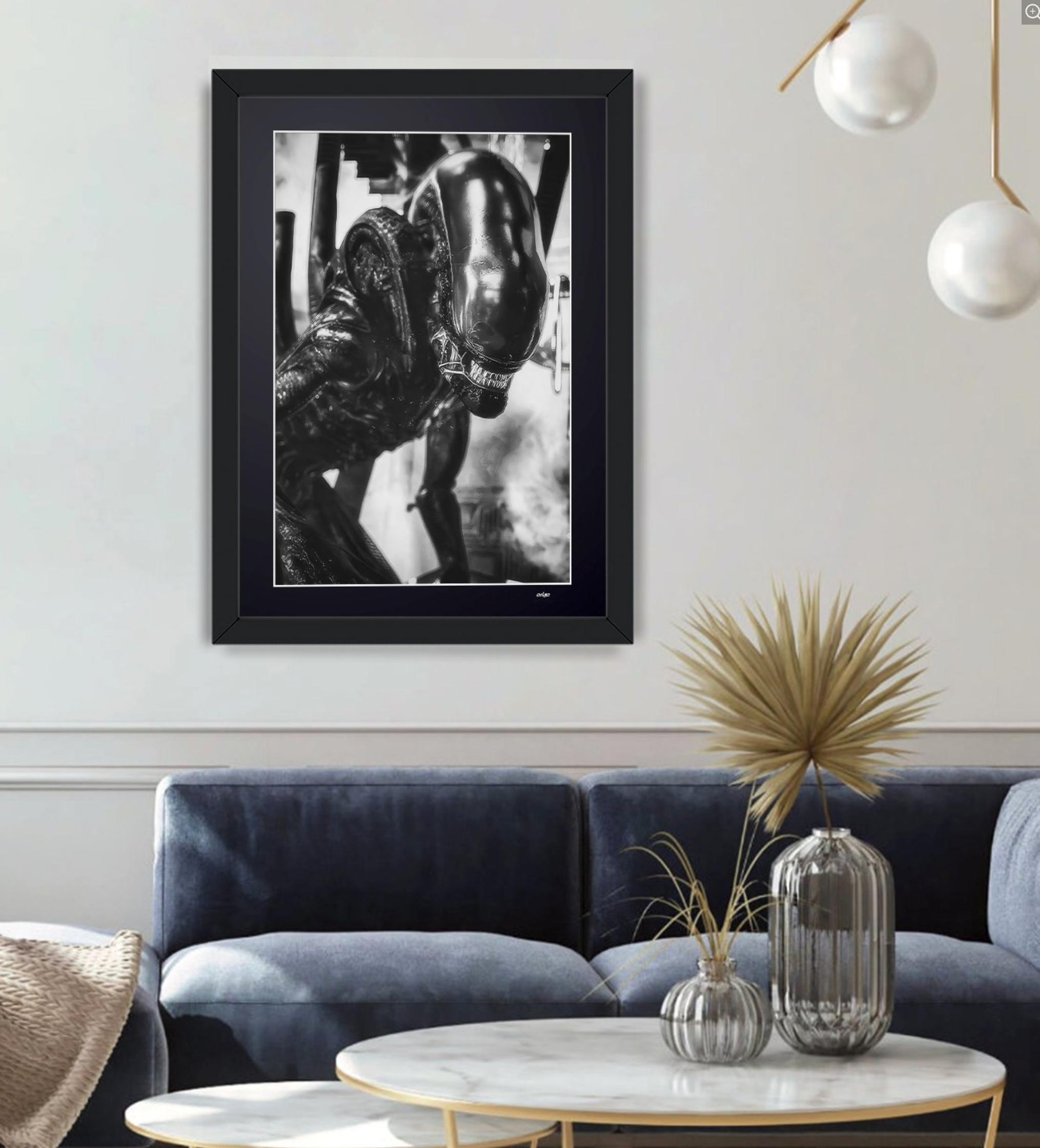 Framed photo of "Alien (1979) - Xenomorph Monster" — Black-and-white art print on fine art paper 70x50 cm