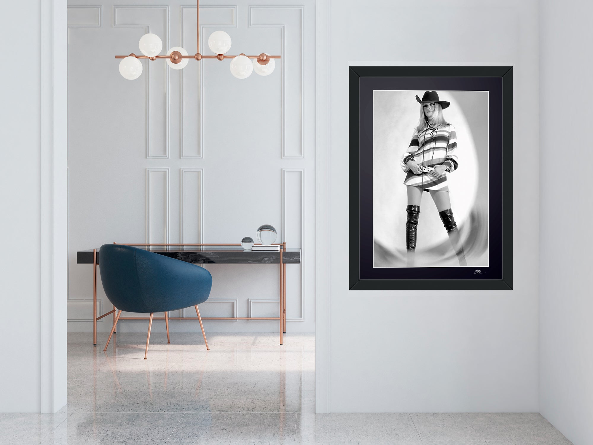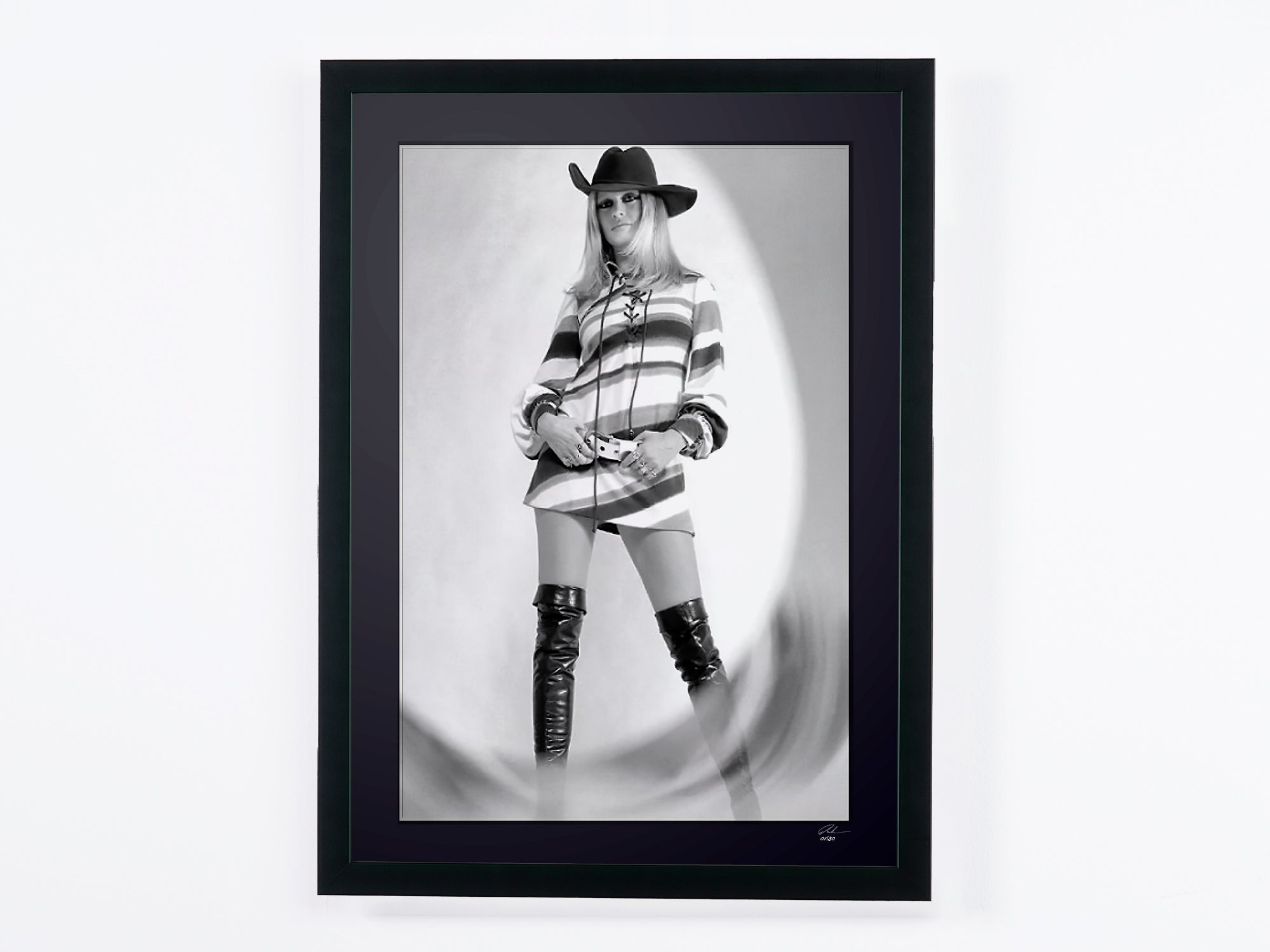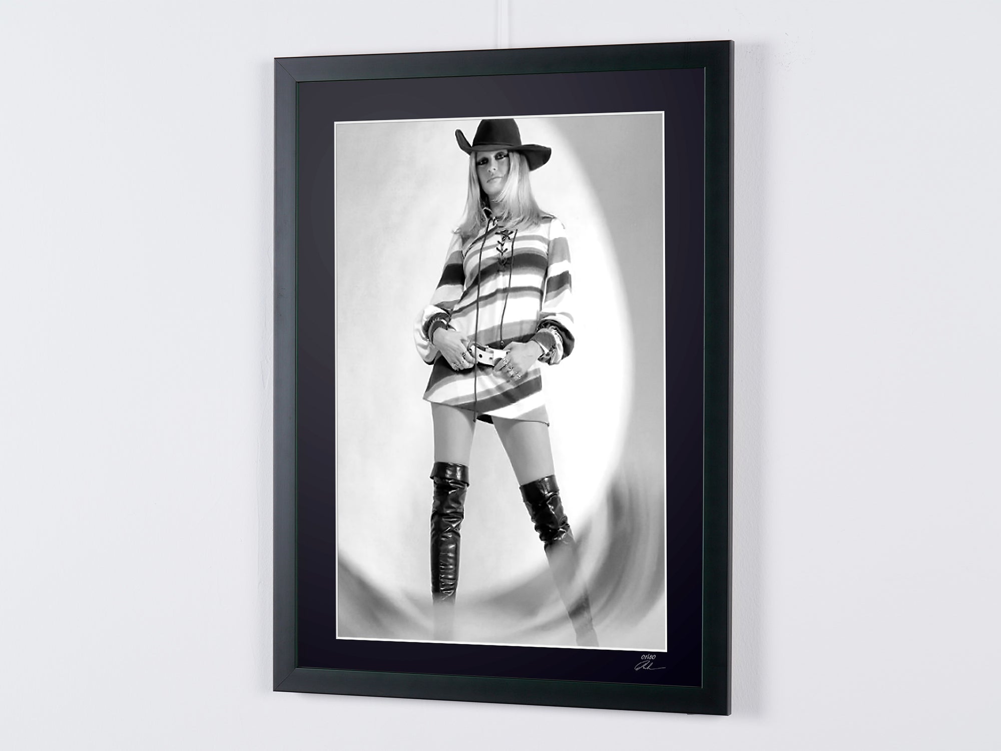 Framed photo of "Brigitte Bardot, circa 1960" — Black-and-white fine art print on Fine Art paper 70x50 cm