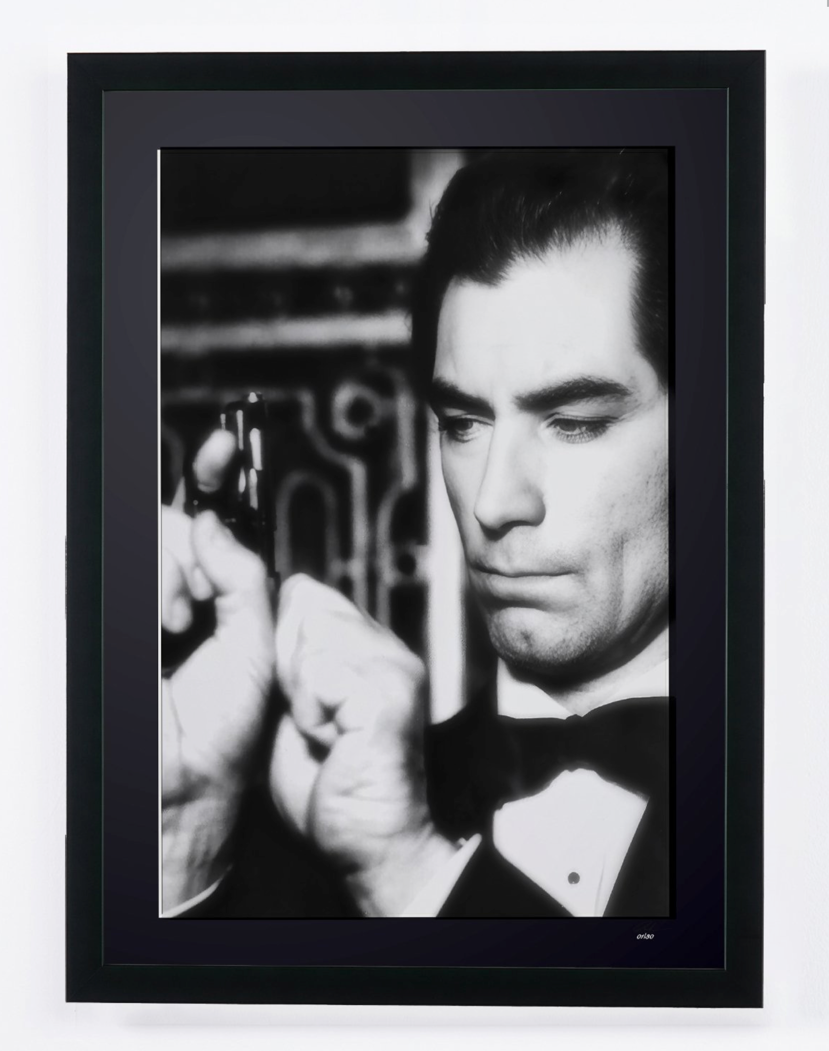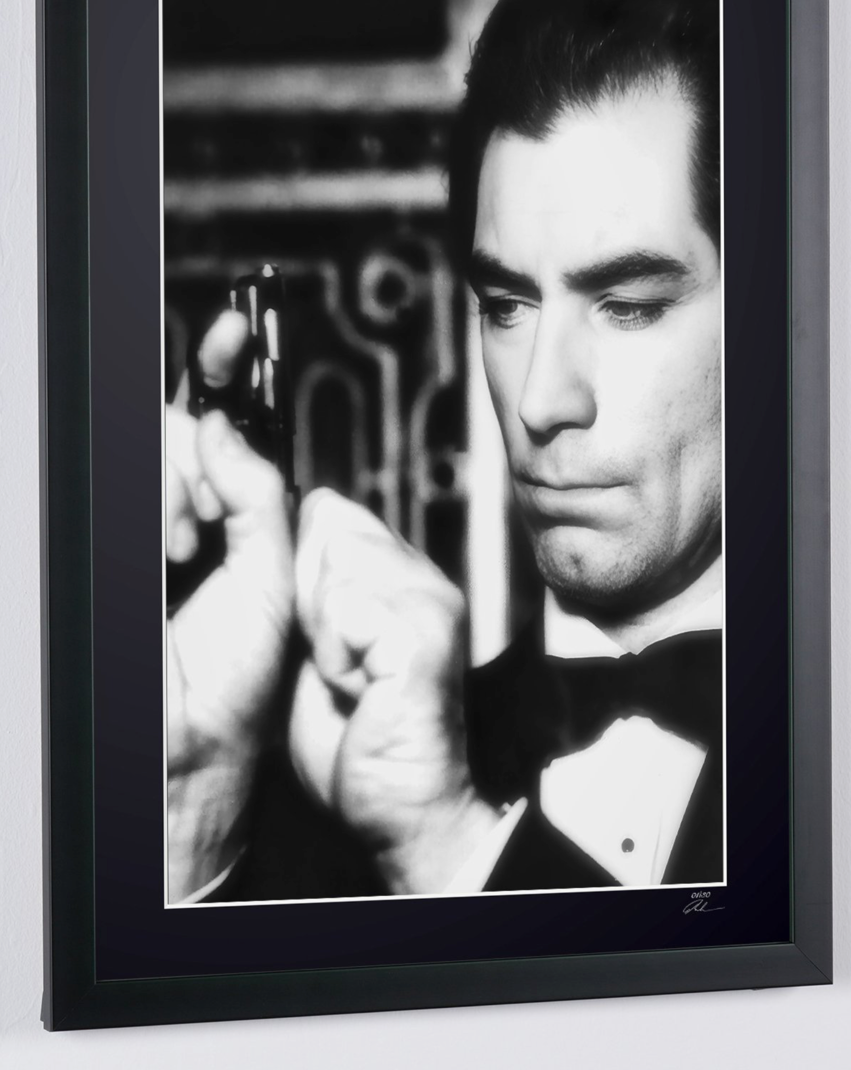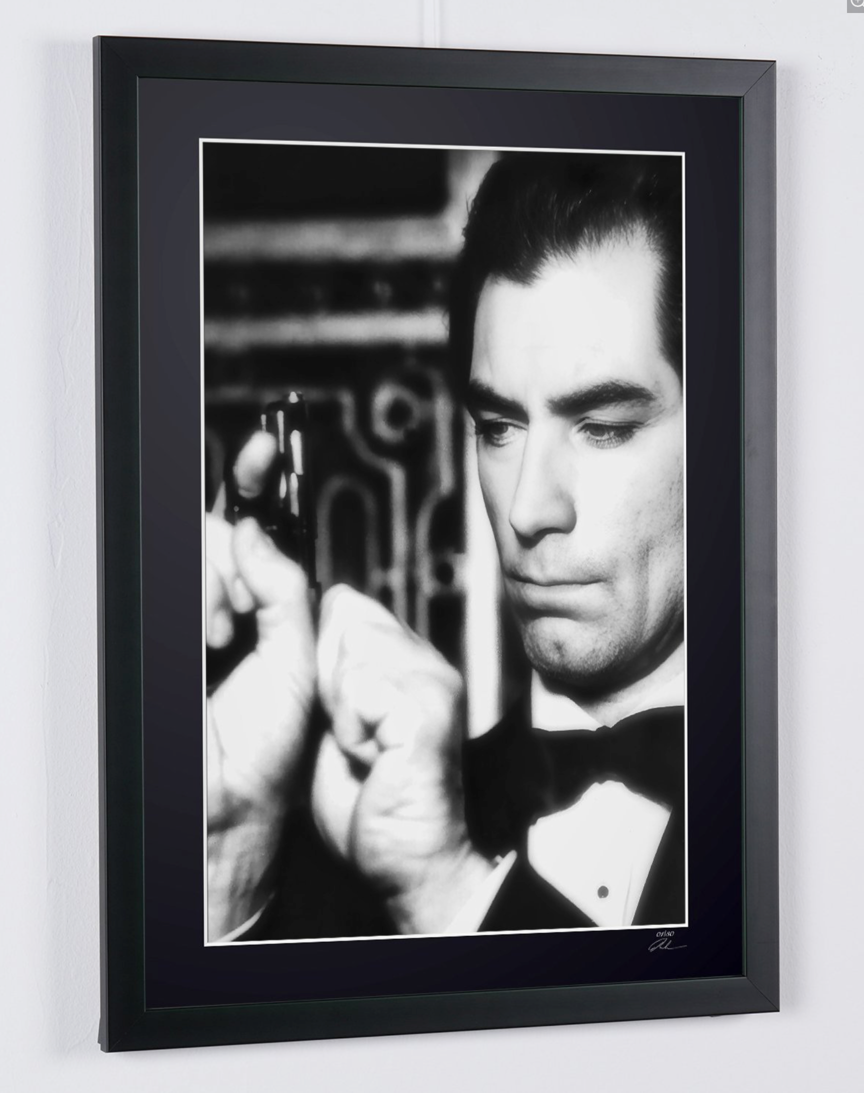 Framed photo of "Timothy Dalton as James Bond 007 in *License to Kill* (1989)" — Black-and-white fine art print on fine art paper 70x50 cm