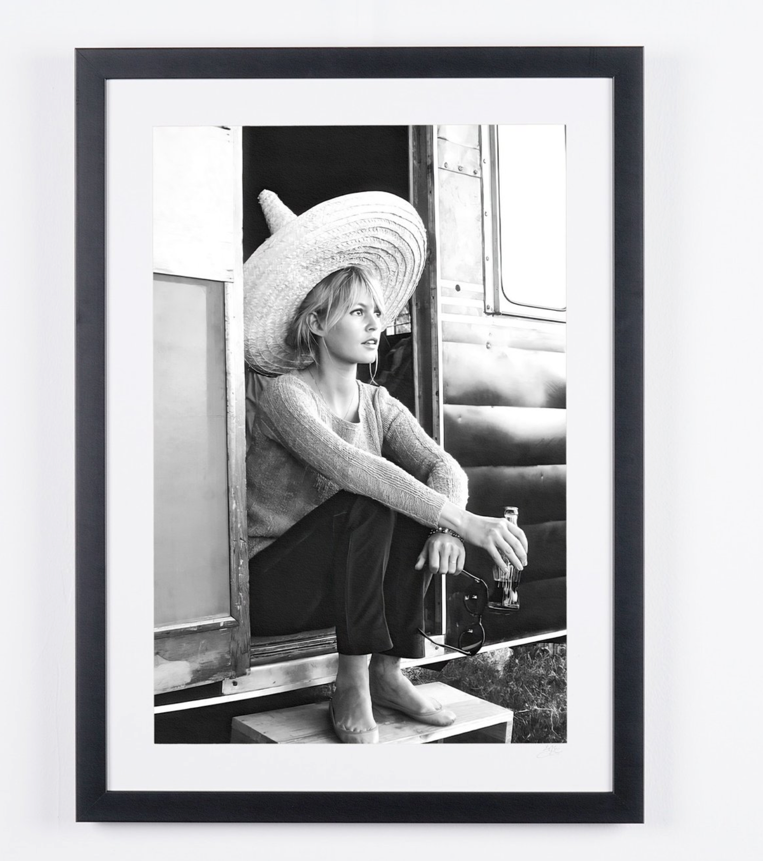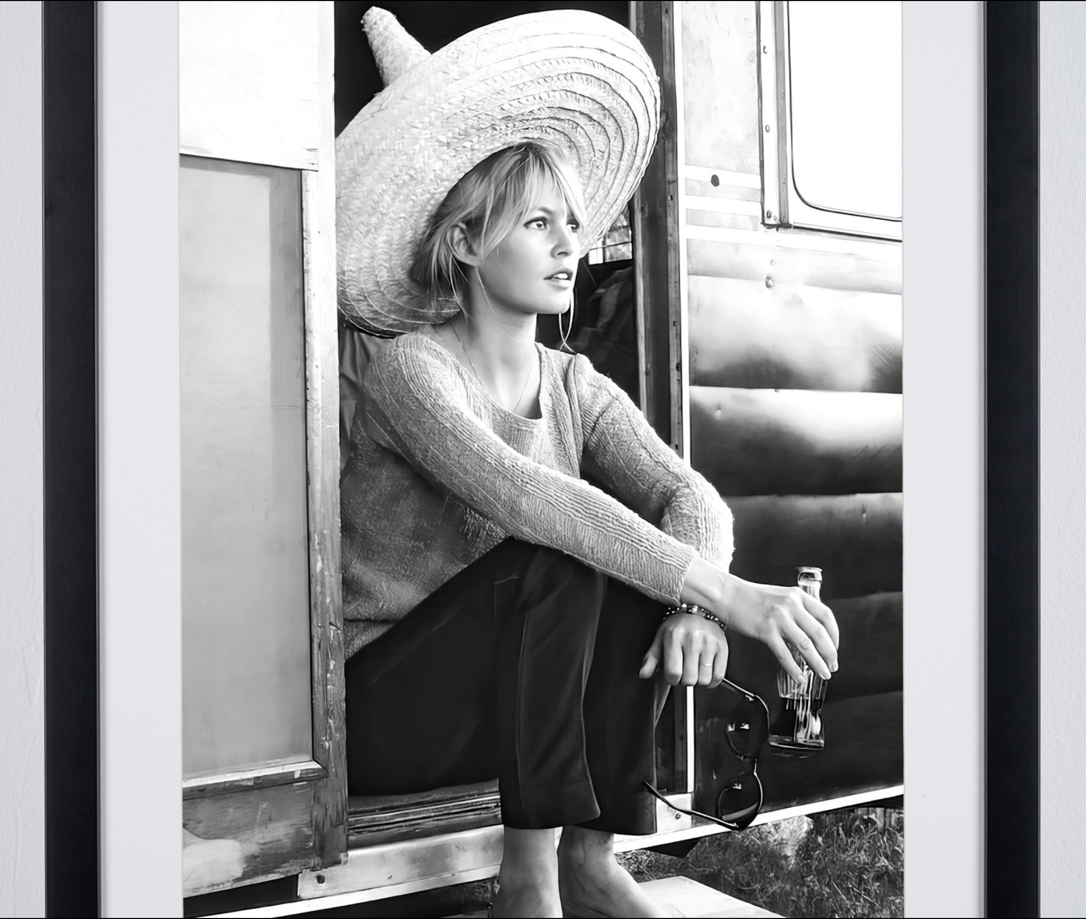 Framed photo of "Brigitte Bardot - Mexico, 1965 on the Set of *Viva Maria*" — Black-and-white fine art print on fine art paper 70x50 cm