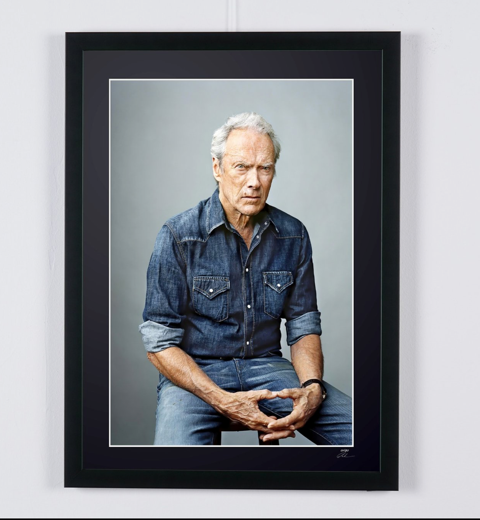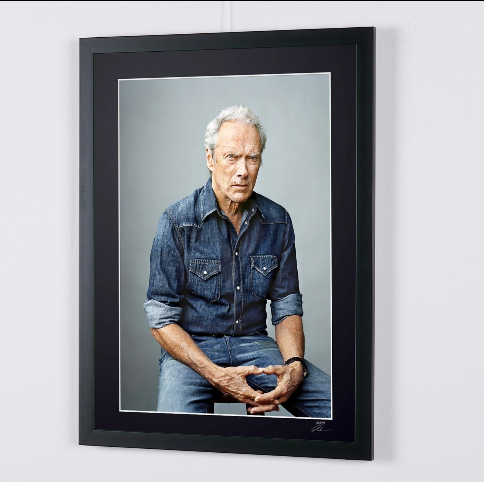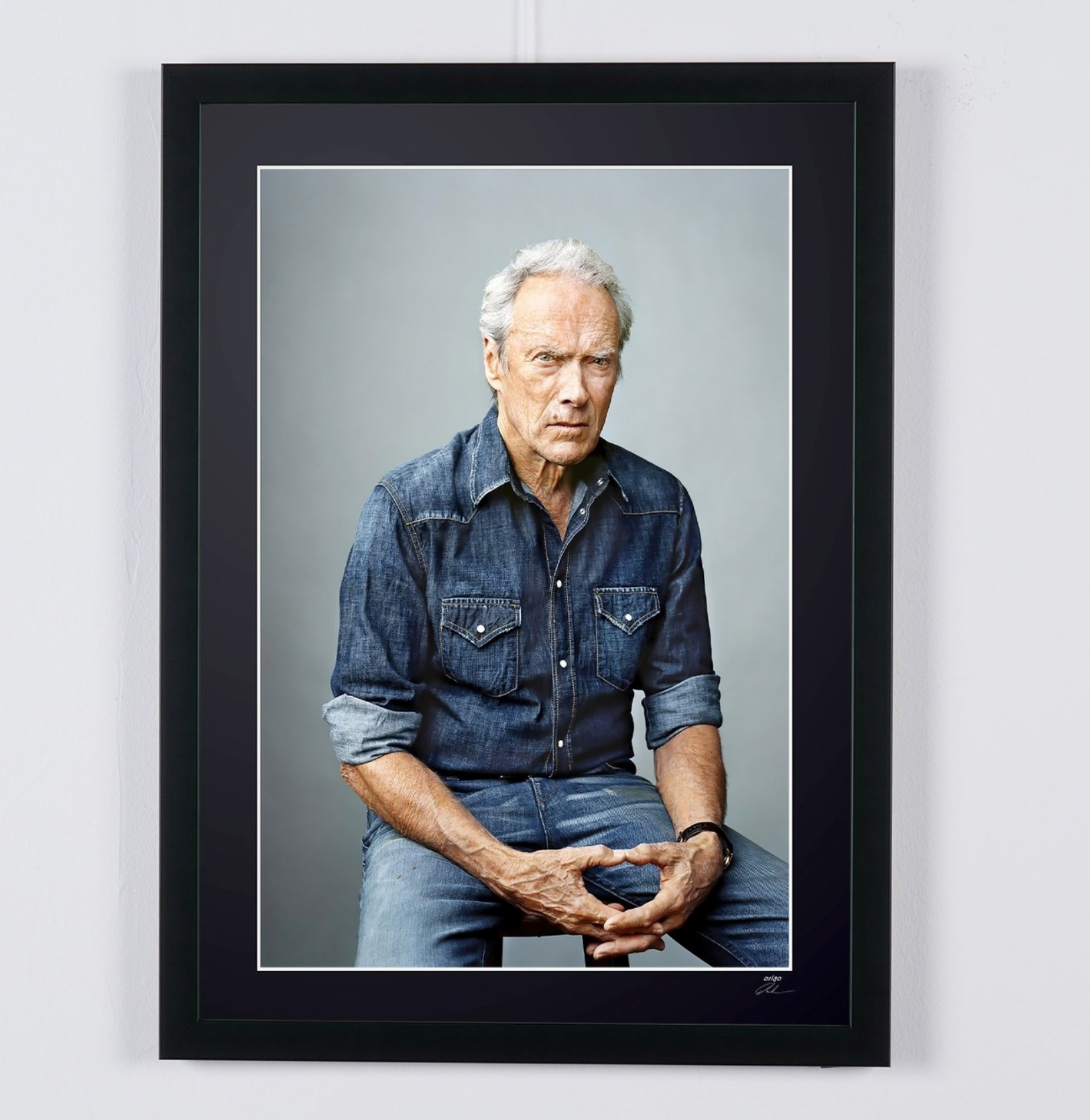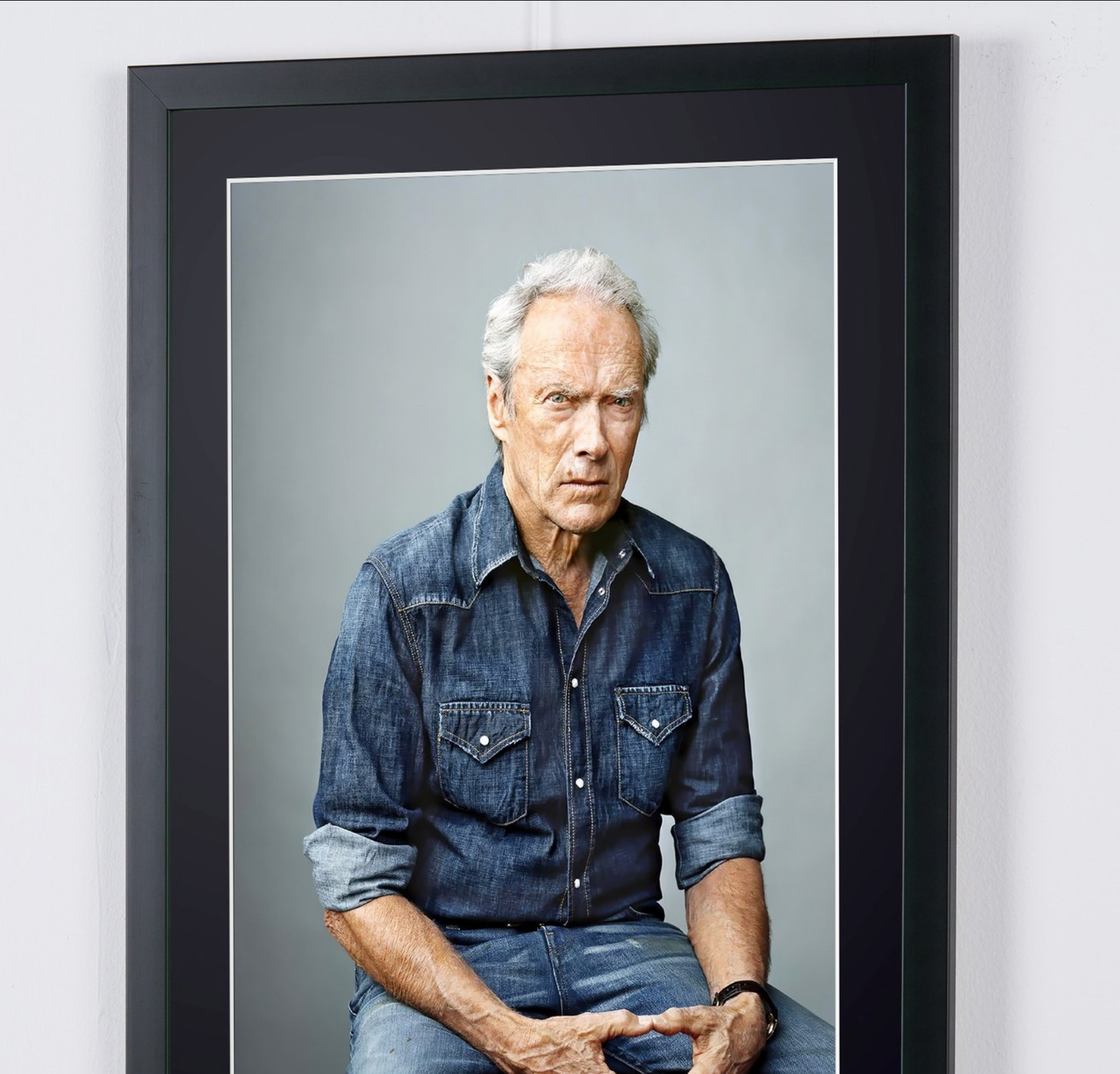 Framed photo of "Clint Eastwood - Portrait Of Legend" — Black-and-white art print on fine art paper 70x50 cm