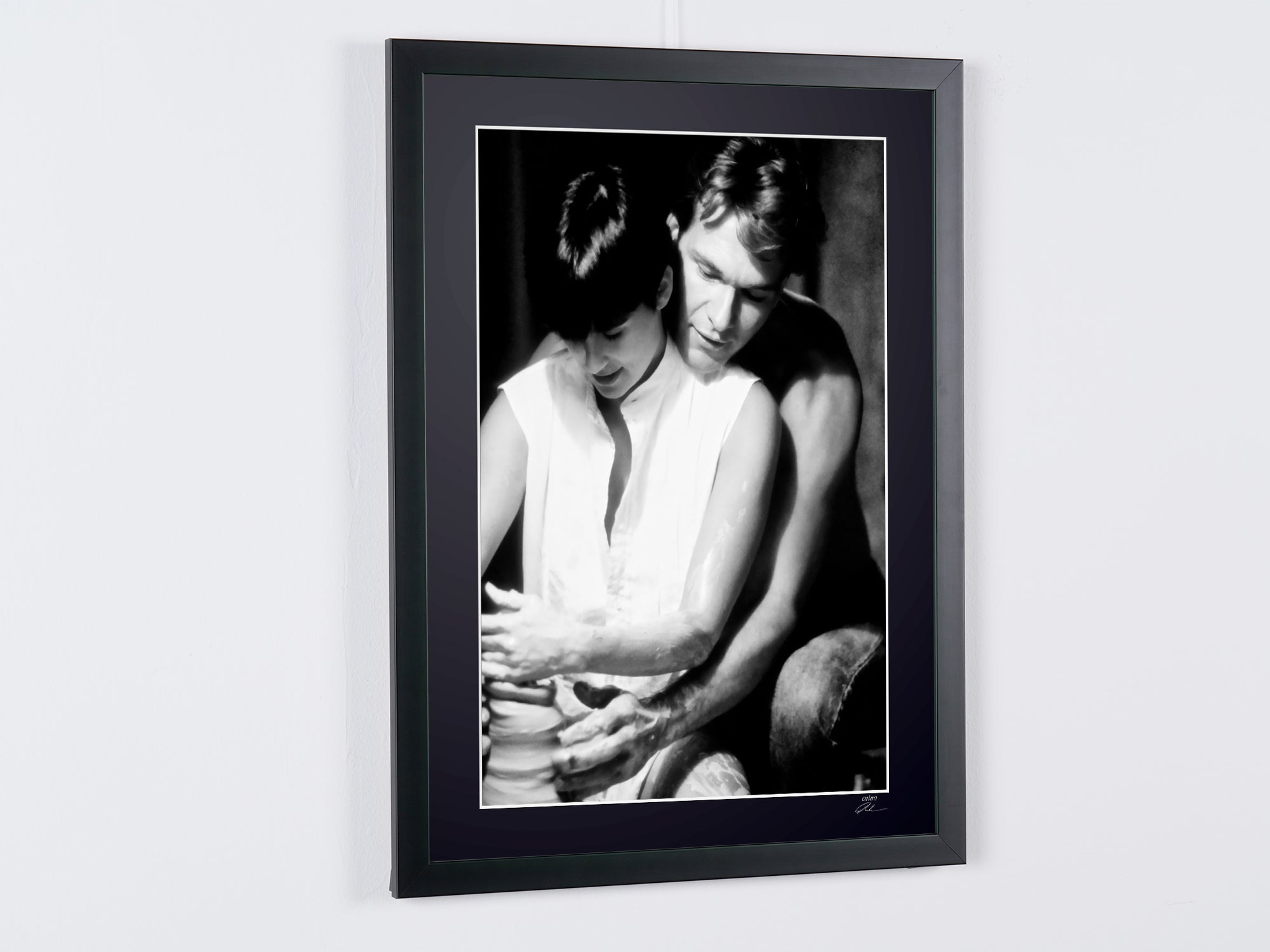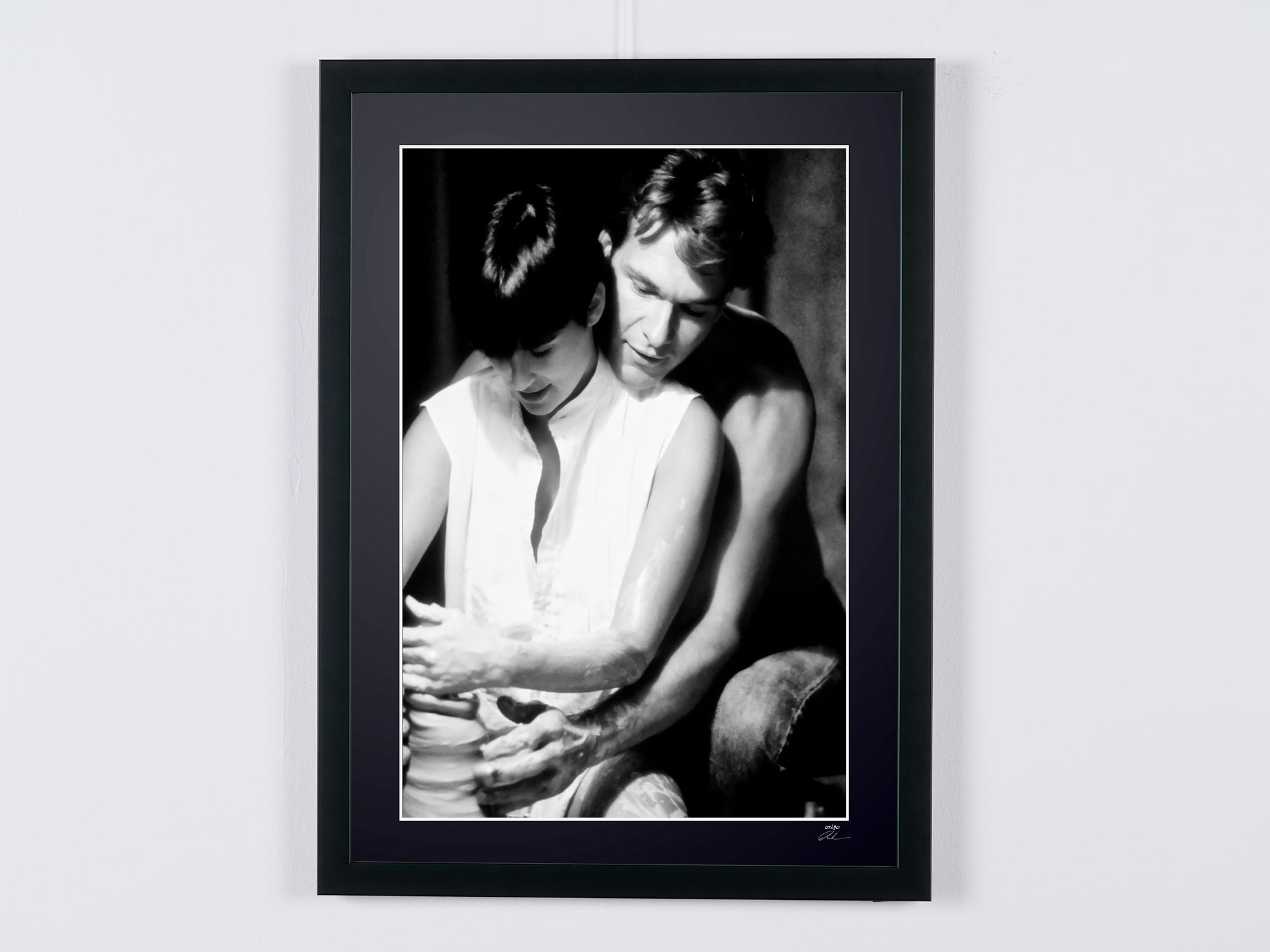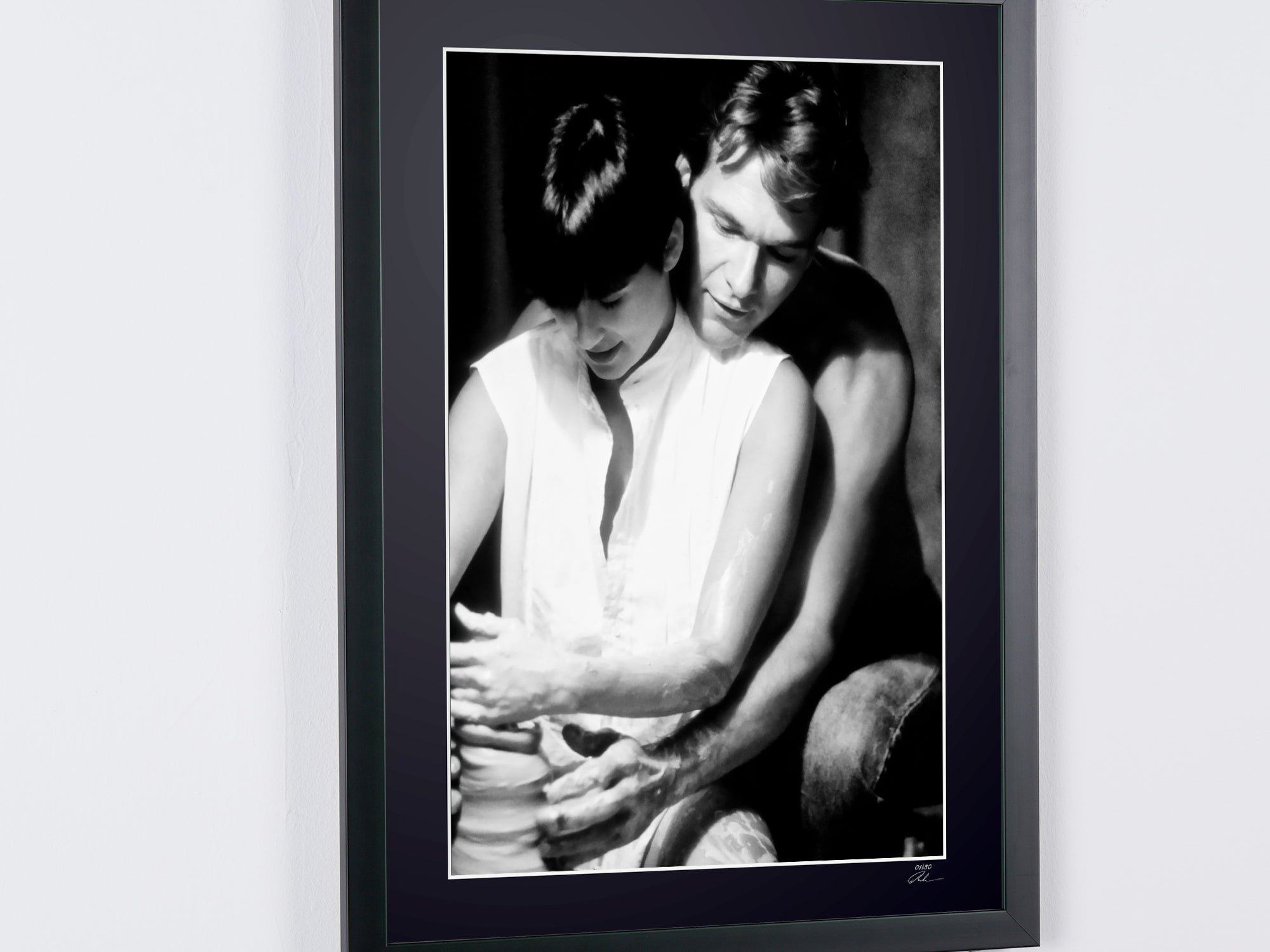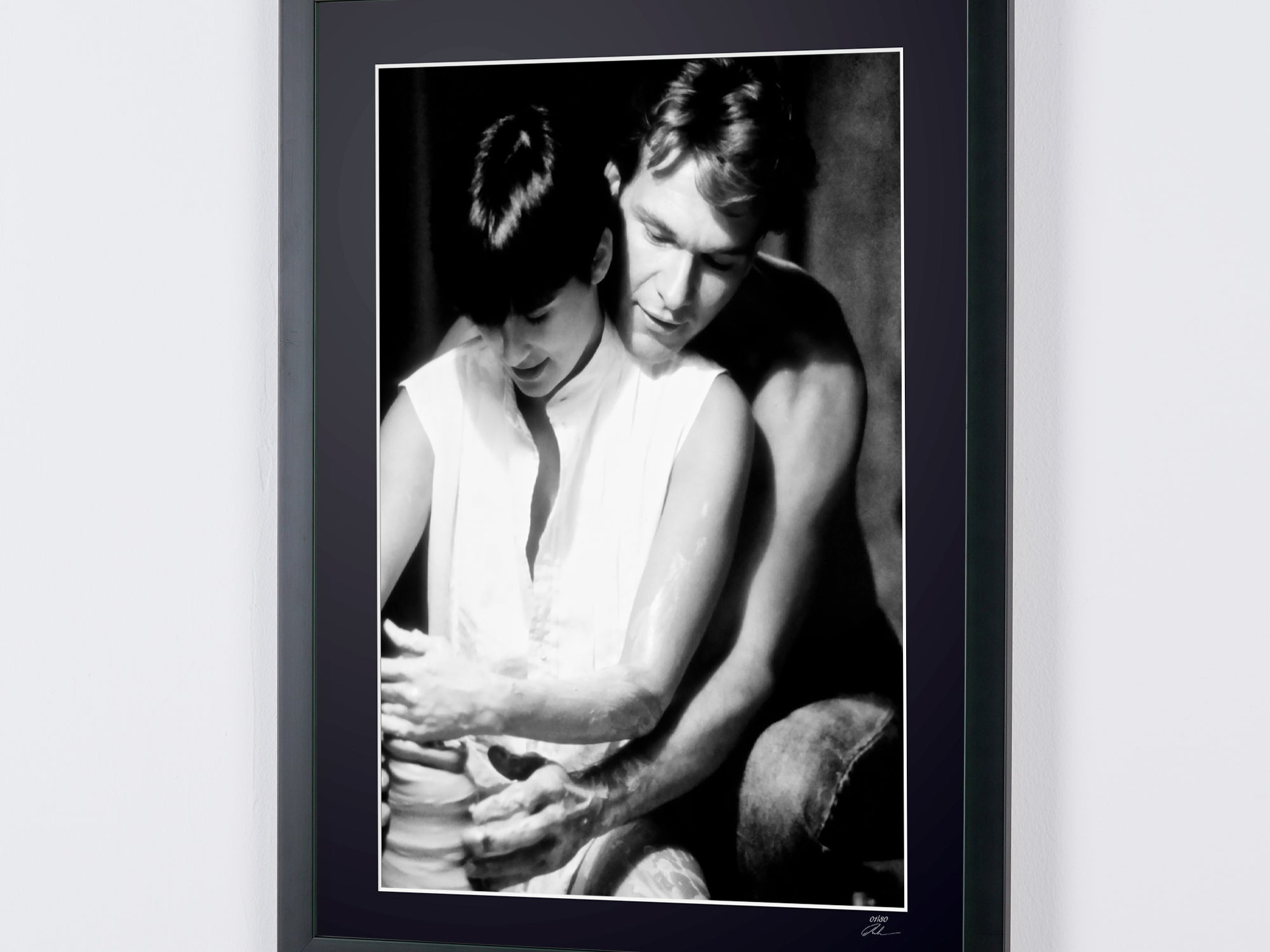 Framed photo from "Ghost (1990) - Patrick Swayze (Sam) & Demi Moore (Molly) - Wooden Frame 70x50 cm - - Original Certificate (COA), Hologram Logo, and QR Code" — Black-and-white fine art print on fine art paper 70x50 cm
