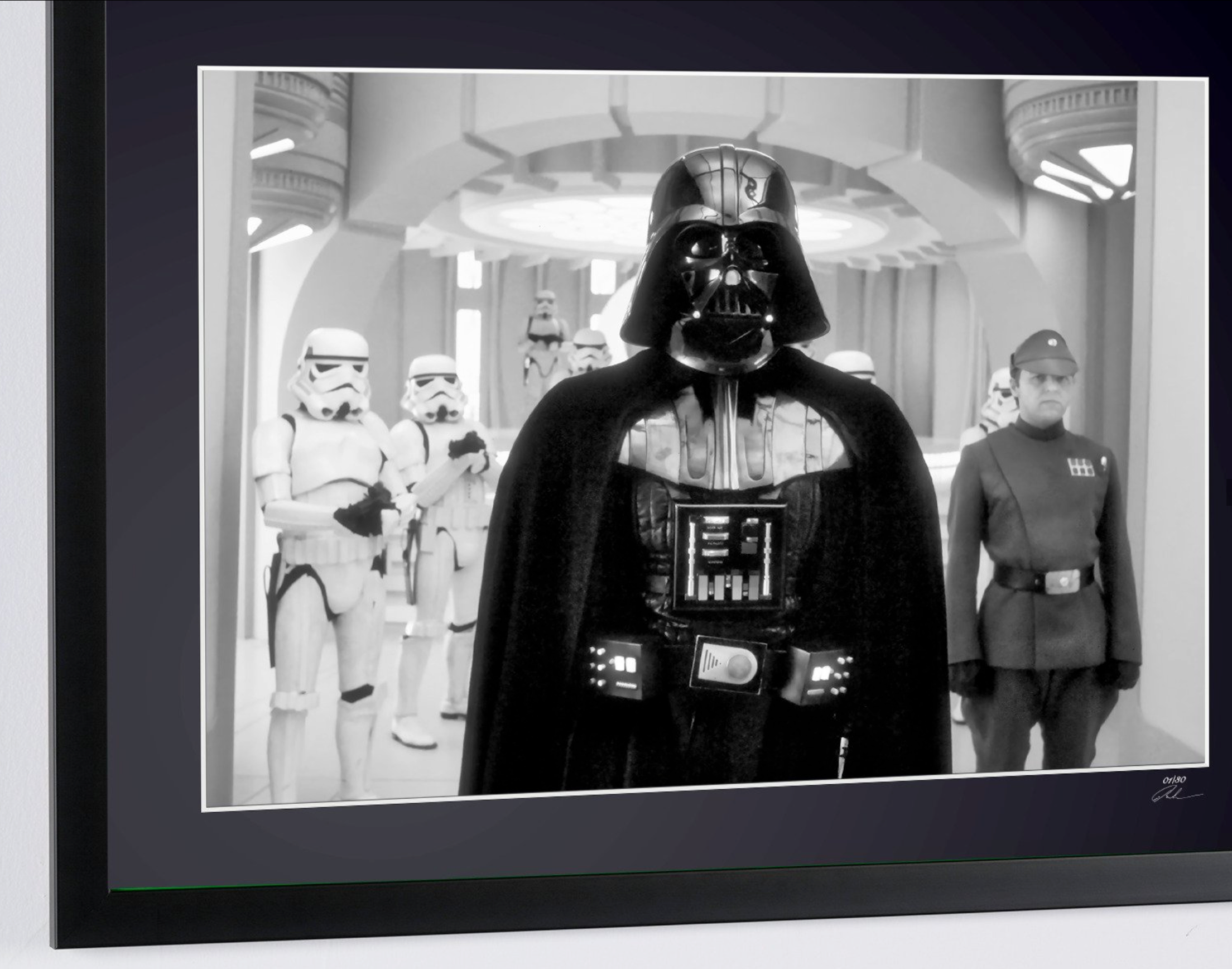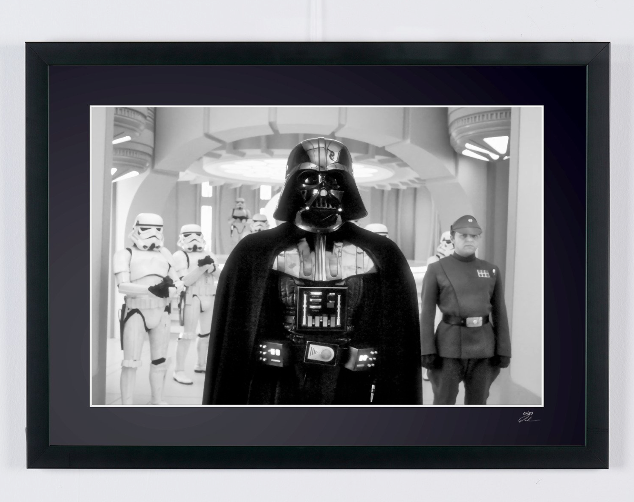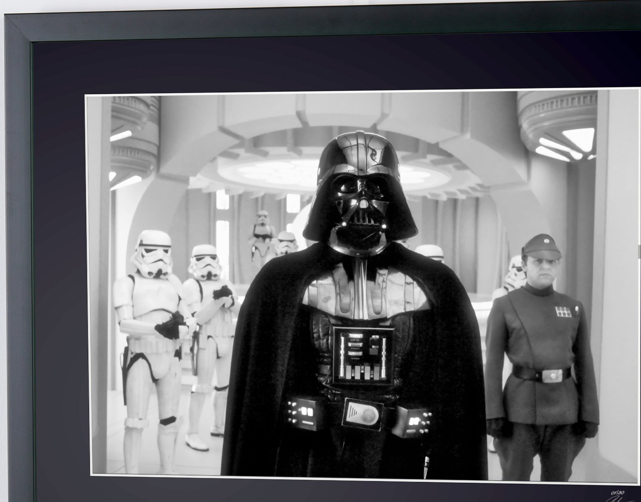 Framed photo of "Star Wars: Episode VIII - Darth Vader with Stormtroopers." — Black-and-white art print on fine art paper 70x50 cm
