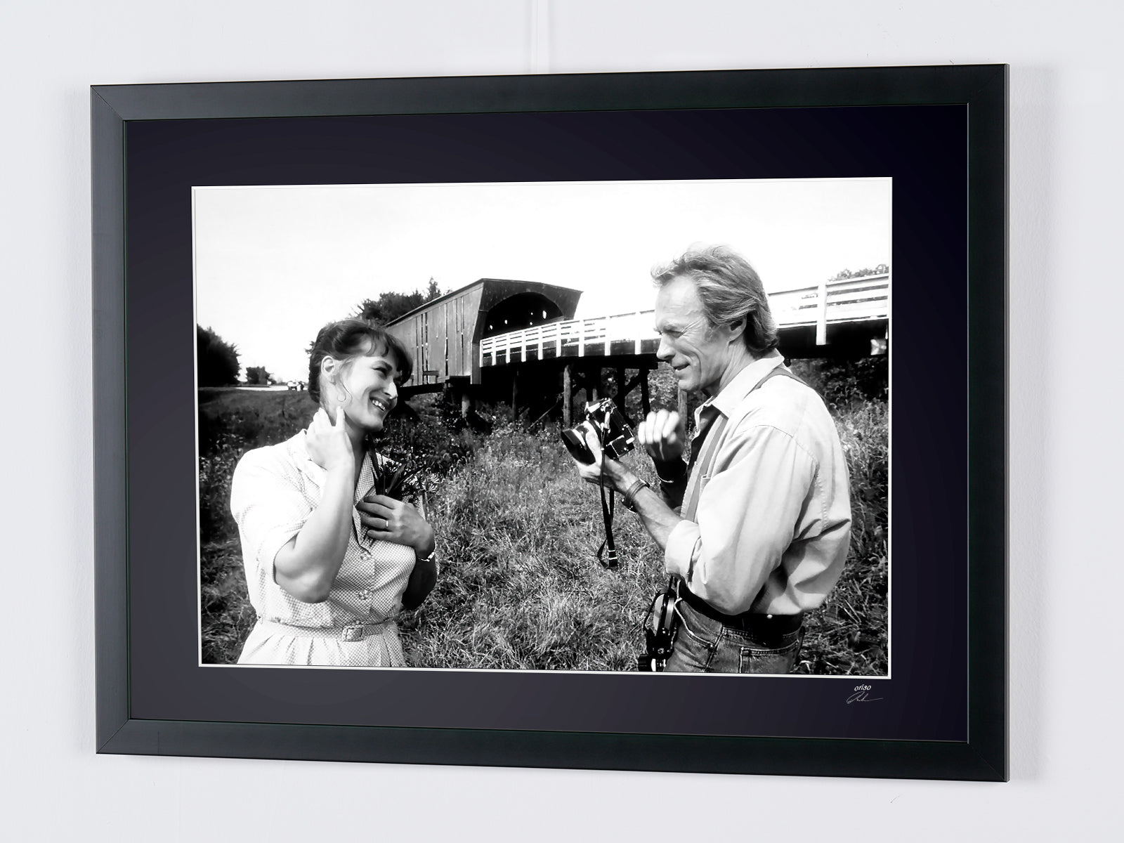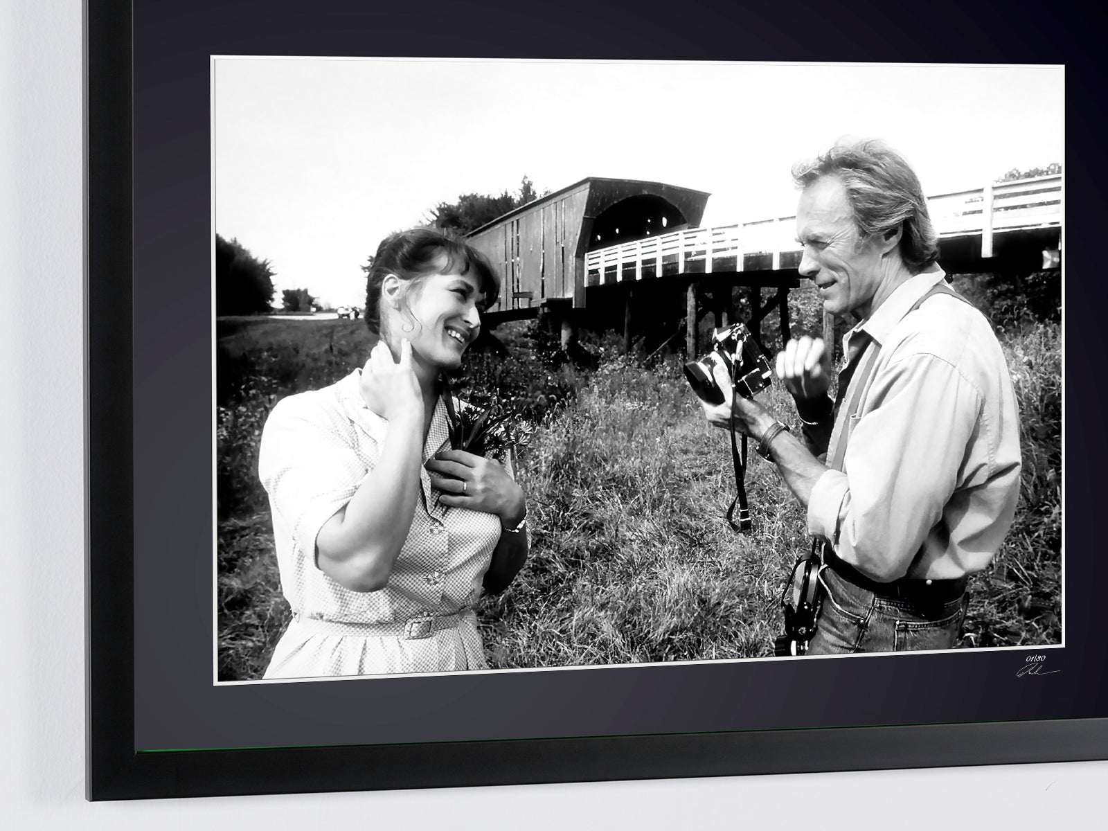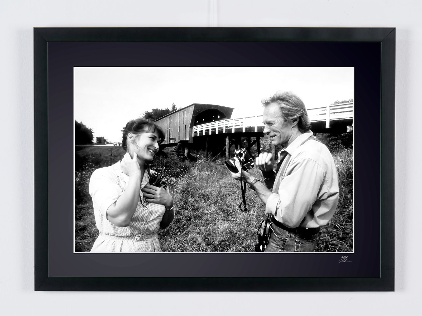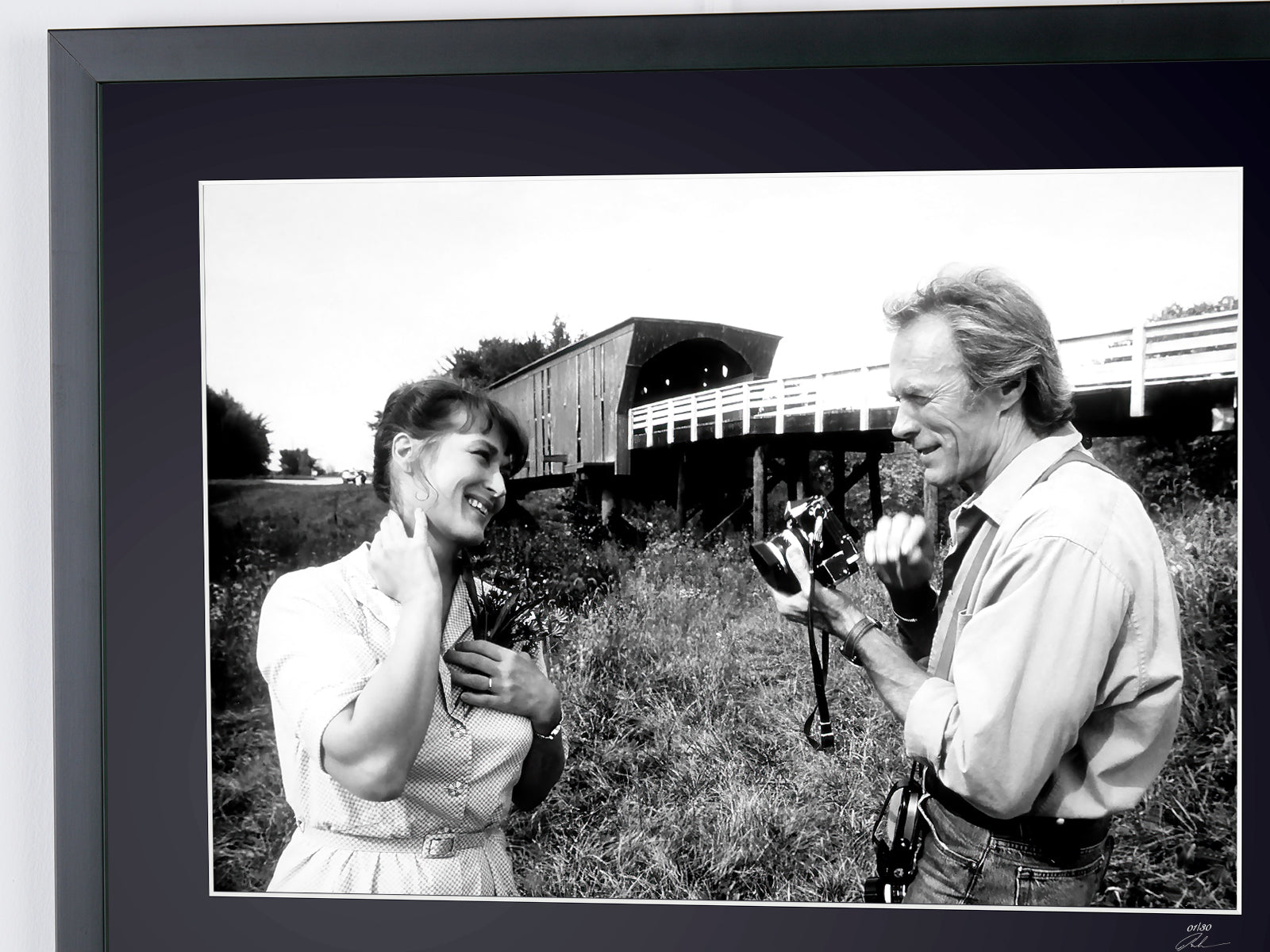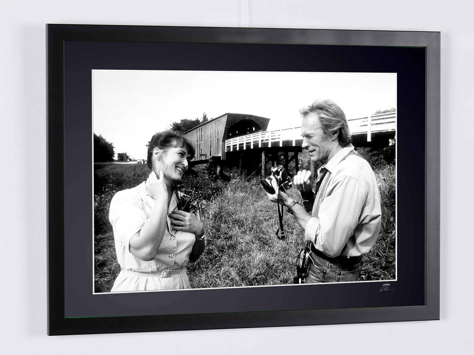 Framed photo of "The Bridges of Madison County 1995 - Clint Eastwood & Meryl Streep" — Black-and-white fine art print on Fine Art paper 70x50 cm