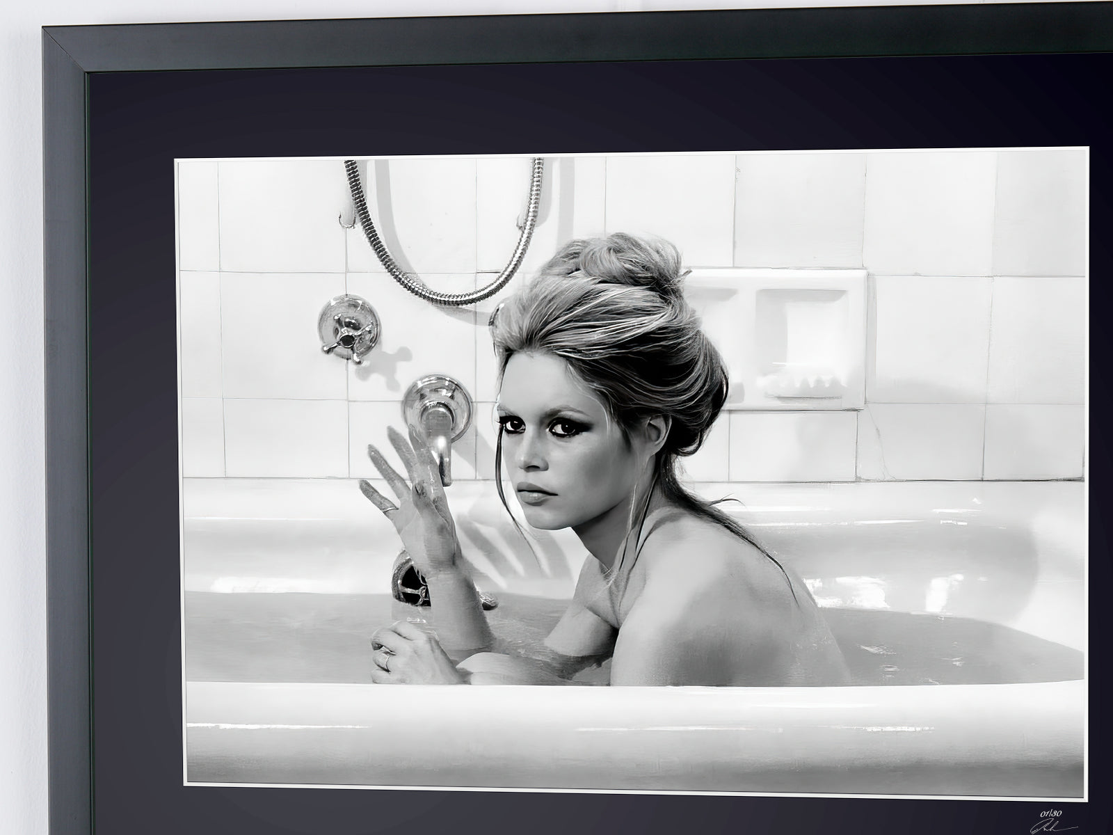 Fotografía enmarcada de «Brigitte Bardot 1964» — Impresión artística en blanco y negro sobre papel Fine Art 70 x 50 cm