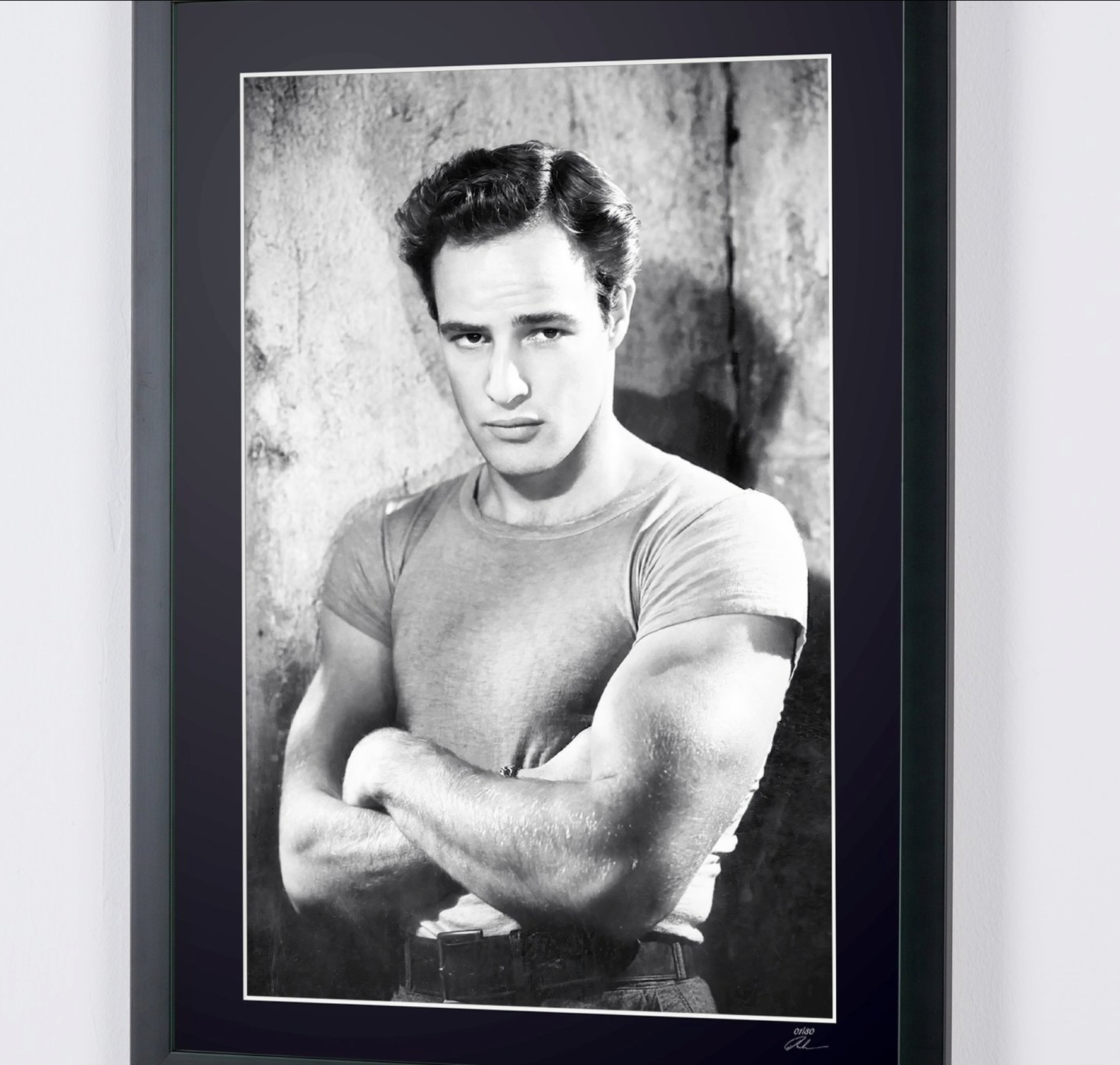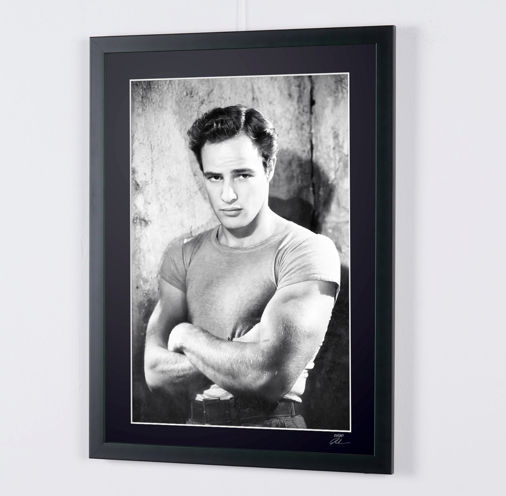 Fotografía enmarcada de «Un tranvía llamado deseo, 1951: Marlon Brando en el papel de Stanley» — Impresión artística en blanco y negro sobre papel Fine Art 70 x 50 cm