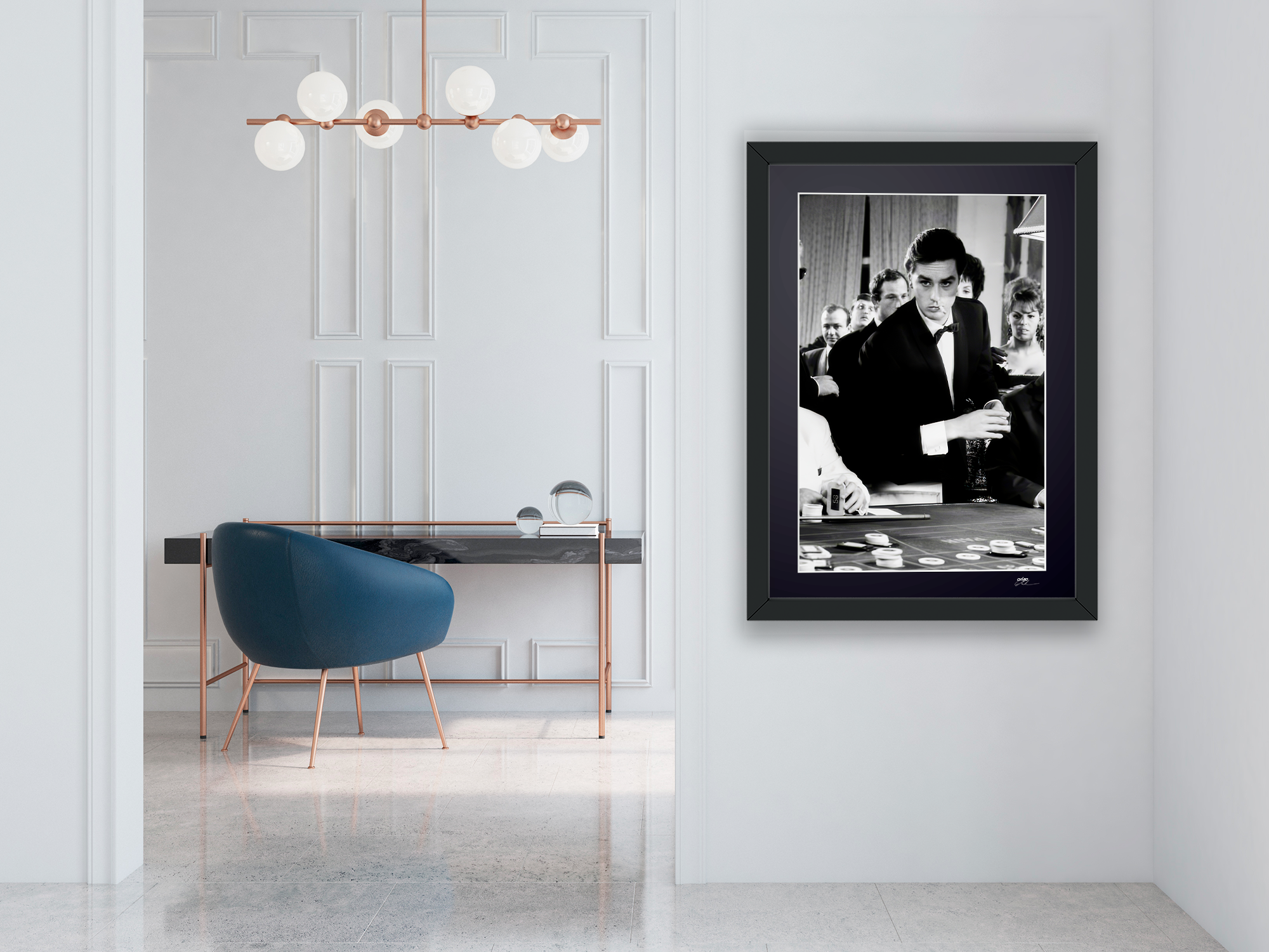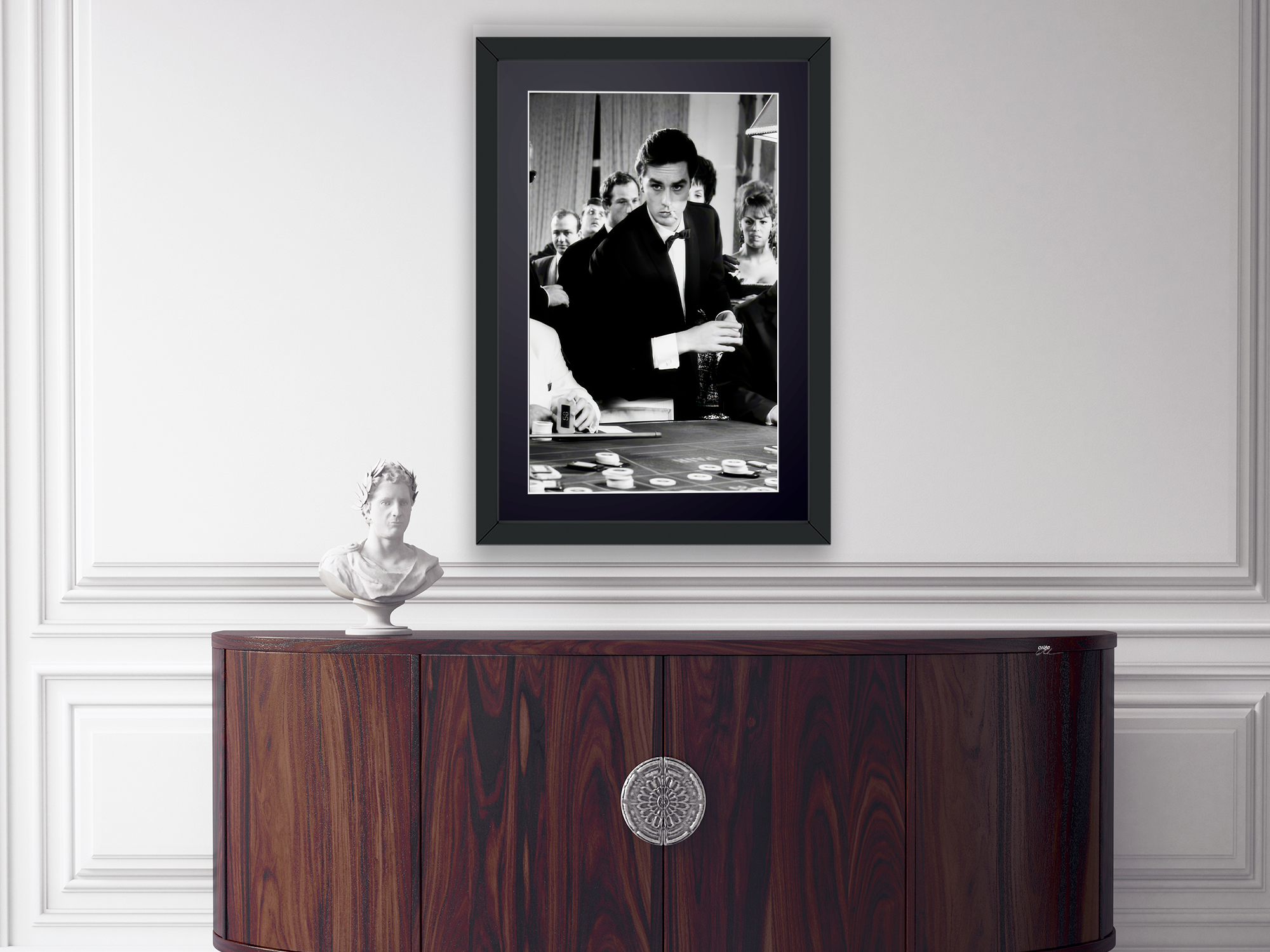 Esta impresión Fine Art en blanco y negro está realizada en papel de calidad museística en formato 70×50 cm, enmarcada en un marco de madera maciza con cristal. Edición estrictamente limitada, numerada y con certificado holográfico.