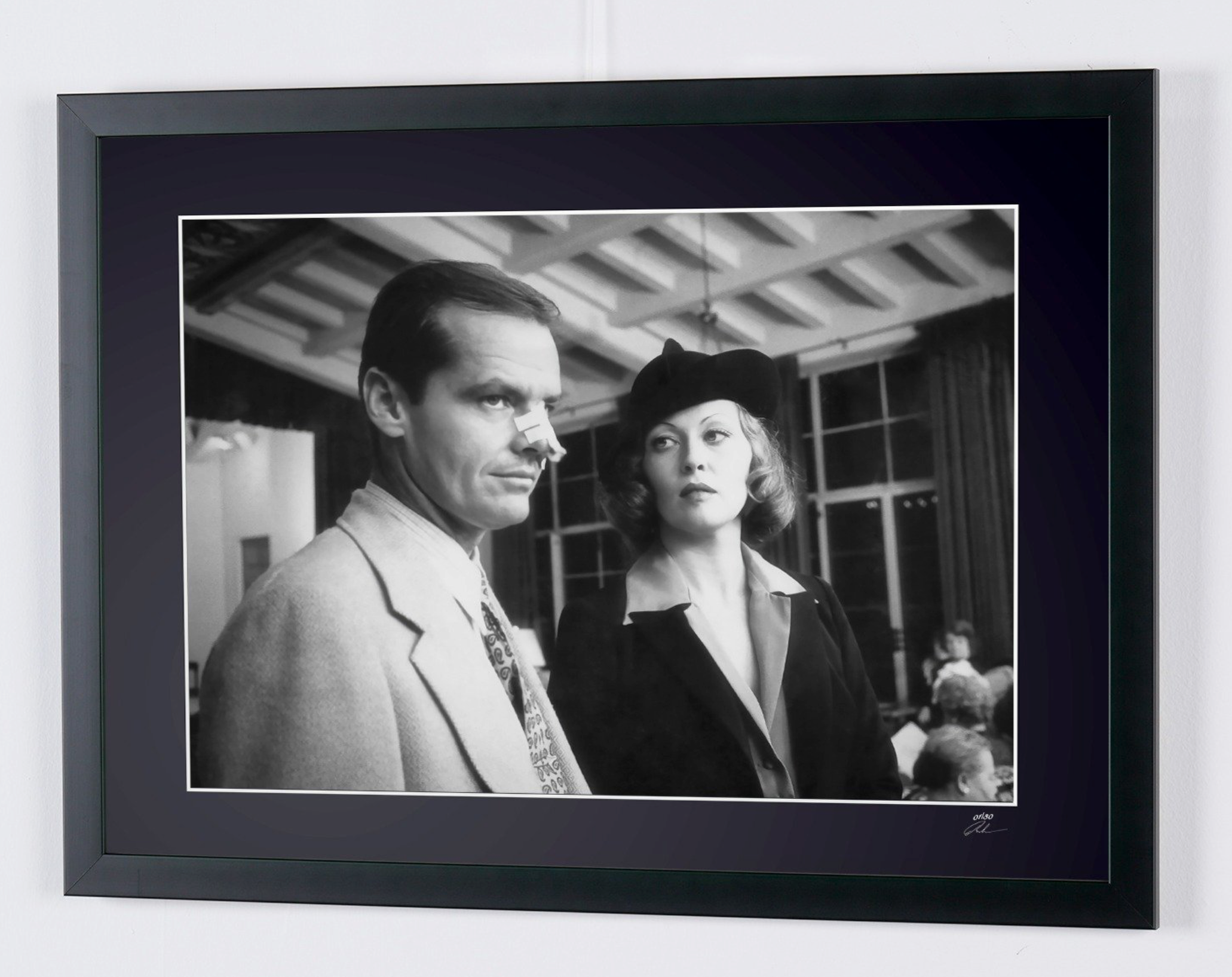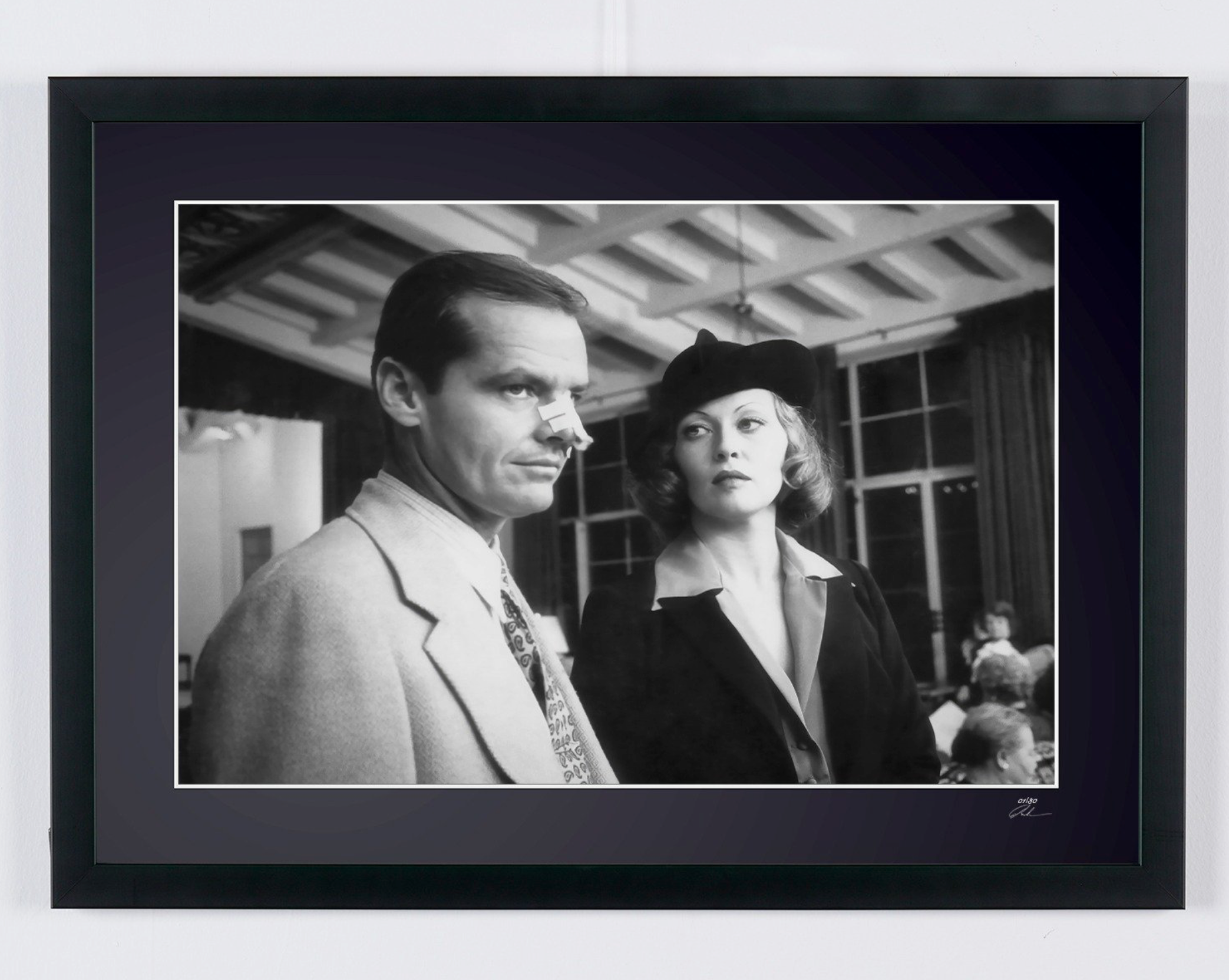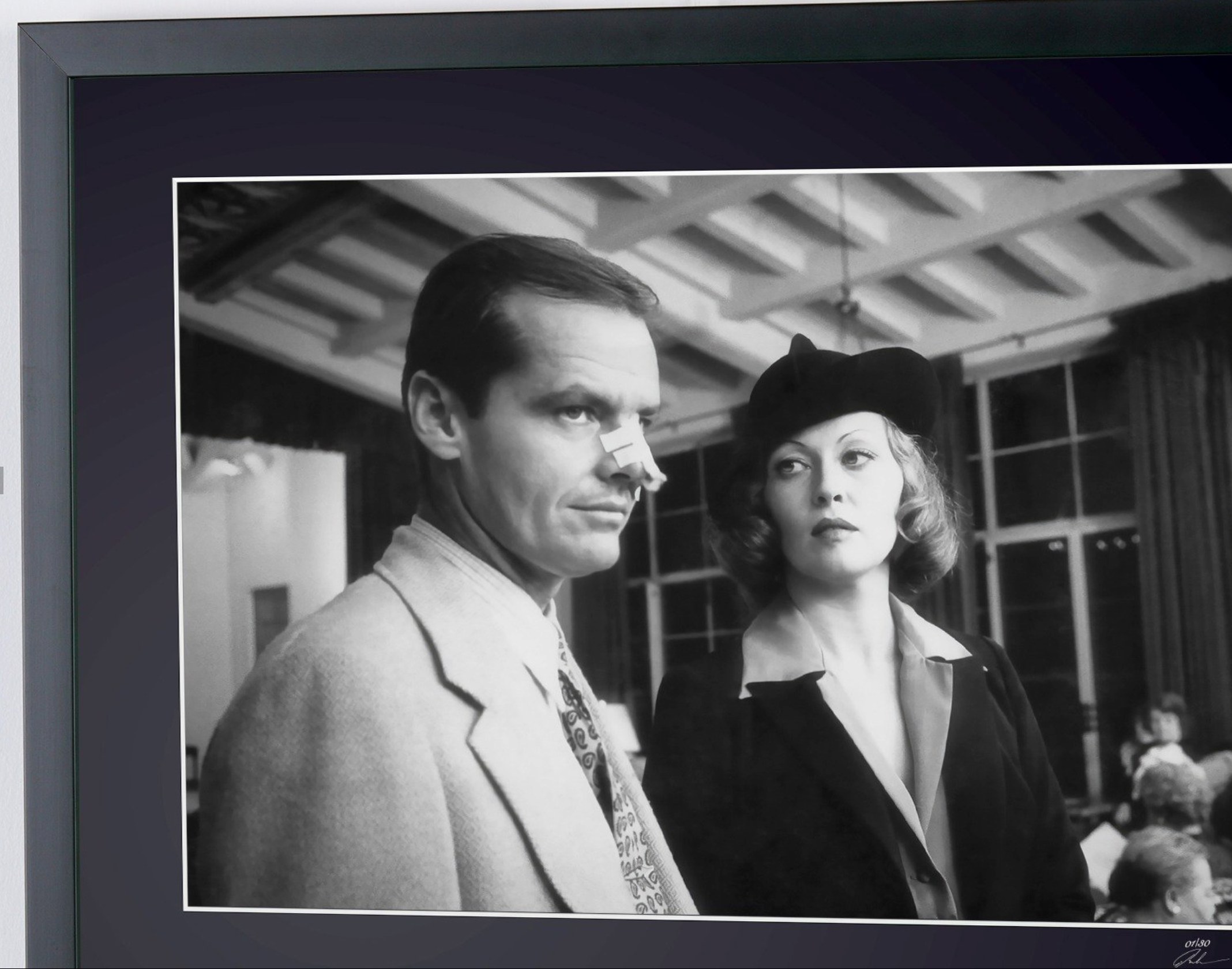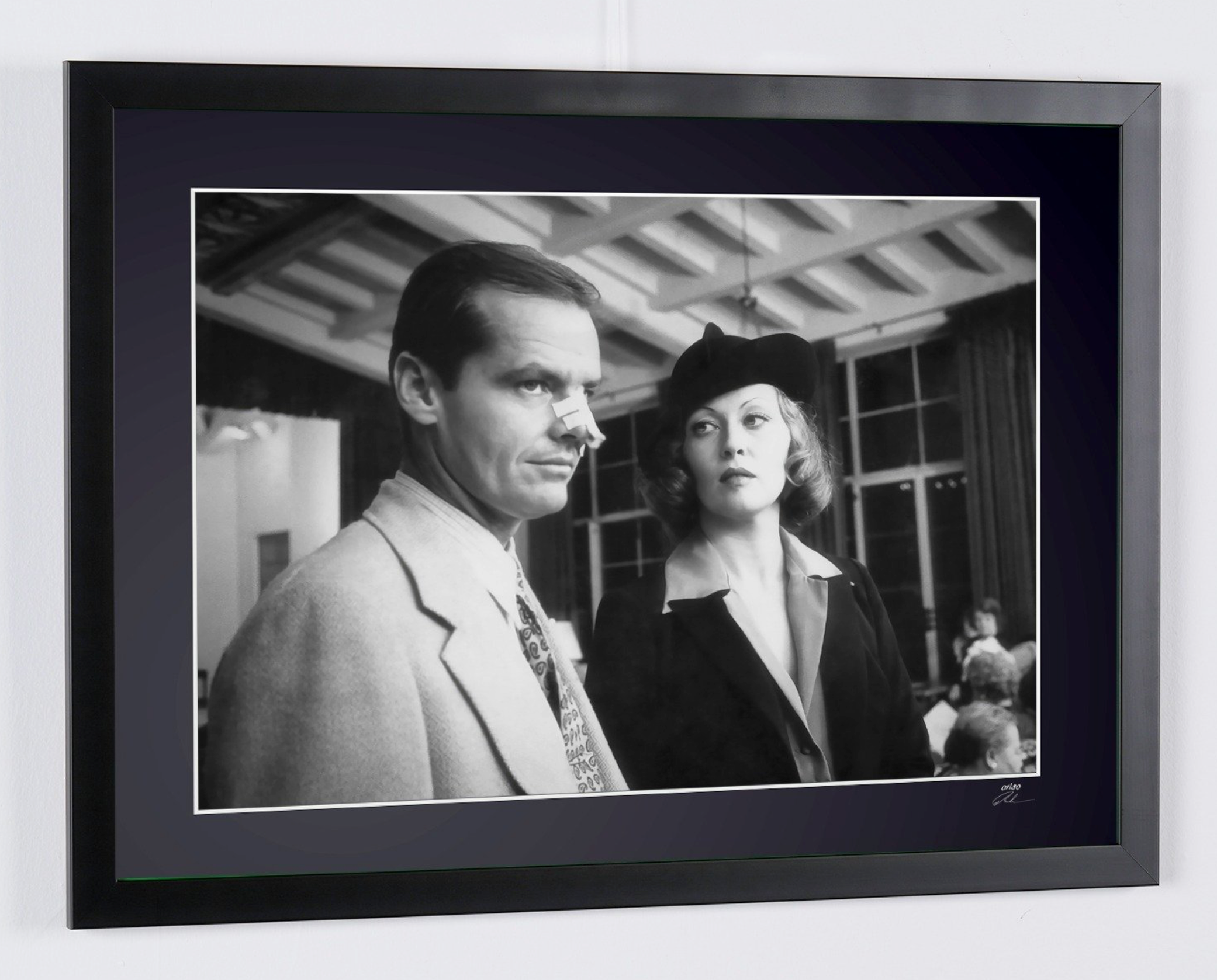 Fotografía enmarcada de «Chinatown 1974 - Jack Nicholson y Faye Dunaway» — Impresión artística en blanco y negro sobre papel Fine Art 70 x 50 cm