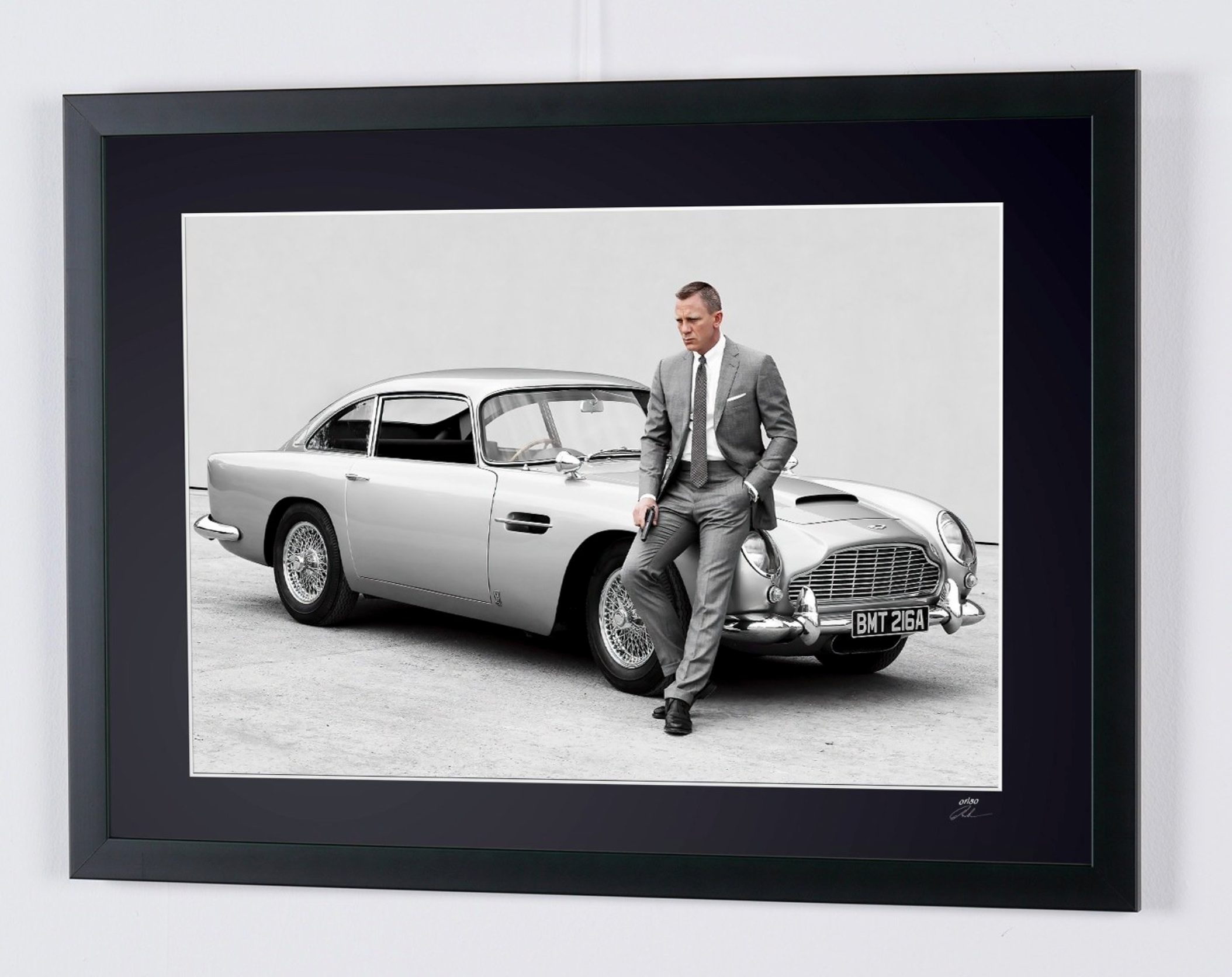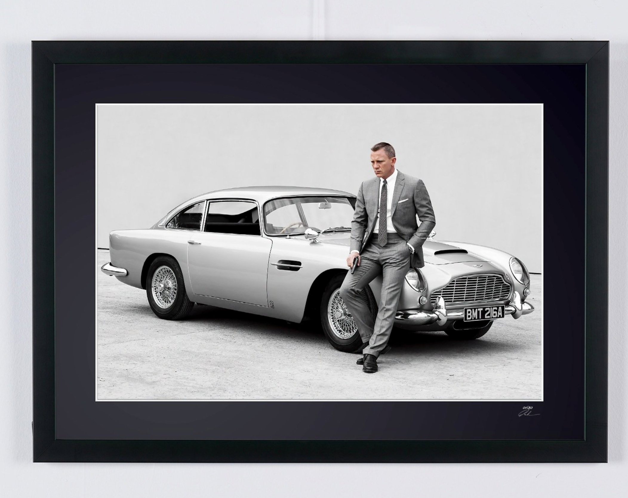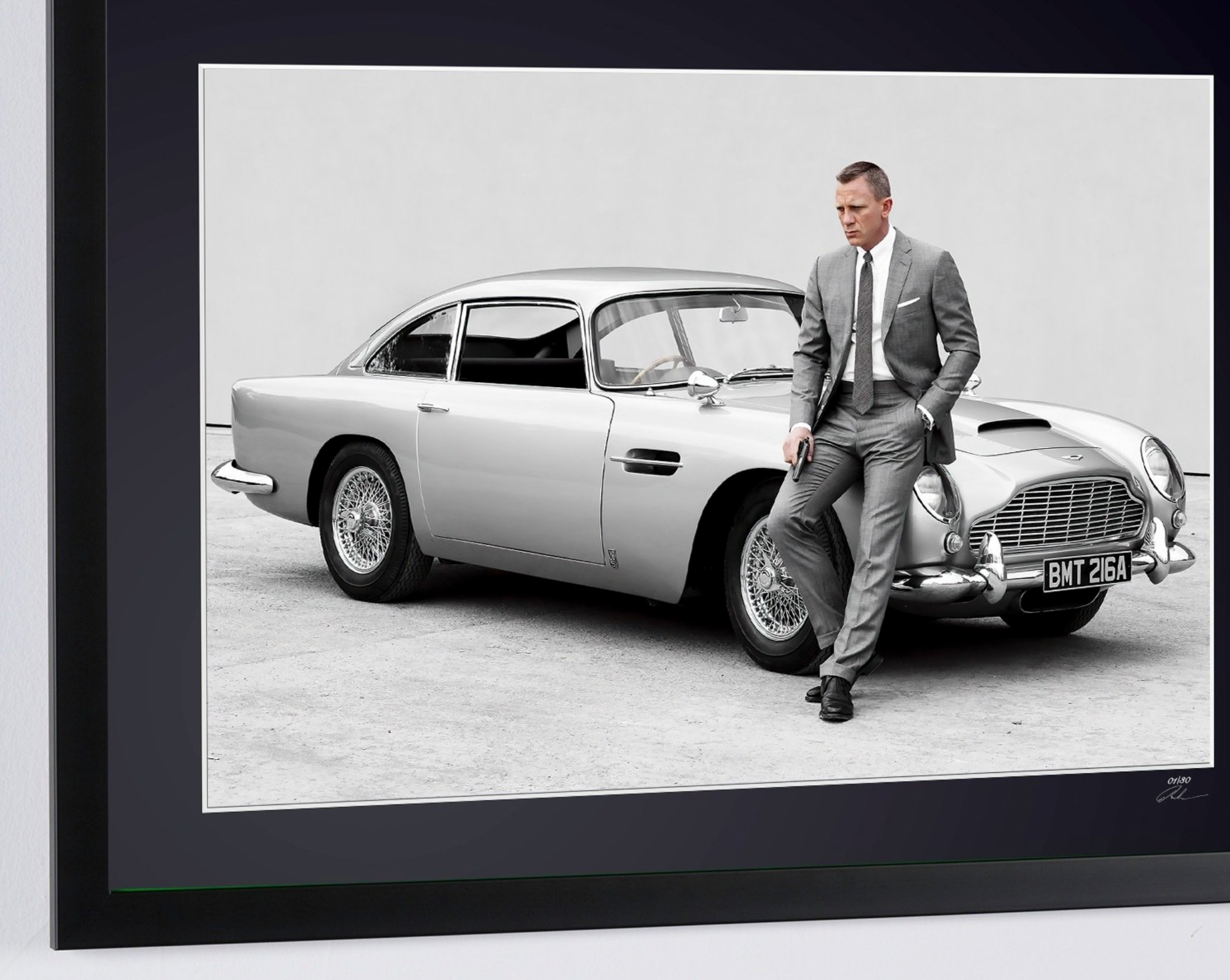Fotografía enmarcada de «James Bond 007: Skyfall, Daniel Craig - Aston Martin DB5» — Impresión artística en blanco y negro sobre papel Fine Art 70 x 50 cm