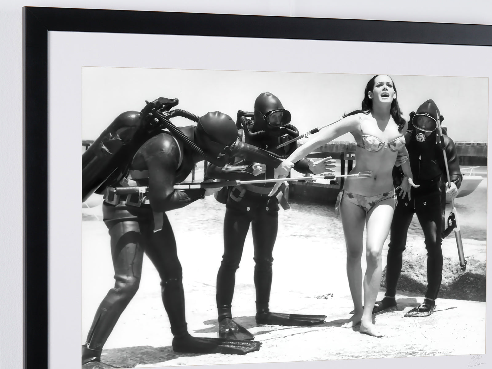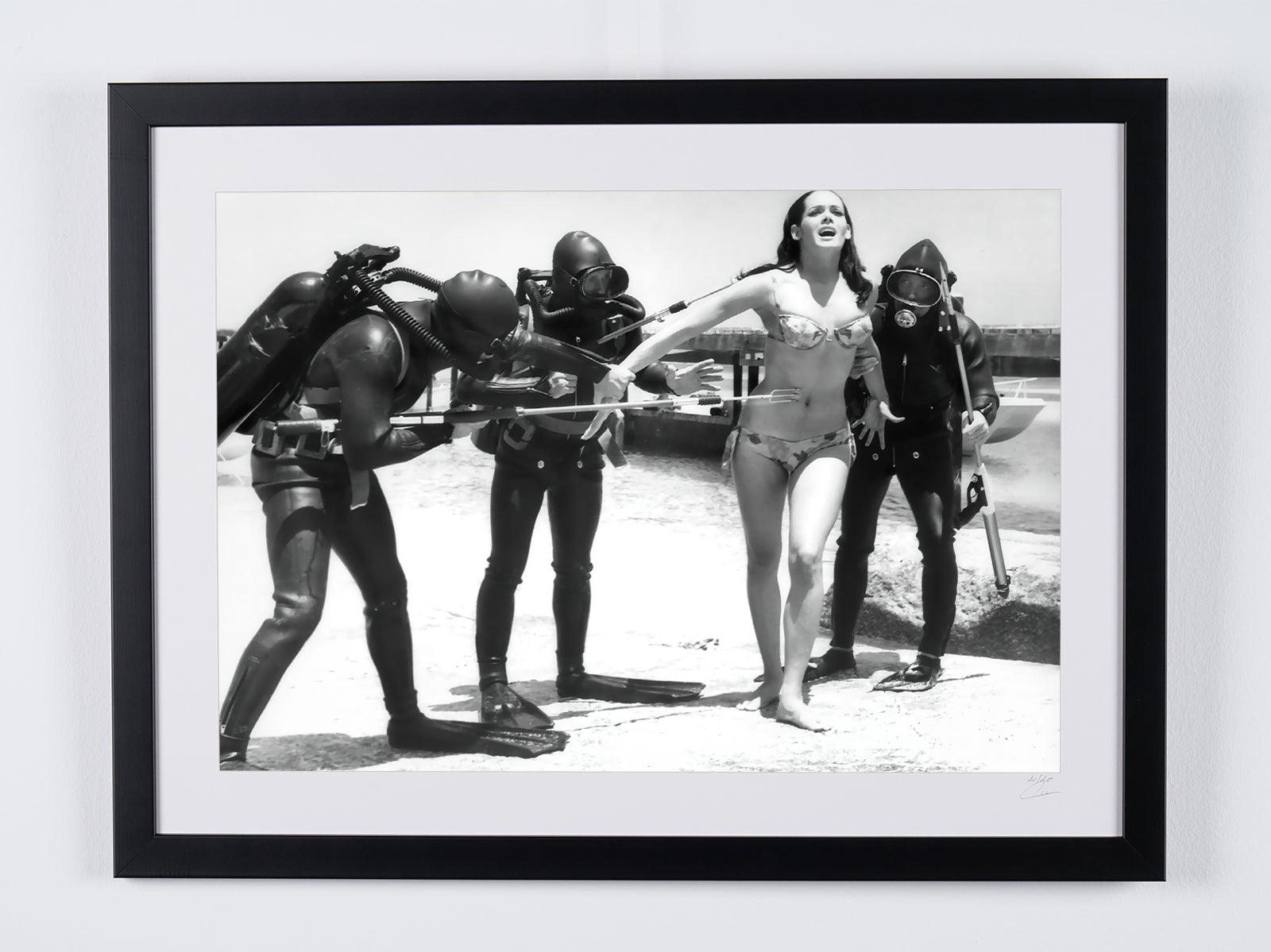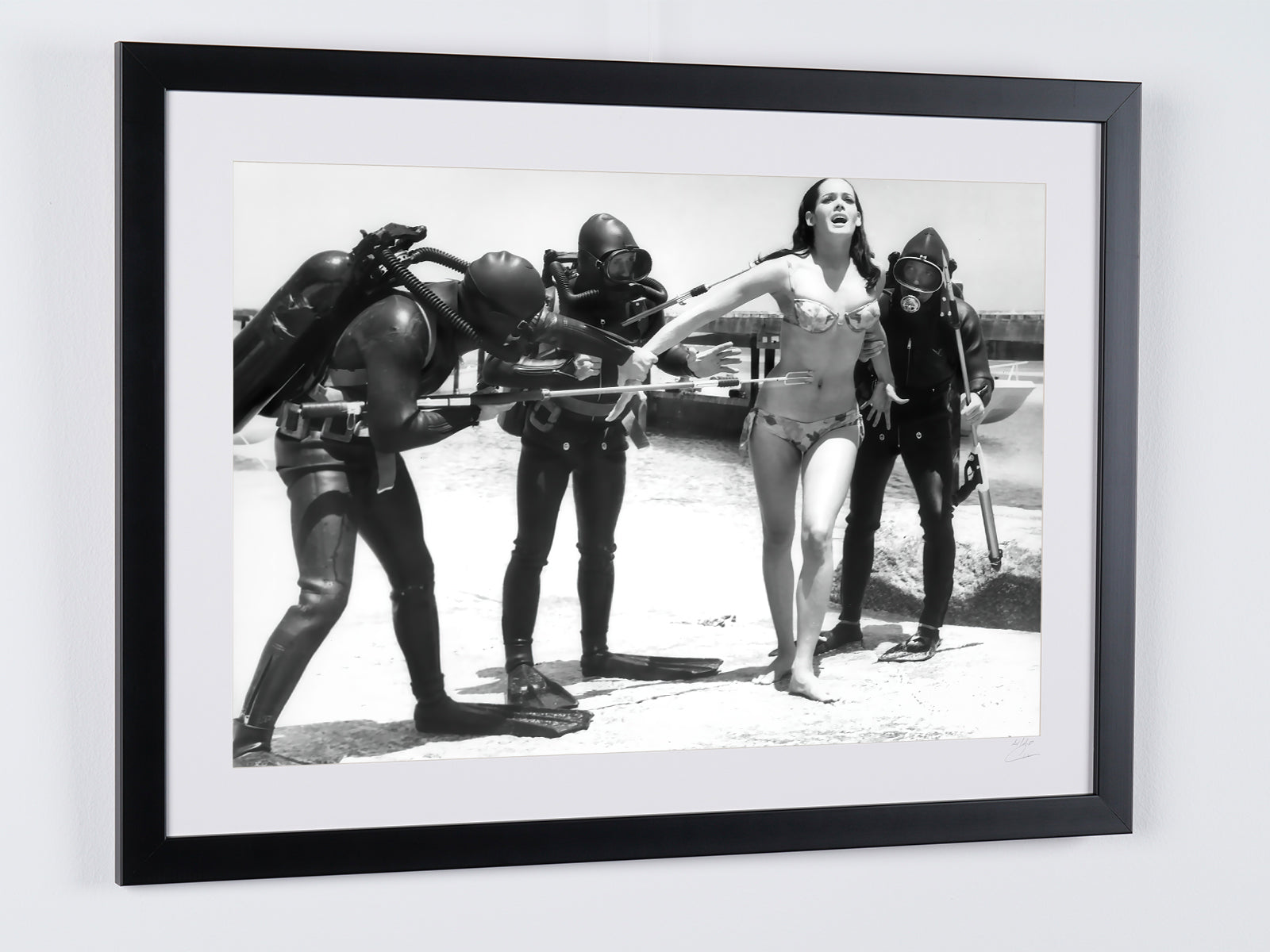 Fotografía enmarcada de James Bond : Operación Trueno - Martine Beswick en el plató, 1965» — Impresión artística en blanco y negro sobre papel Fine Art 70x50 cm