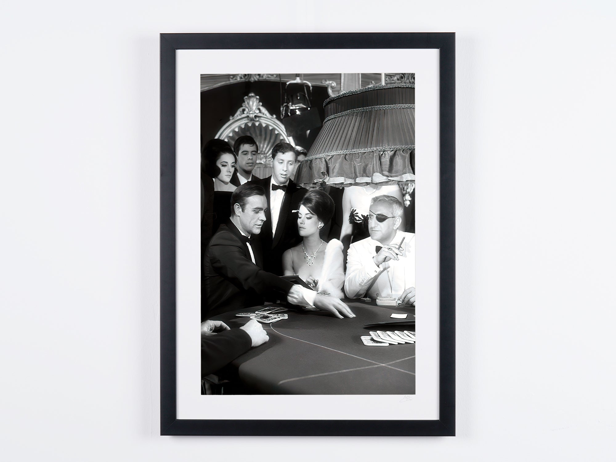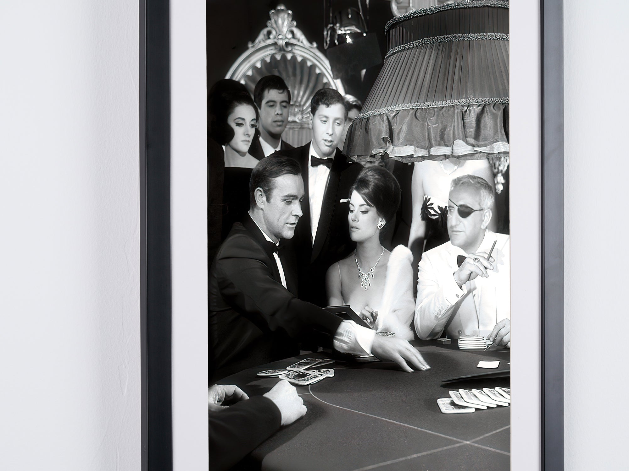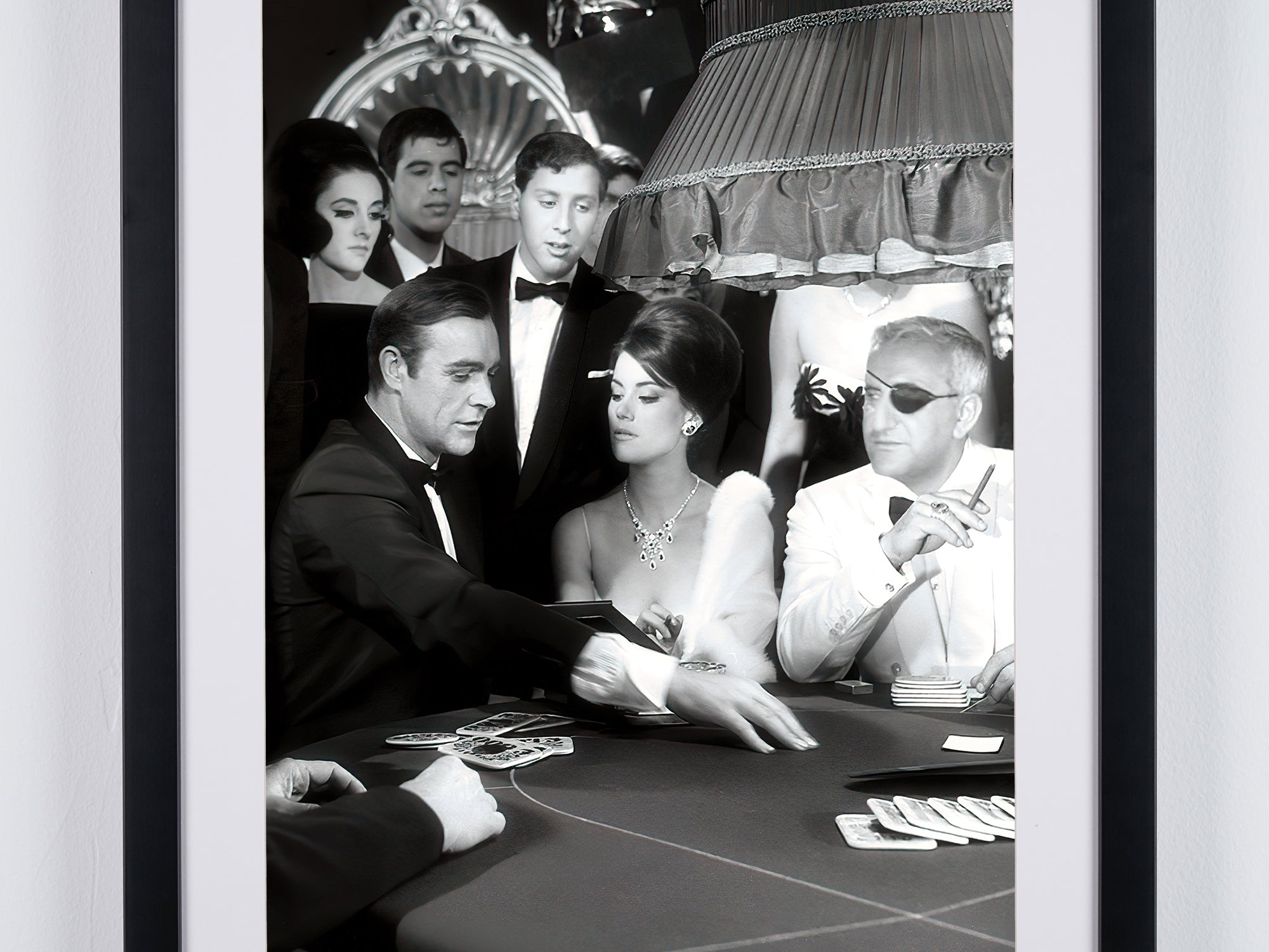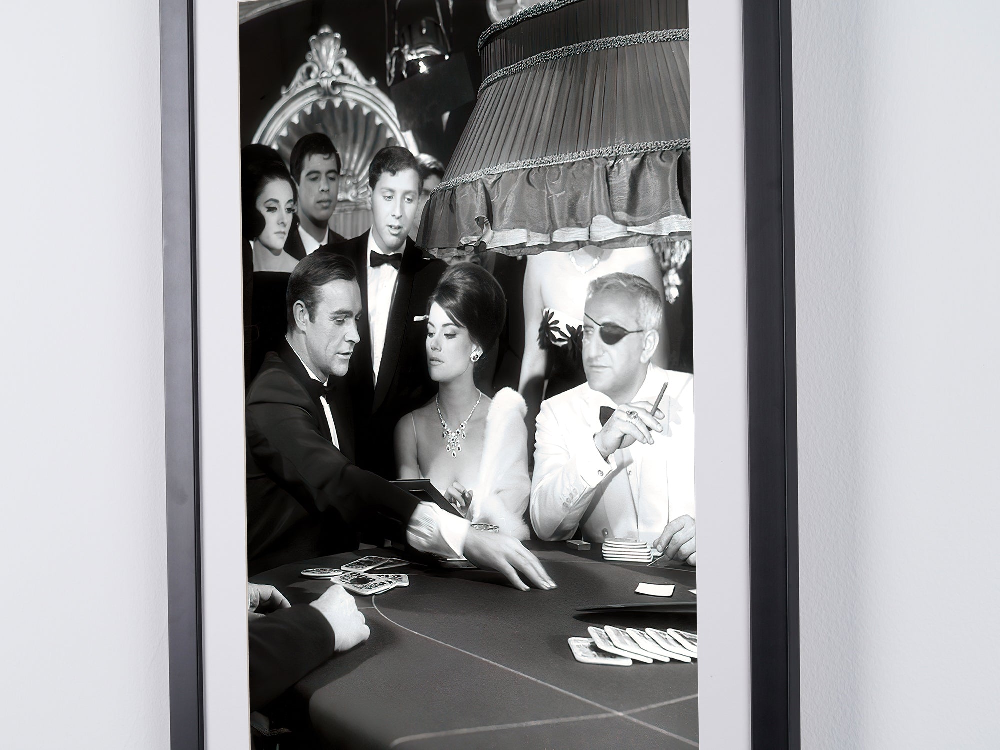 Fotografía enmarcada de James Bond : Operación Trueno - Sean Connery Emilio Largo en la escena del casino» — Impresión artística en blanco y negro sobre papel Fine Art 70x50 cm