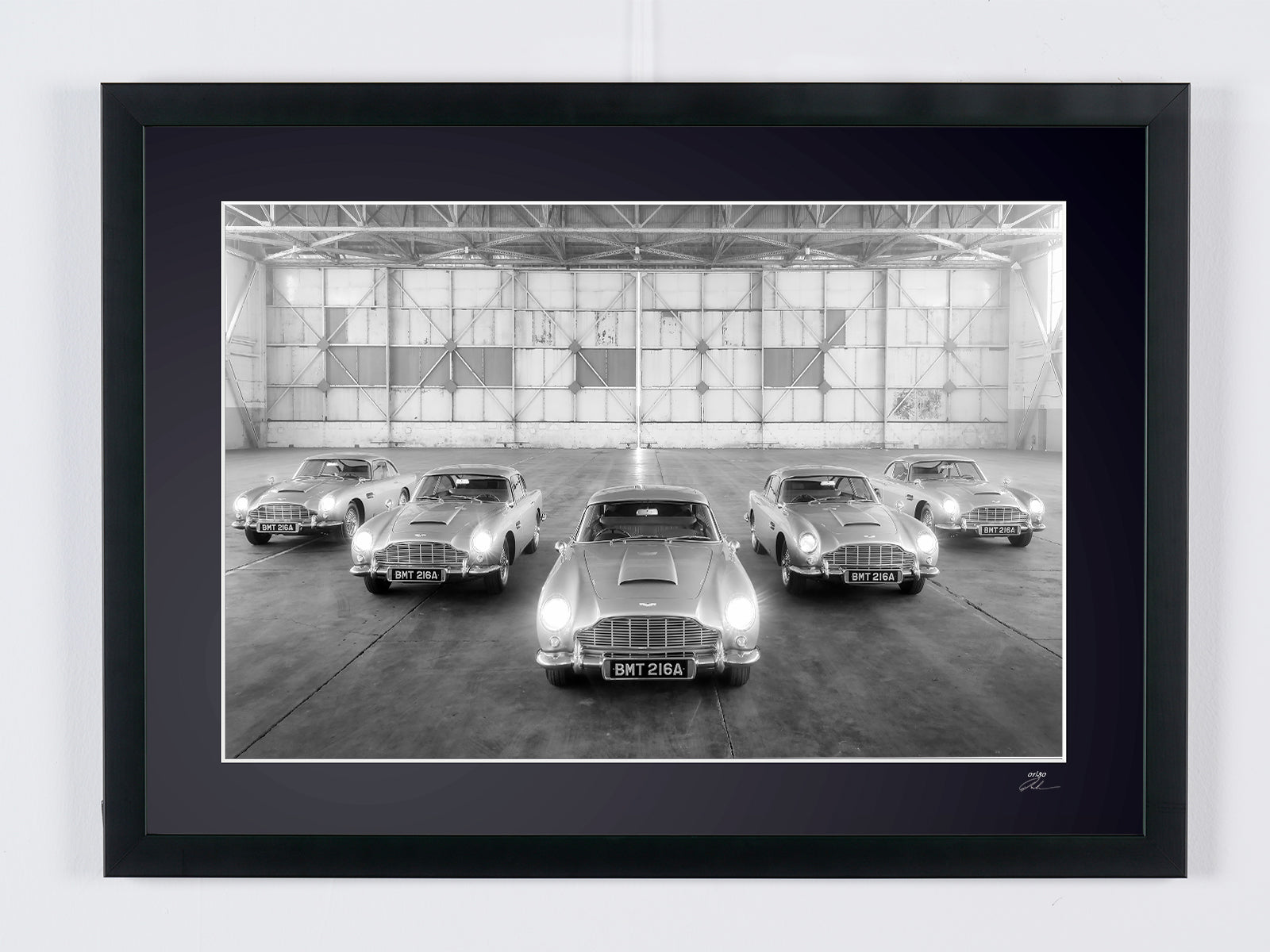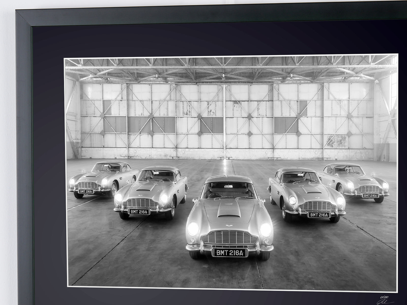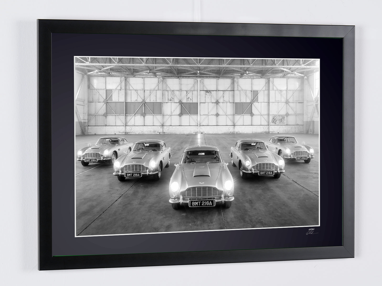 Fotografía enmarcada de «James Bond, Aston Martin DB5 History» — Impresión artística en blanco y negro sobre papel Fine Art 70 x 50 cm