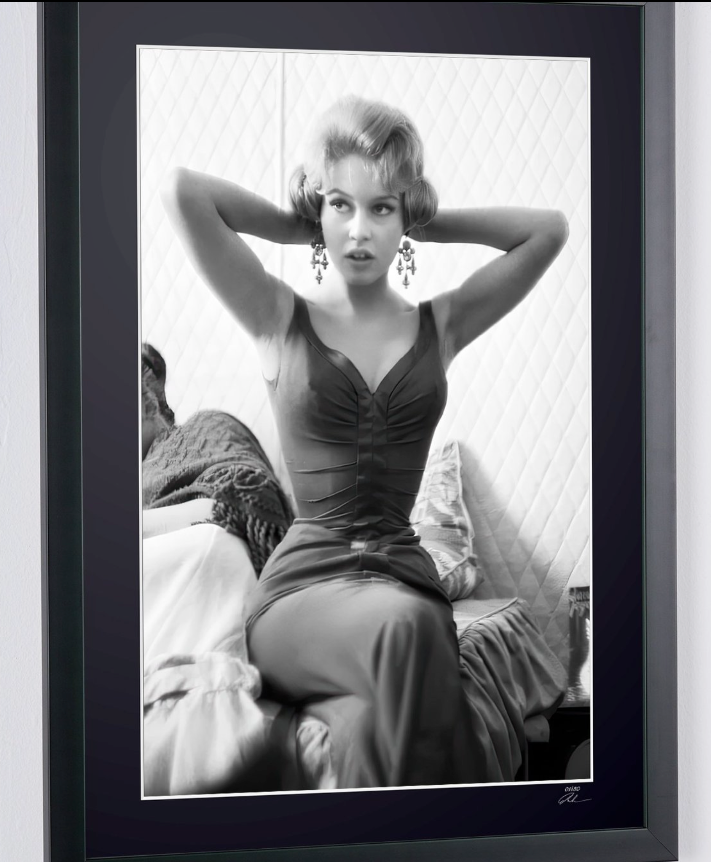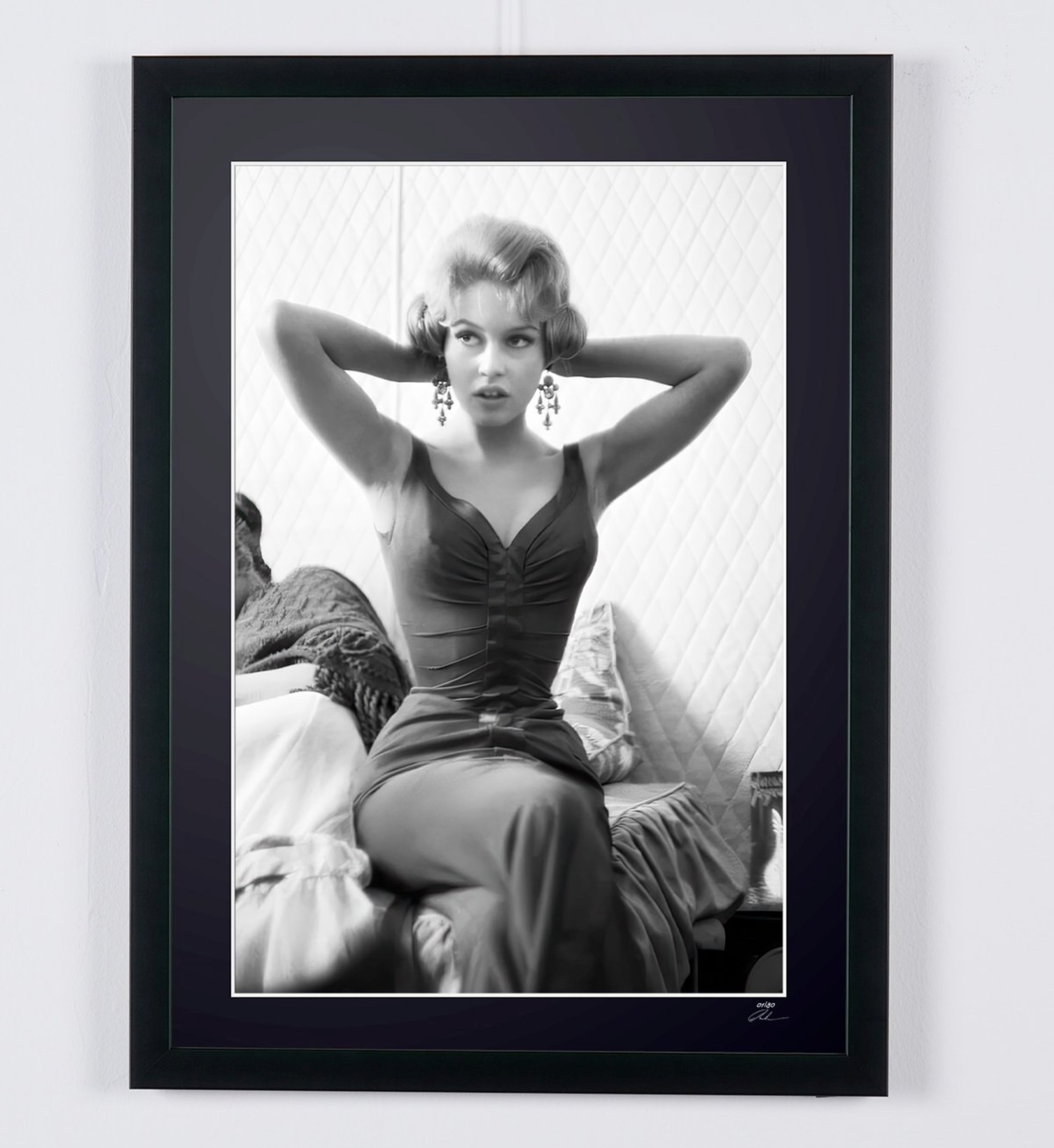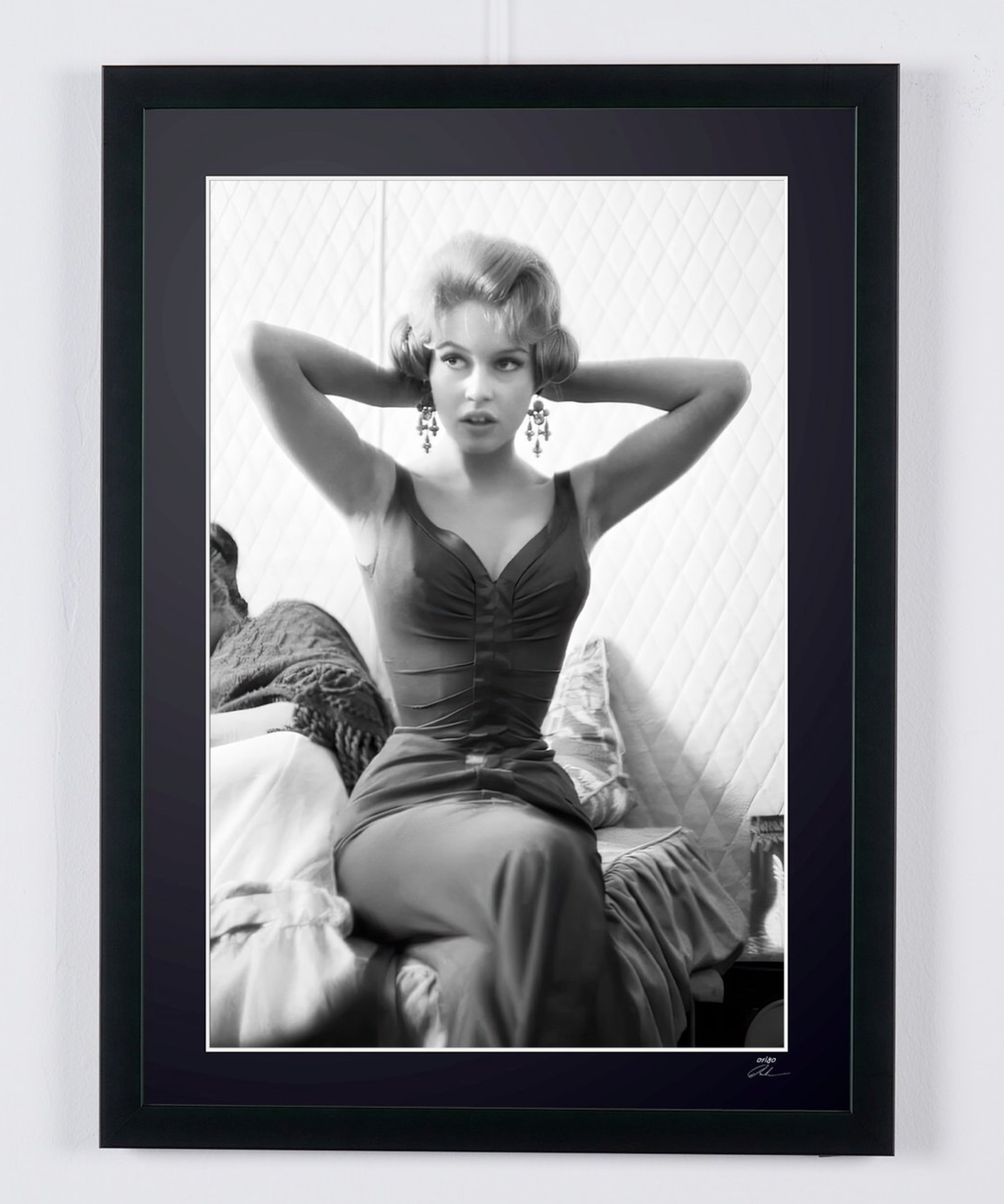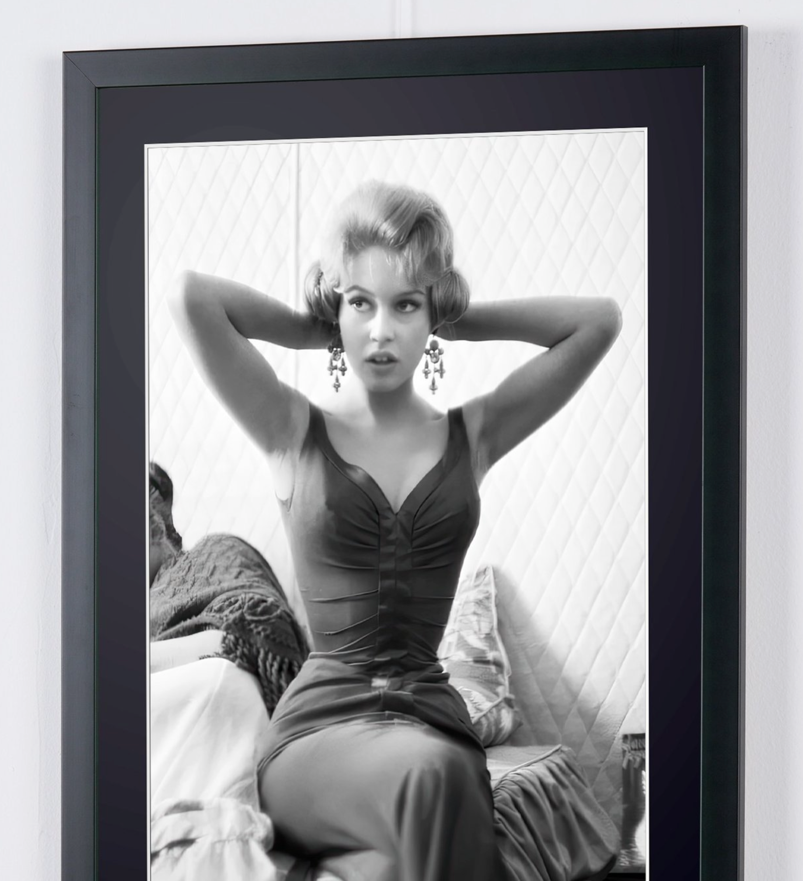 Fotografía enmarcada de «La Parisienne (1957) - Brigitte Bardot» — Impresión artística en blanco y negro sobre papel Fine Art 70 x 50 cm