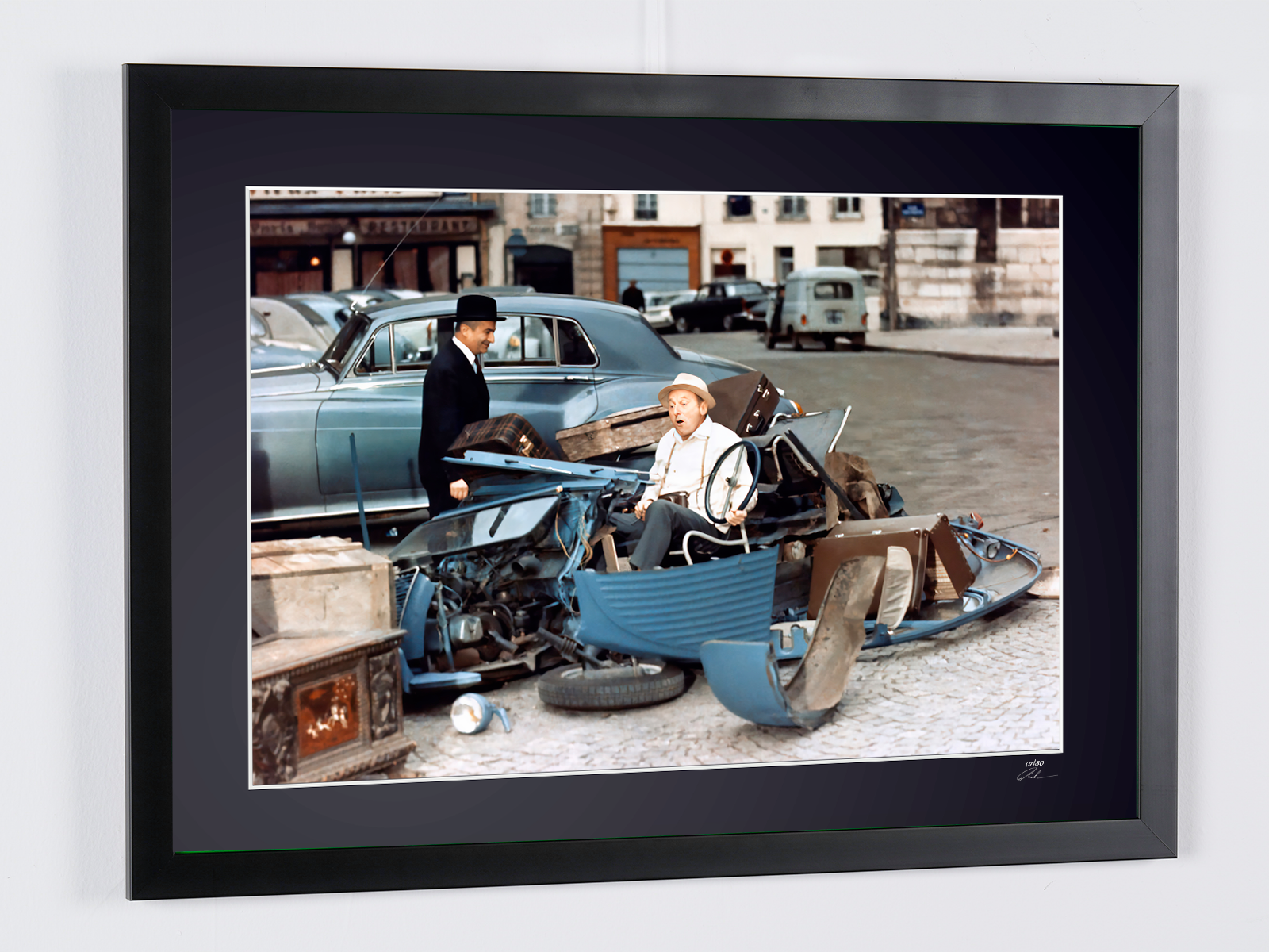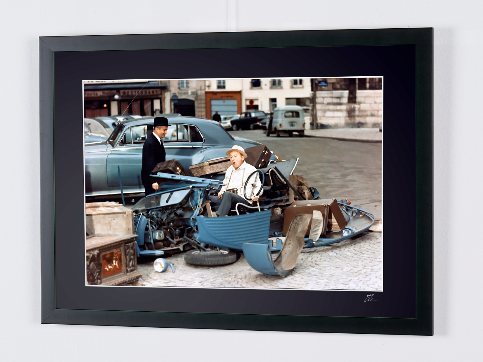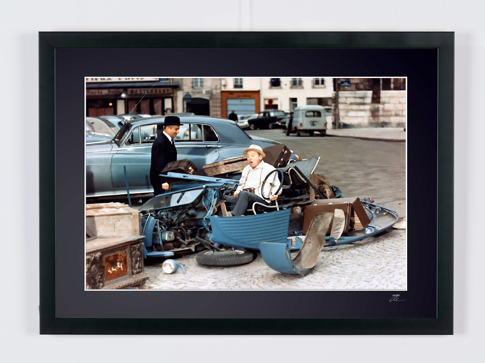Fotografía enmarcada de «Le Corniaud (1965) - Louis de Funès y Bourvil» — Impresión artística en blanco y negro sobre papel Fine Art 70 x 50 cm