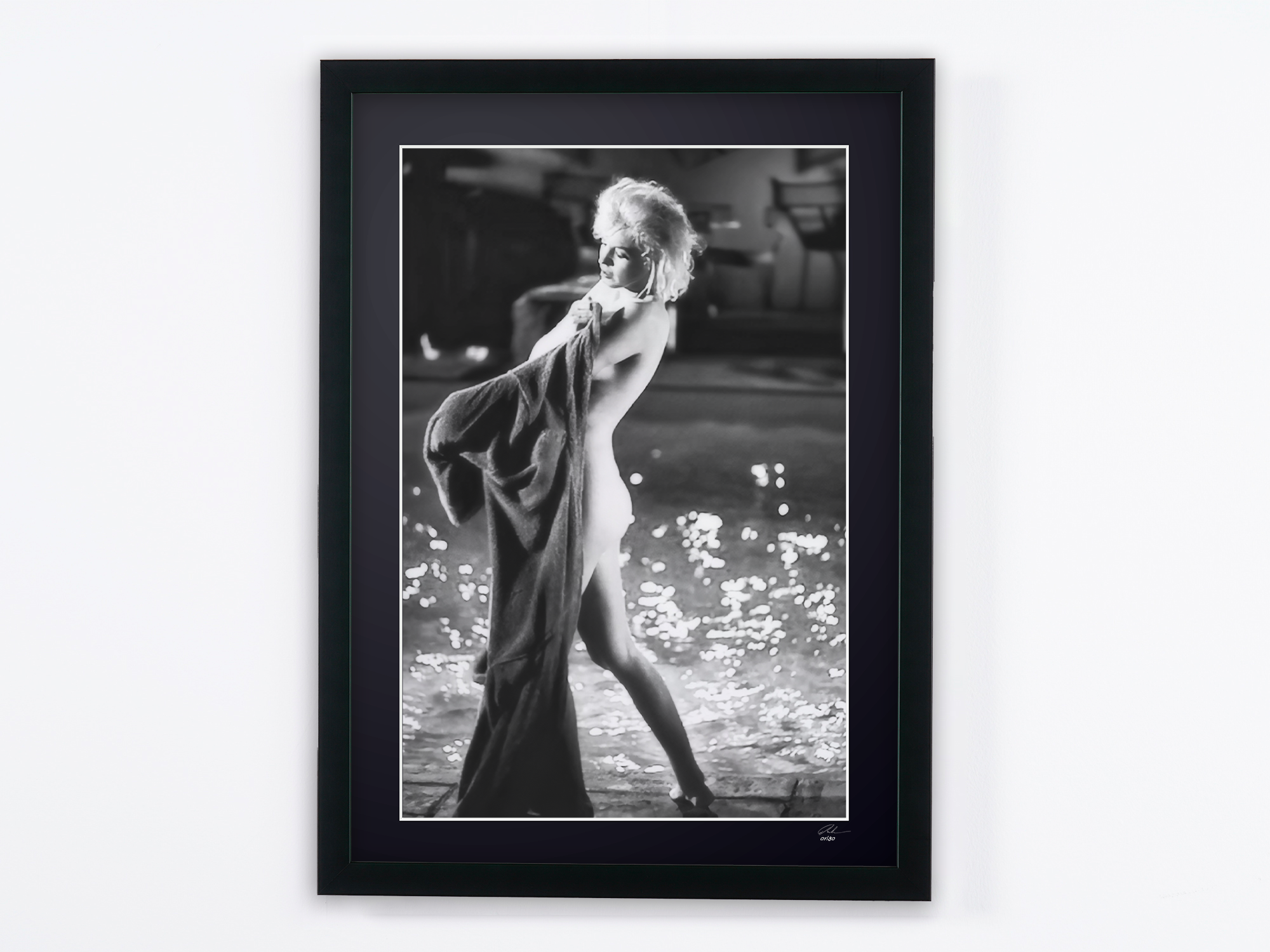 Fotografía enmarcada de «Marilyn Monroe 1962 - En el rodaje de su última película (Marilyn Monroe)» — Impresión artística en blanco y negro sobre papel Fine Art 70 x 50 cm