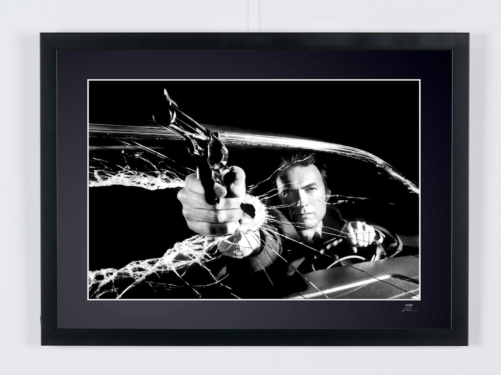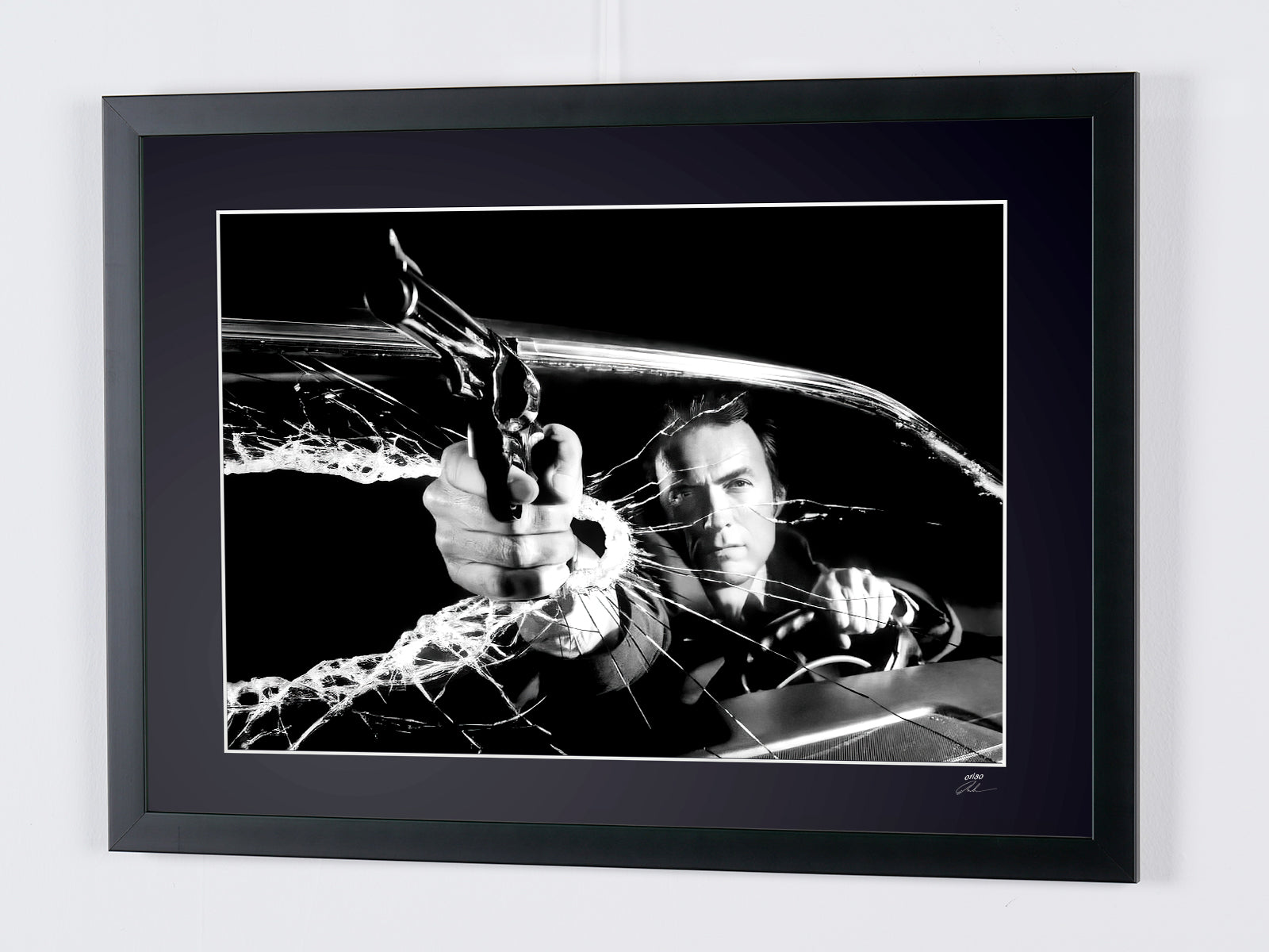 Fotografía enmarcada de «The Enforcer (1976) - Clint Eastwood como Harry el Sucio - Fotografía, marco de madera de lujo, 70 x 50 cm» — Impresión artística en blanco y negro sobre papel Fine Art 70 x 50 cm