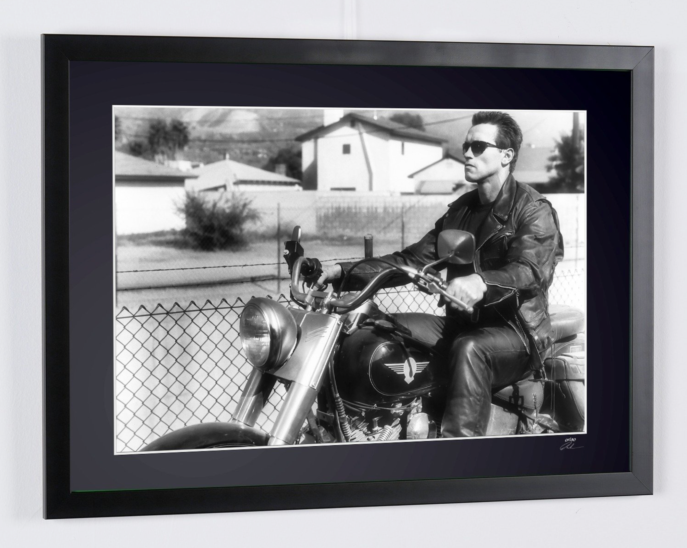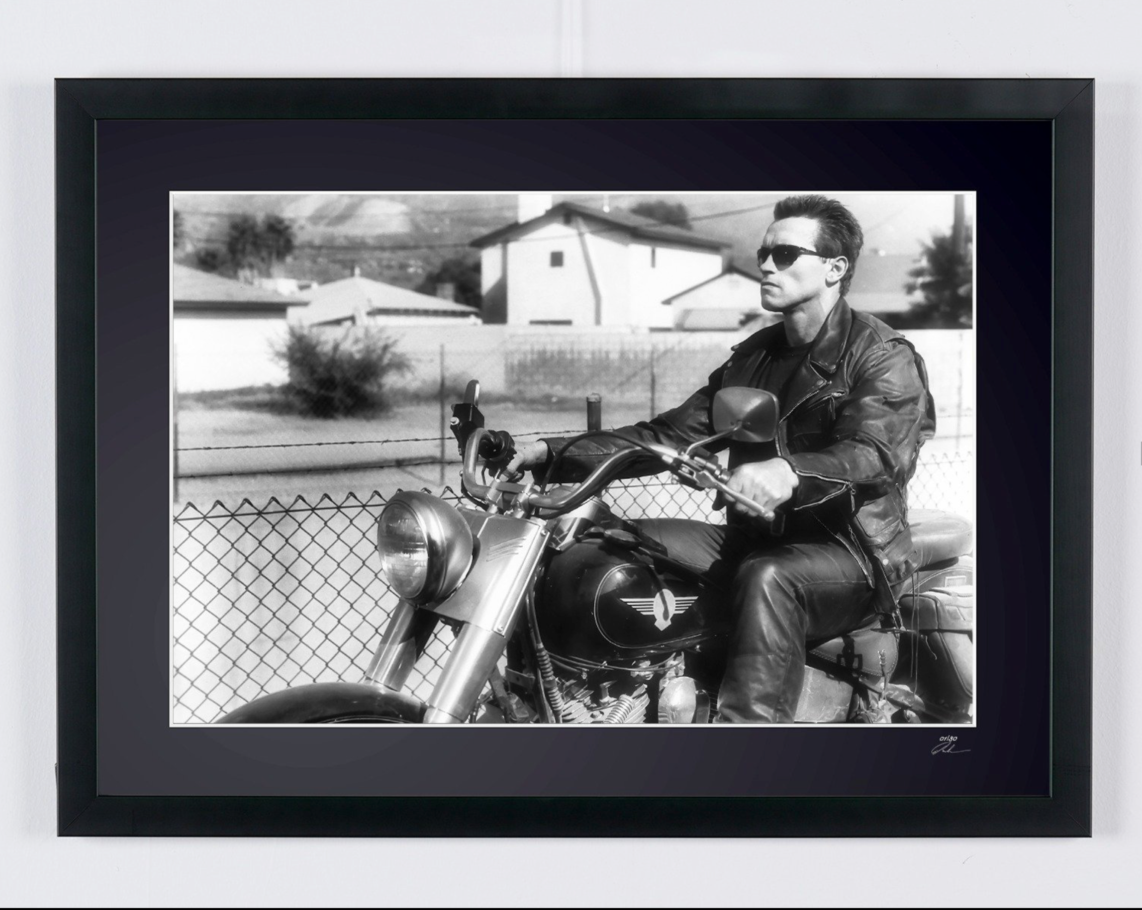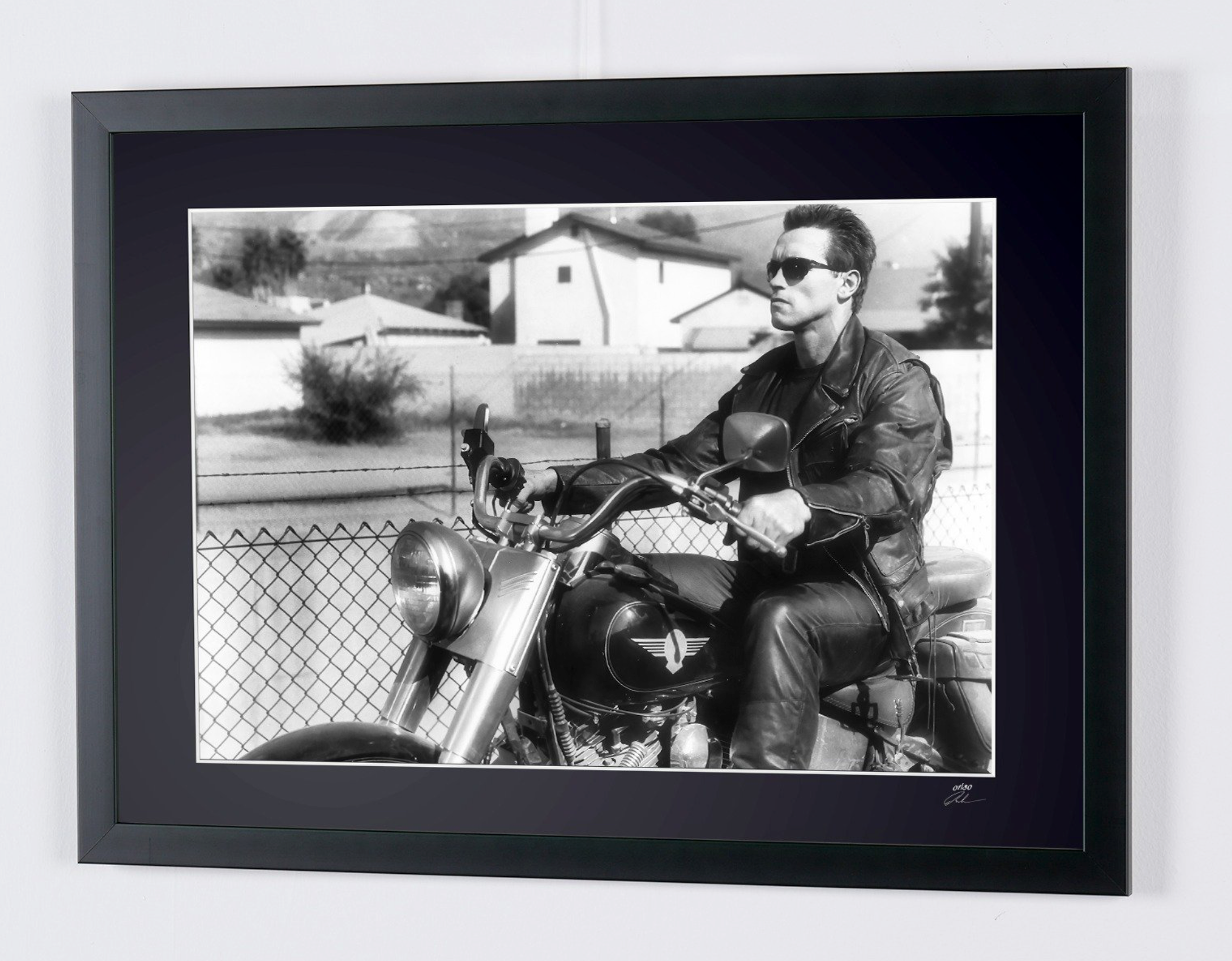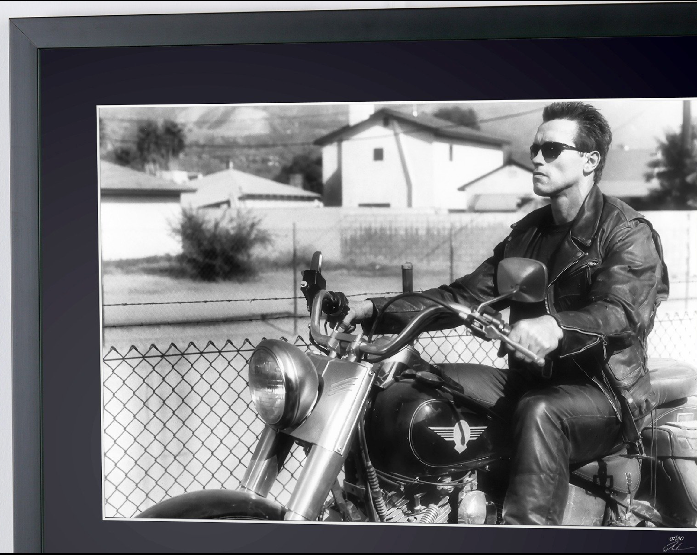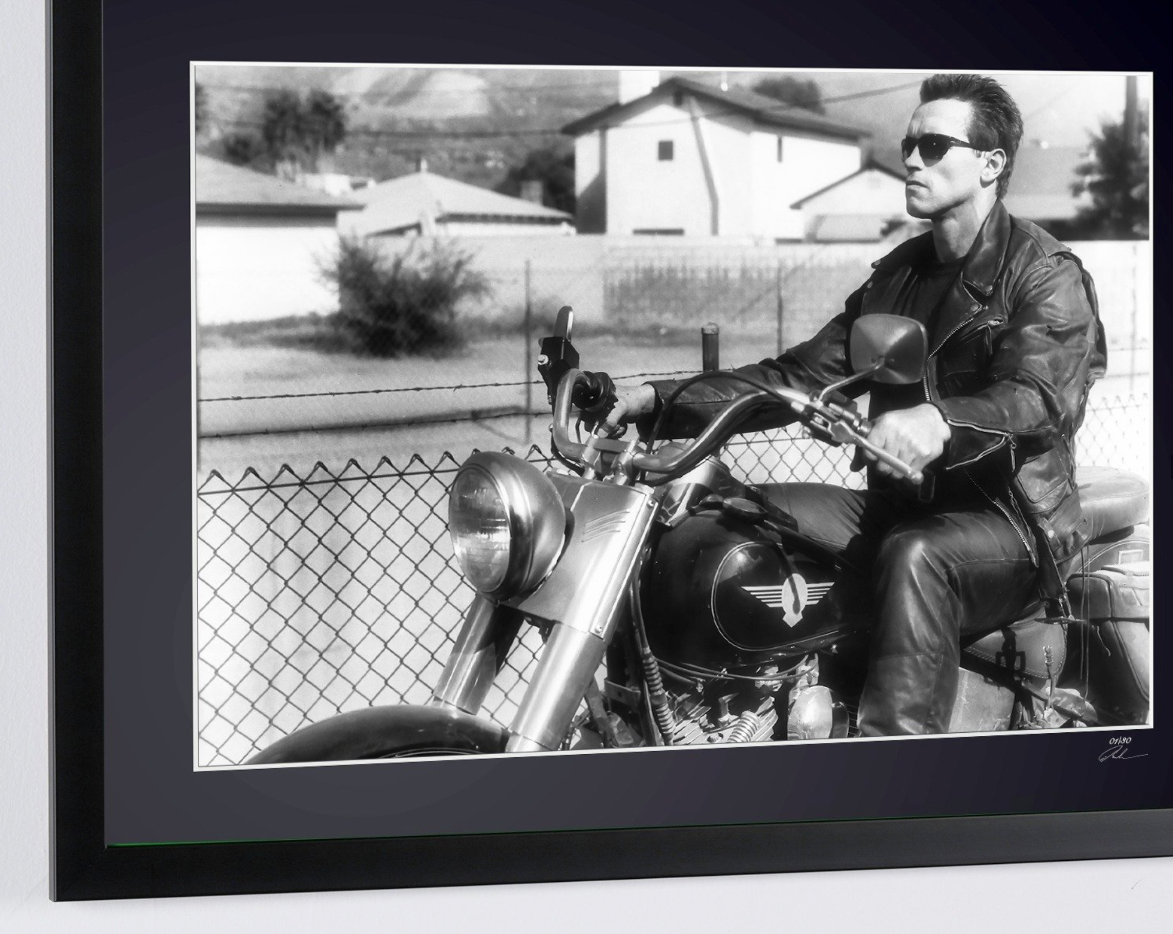 Fotografía enmarcada de «Terminator 2 (1991) - Arnold Schwarzenegger» — Impresión artística en blanco y negro sobre papel Fine Art 70x50 cm