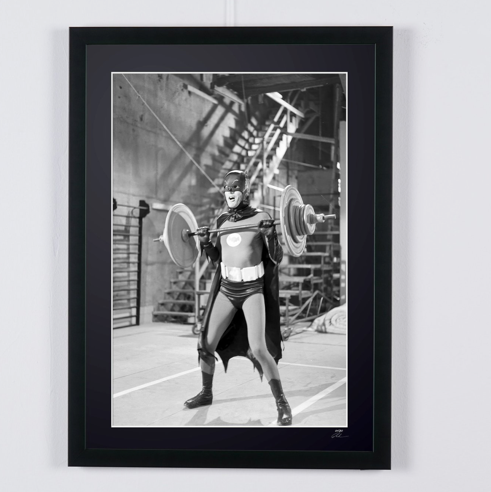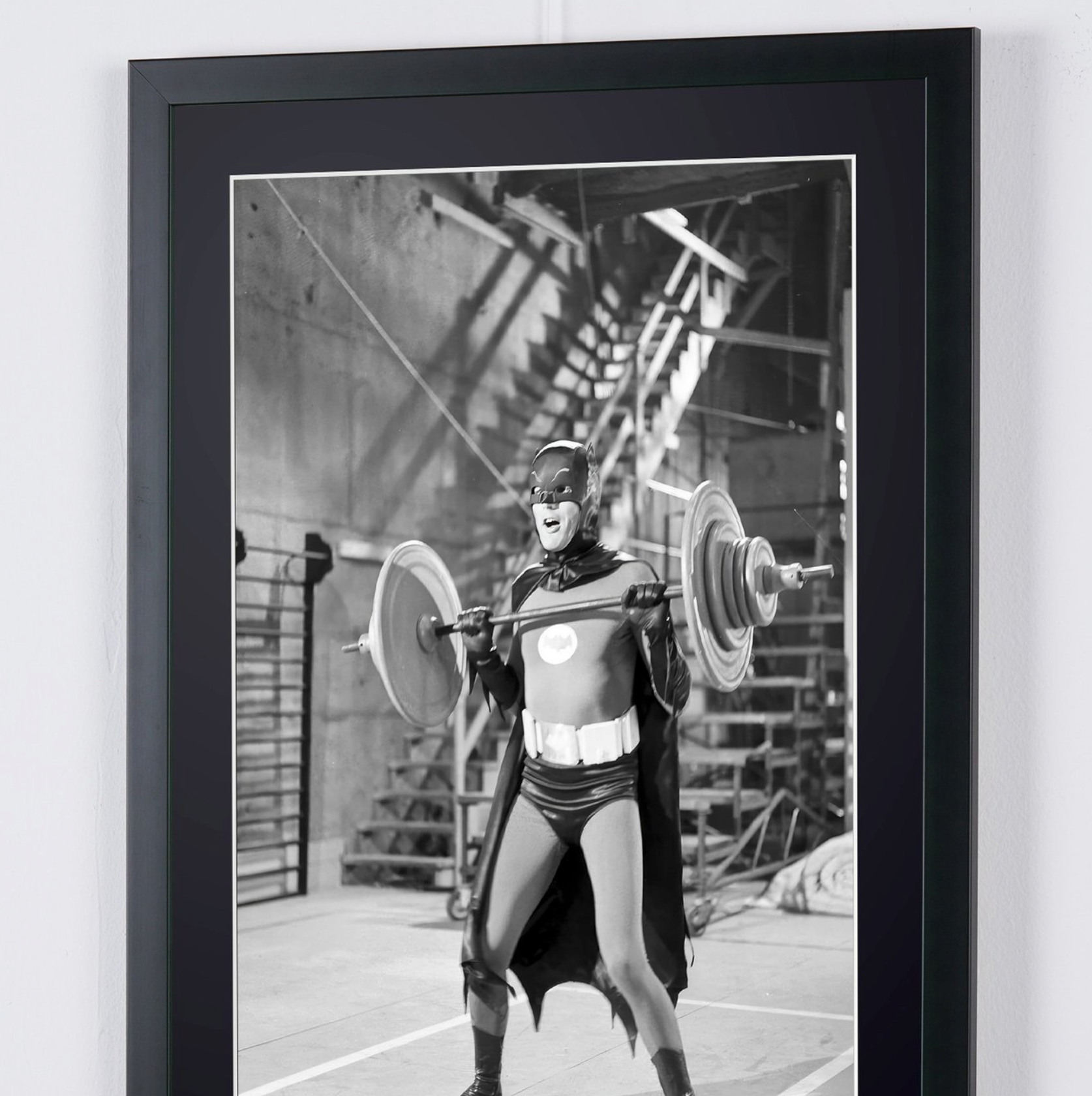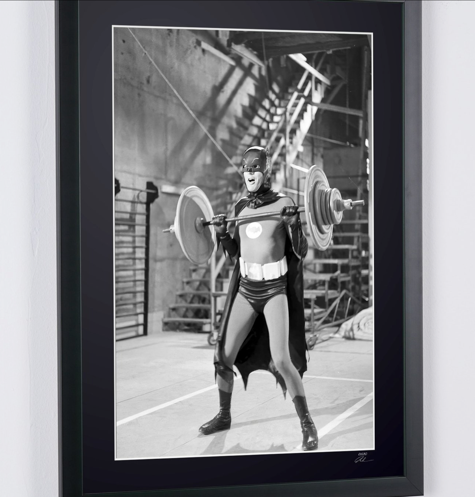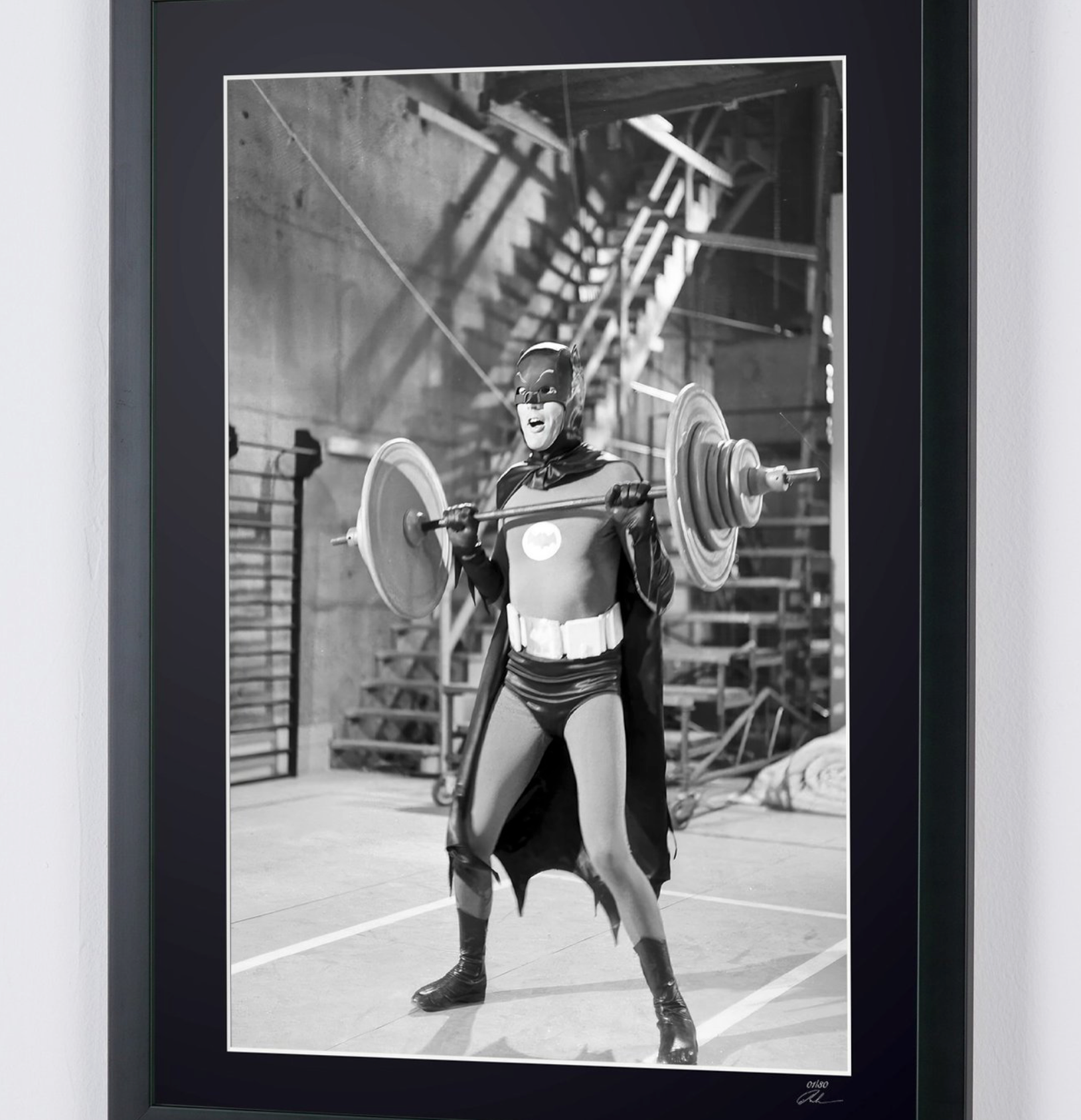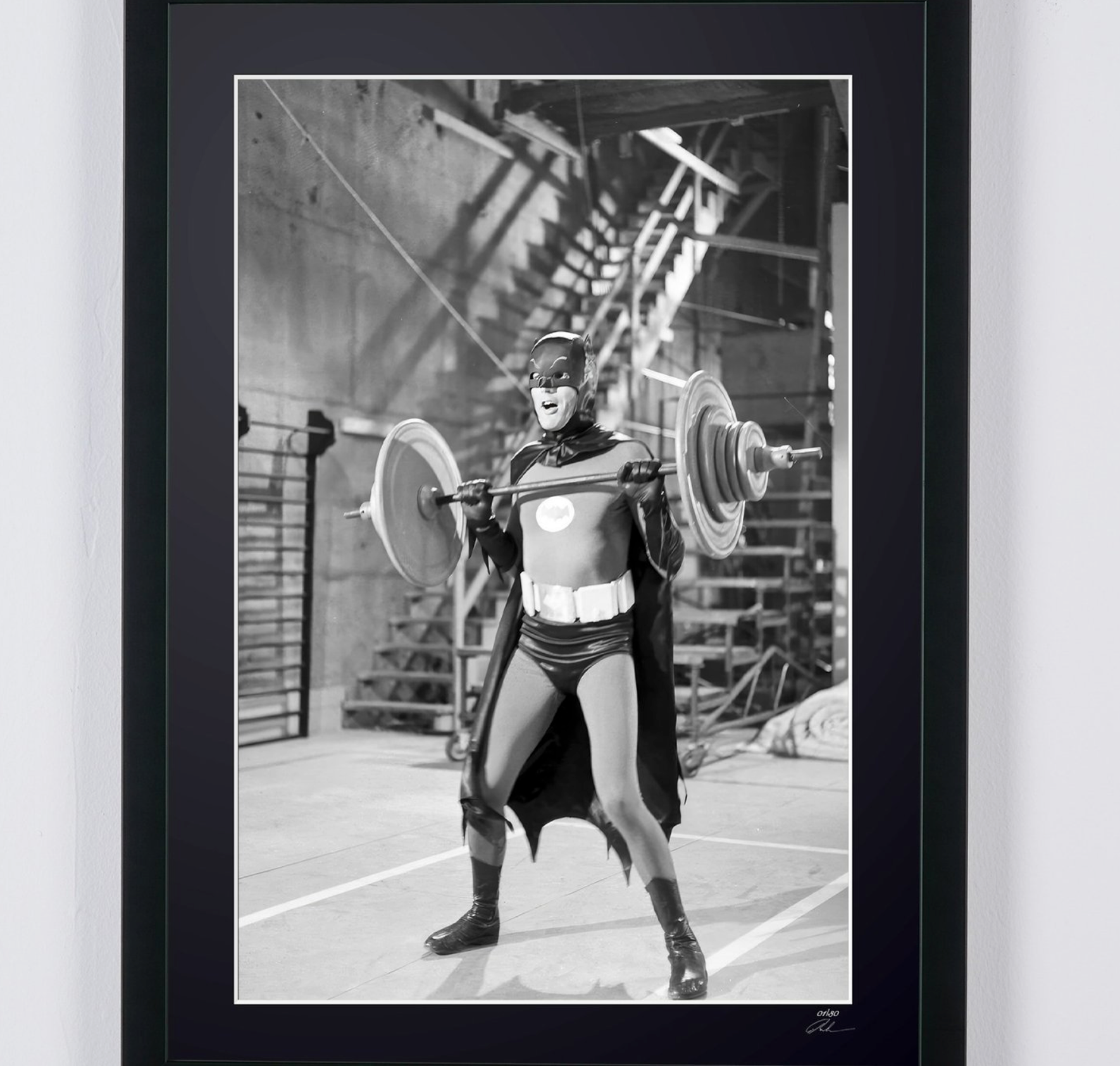 Foto incorniciata "Batman - Classic TV - Adam West sul set" — Stampa artistica in bianco e nero su carta Fine Art 70x50 cm