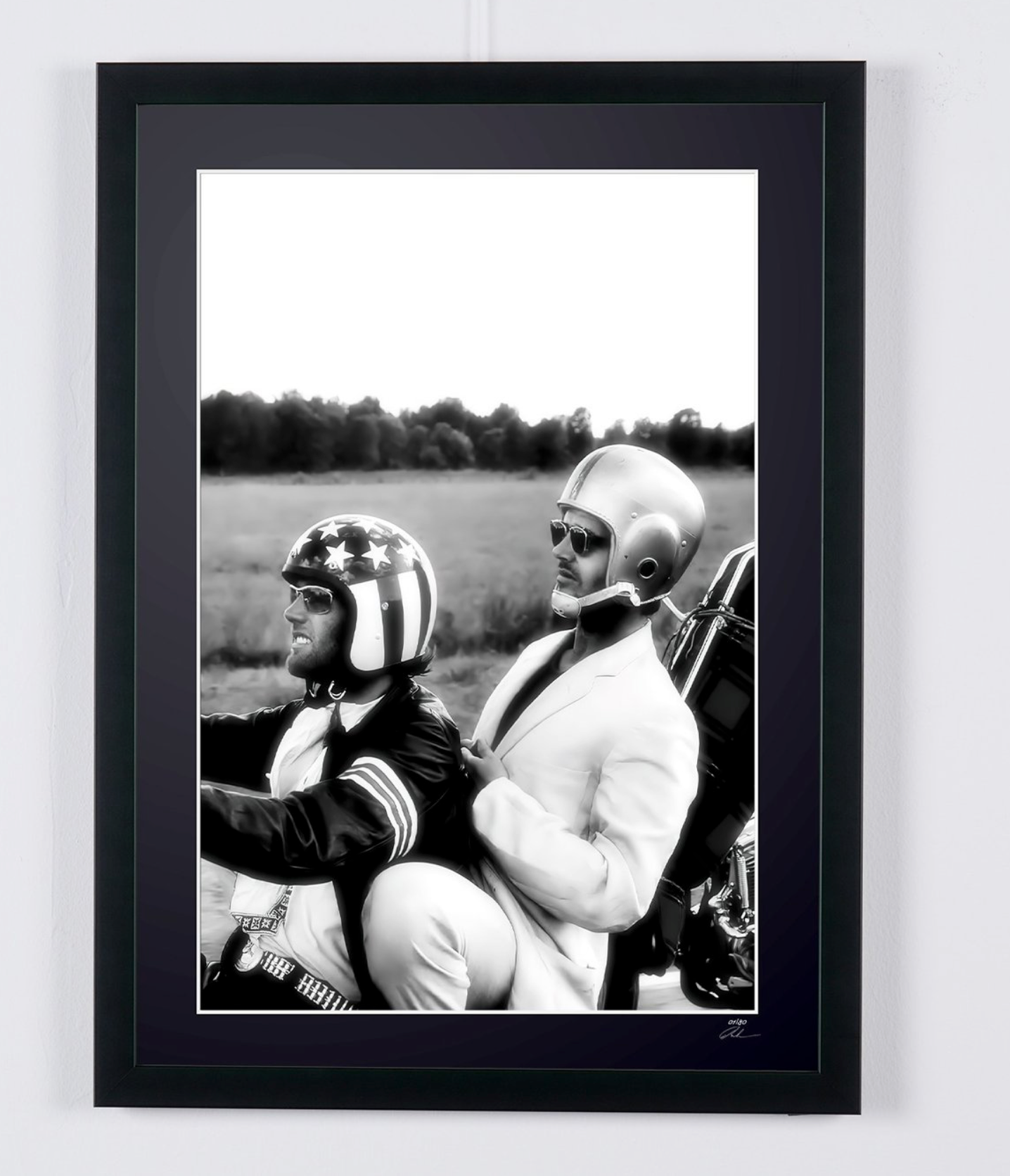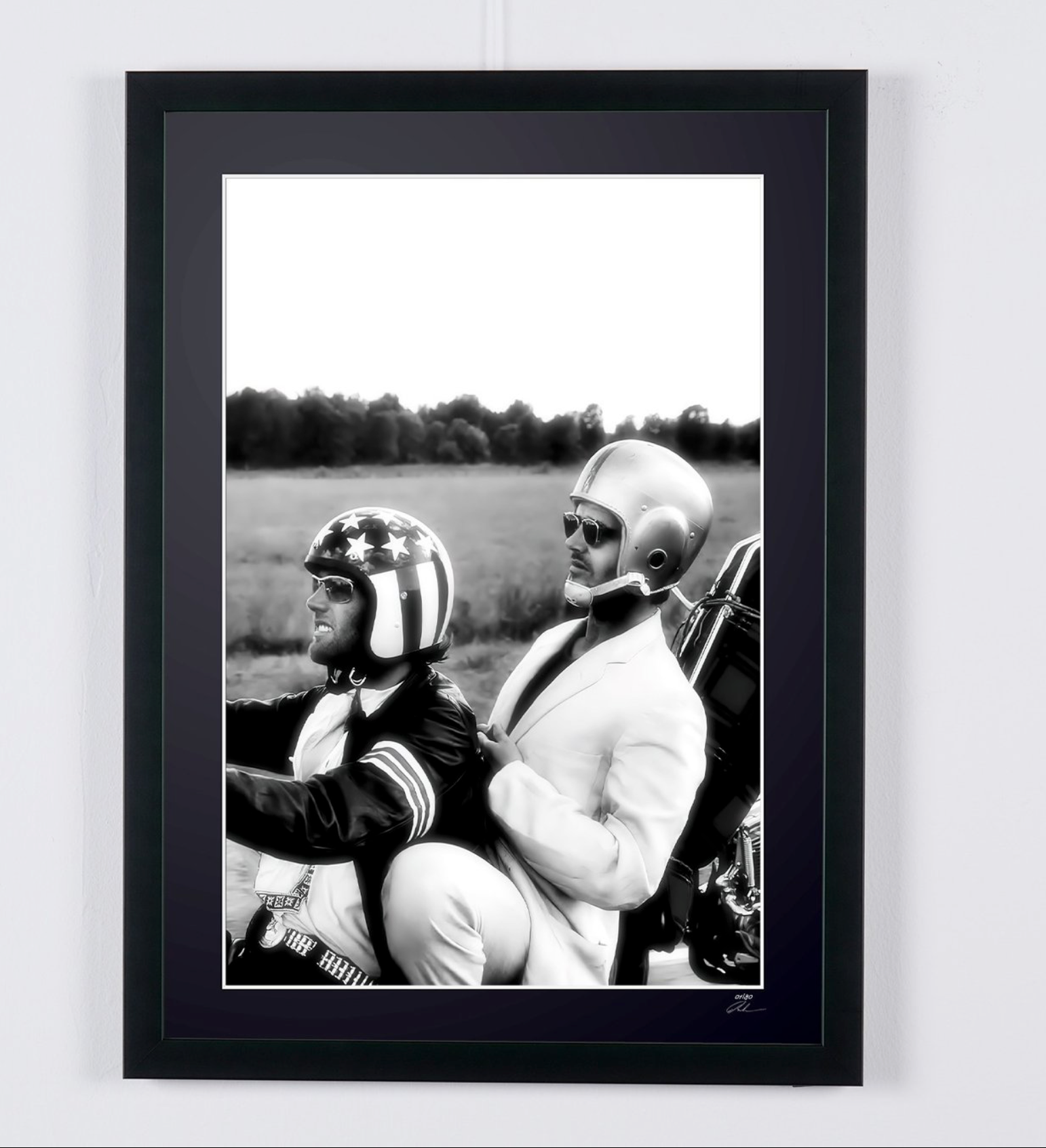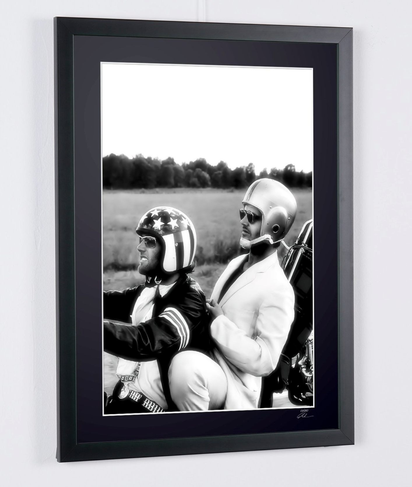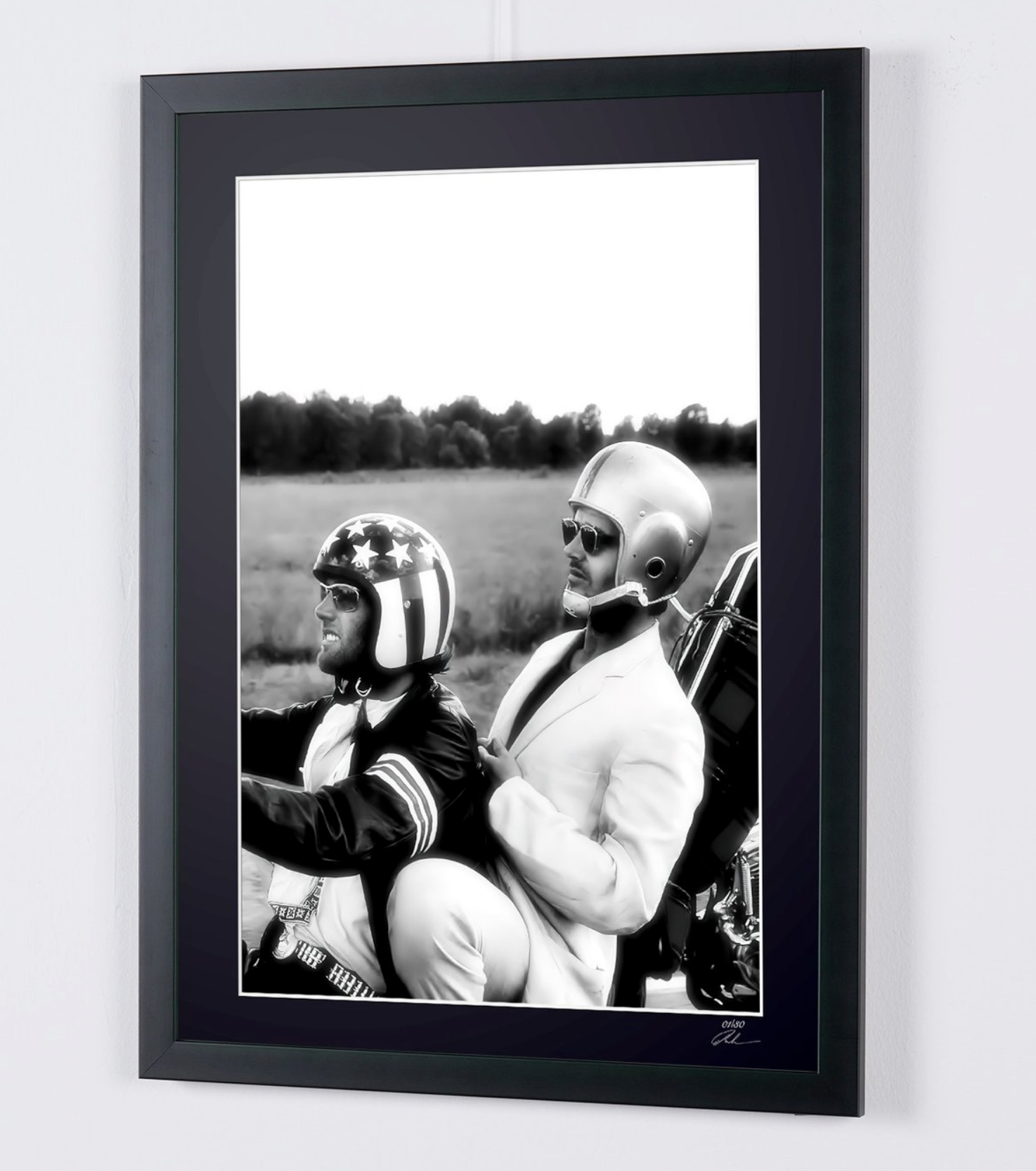 Cette photo d'art encadrée à la main capture l'essence de ce road movie mythique. Tirage limité à 30 exemplaires sur papier Fine Art 70x50 cm, sublimé par un cadre en bois massif et verre cristal 3mm. Chaque œuvre est accompagnée d'un certificat d'authenticité avec hologramme et expédiée sous 48h.