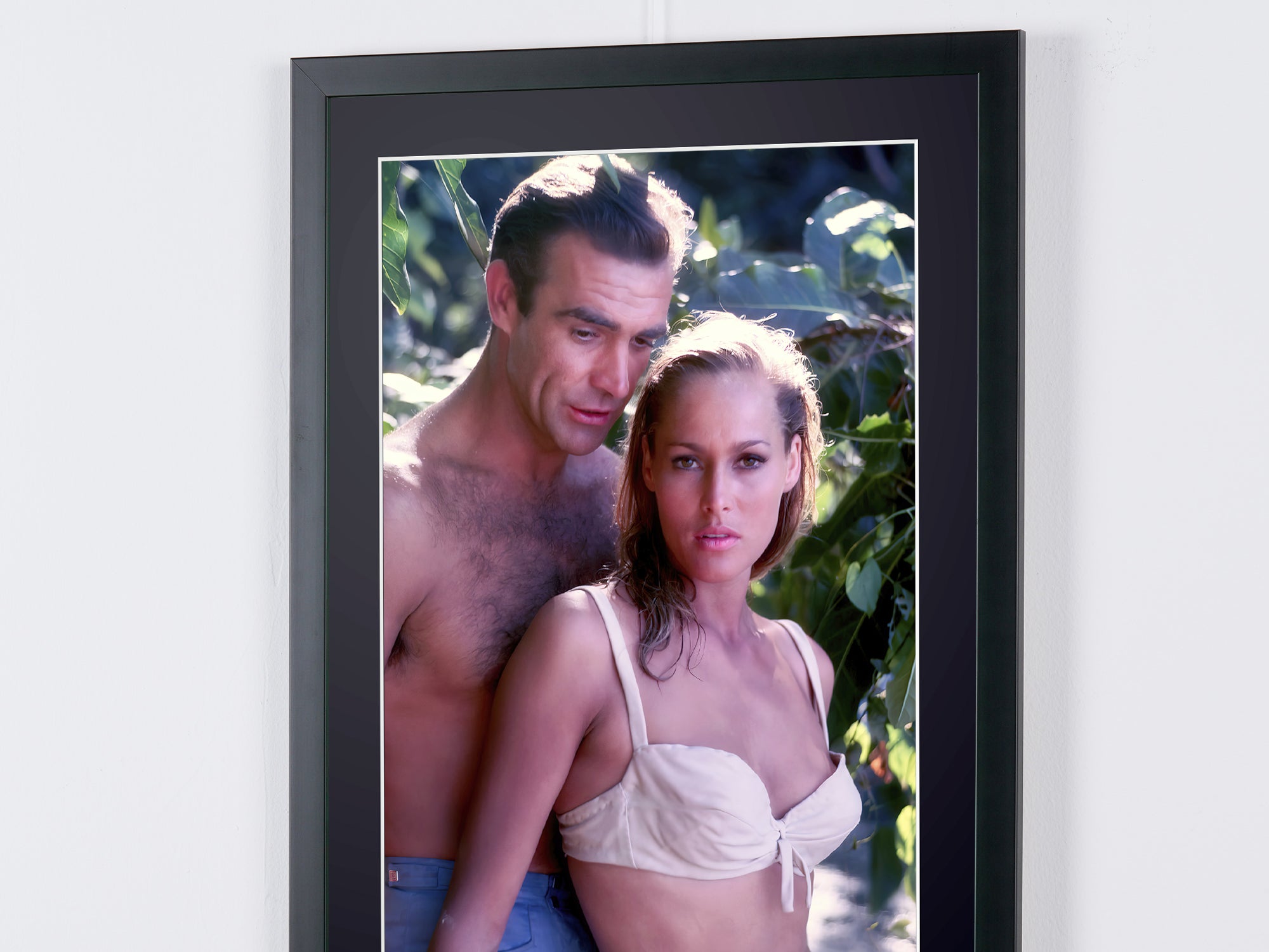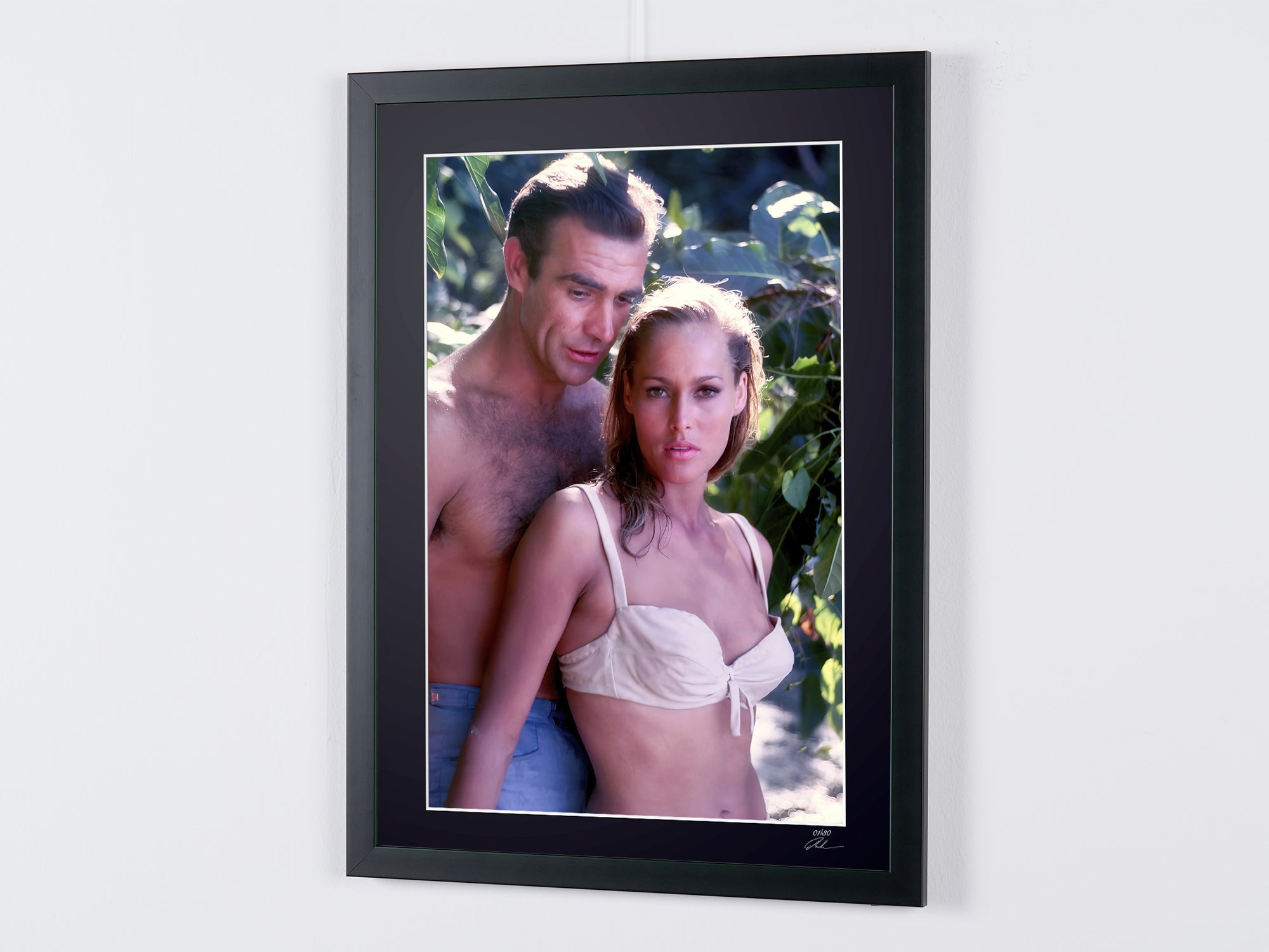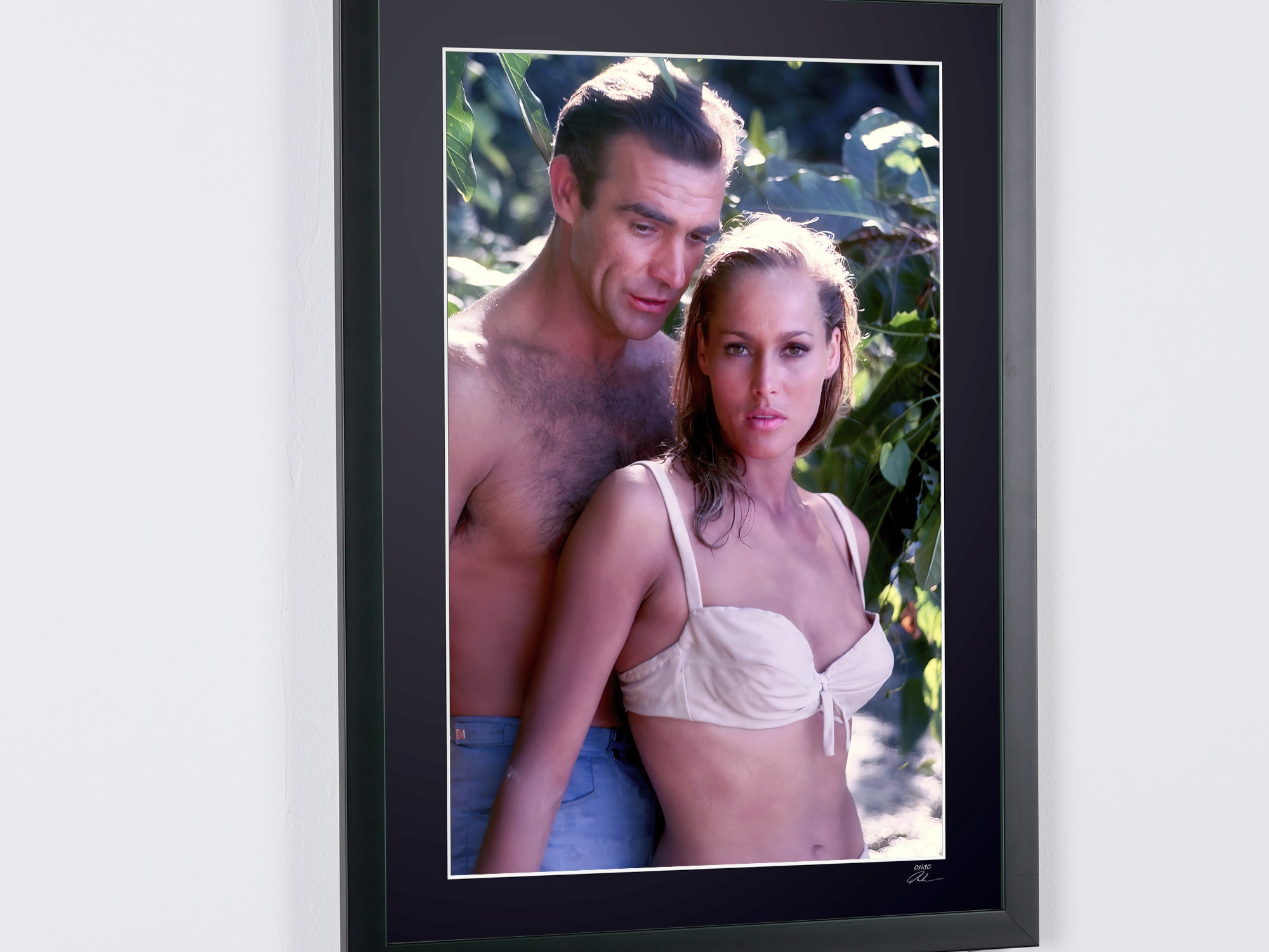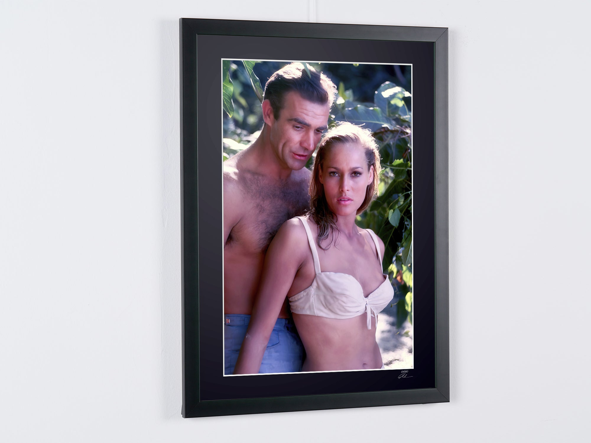 Foto incorniciata di "James Bond 007: Dr. No - Ursula Andress e Sean Connery" — Stampa artistica in bianco e nero su carta Fine Art 70x50 cm