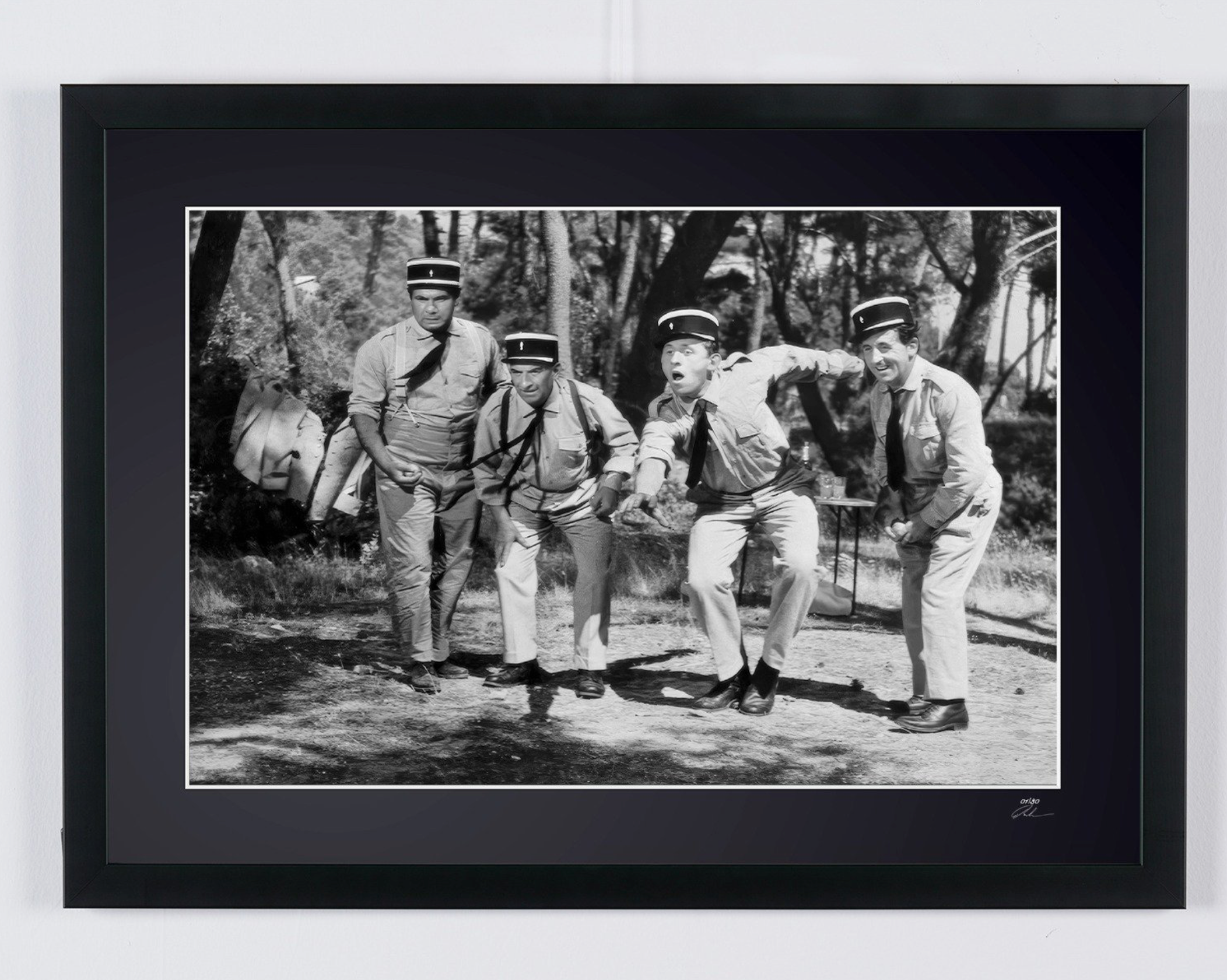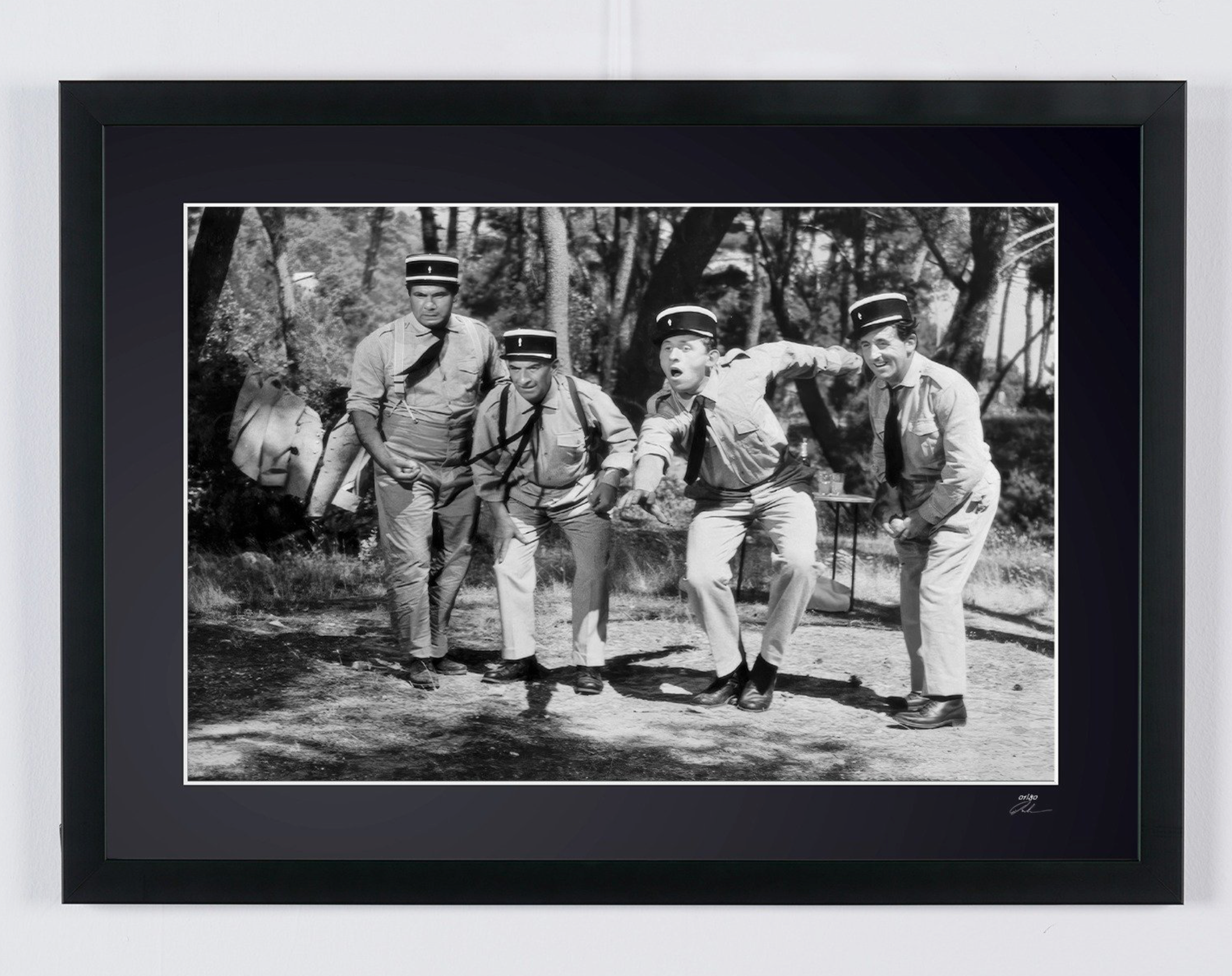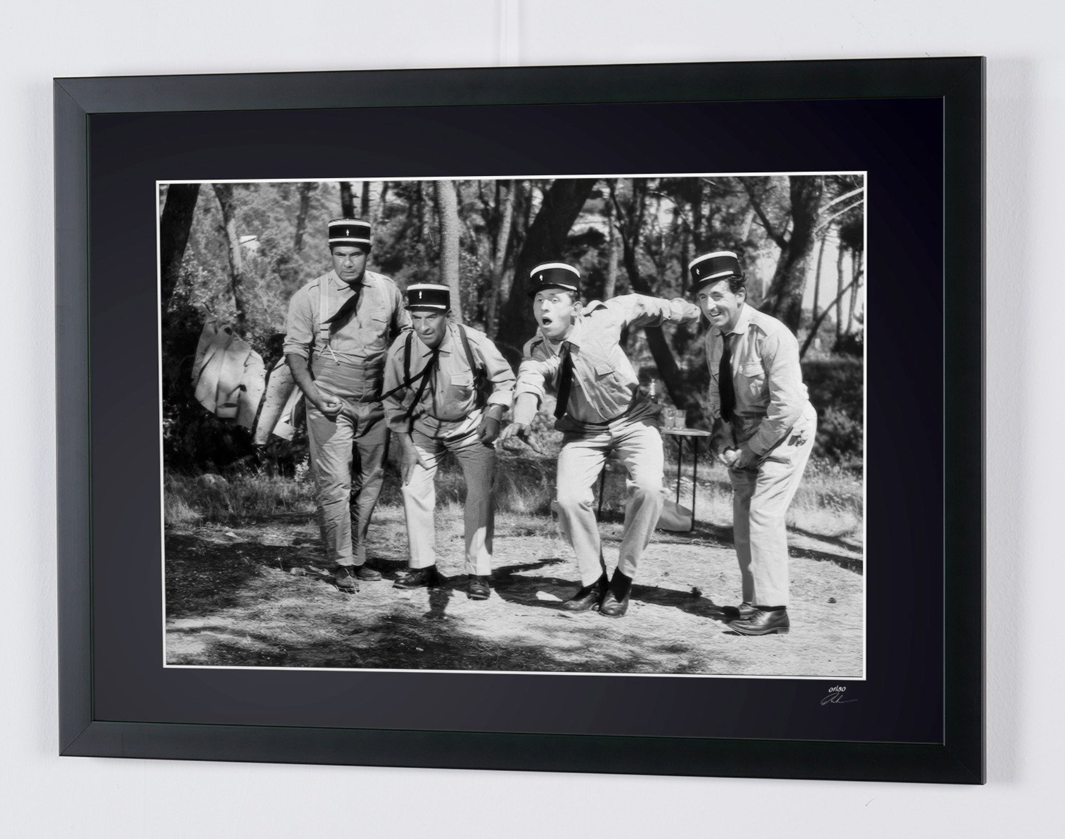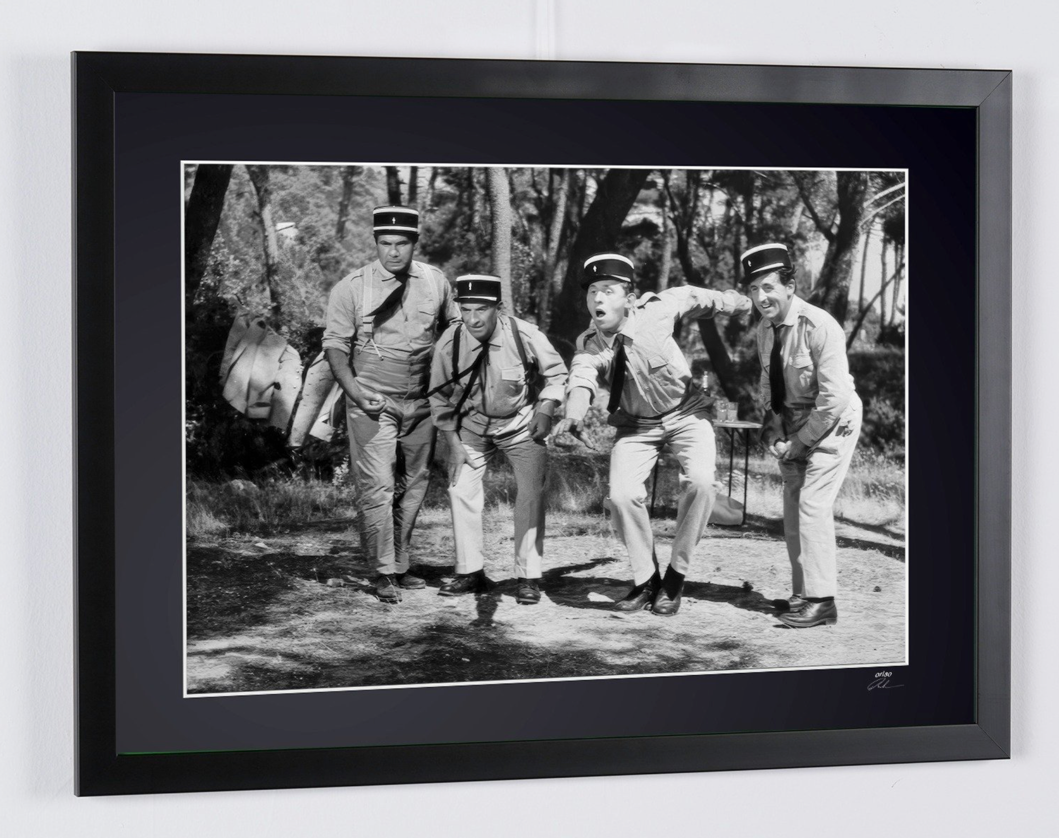 Foto incorniciata tratta dal film "Il gendarme di Saint-Tropez" (1964) – Louis de Funès nel ruolo di Ludovic Cruchot — Stampa artistica in bianco e nero su carta Fine Art 70x50 cm