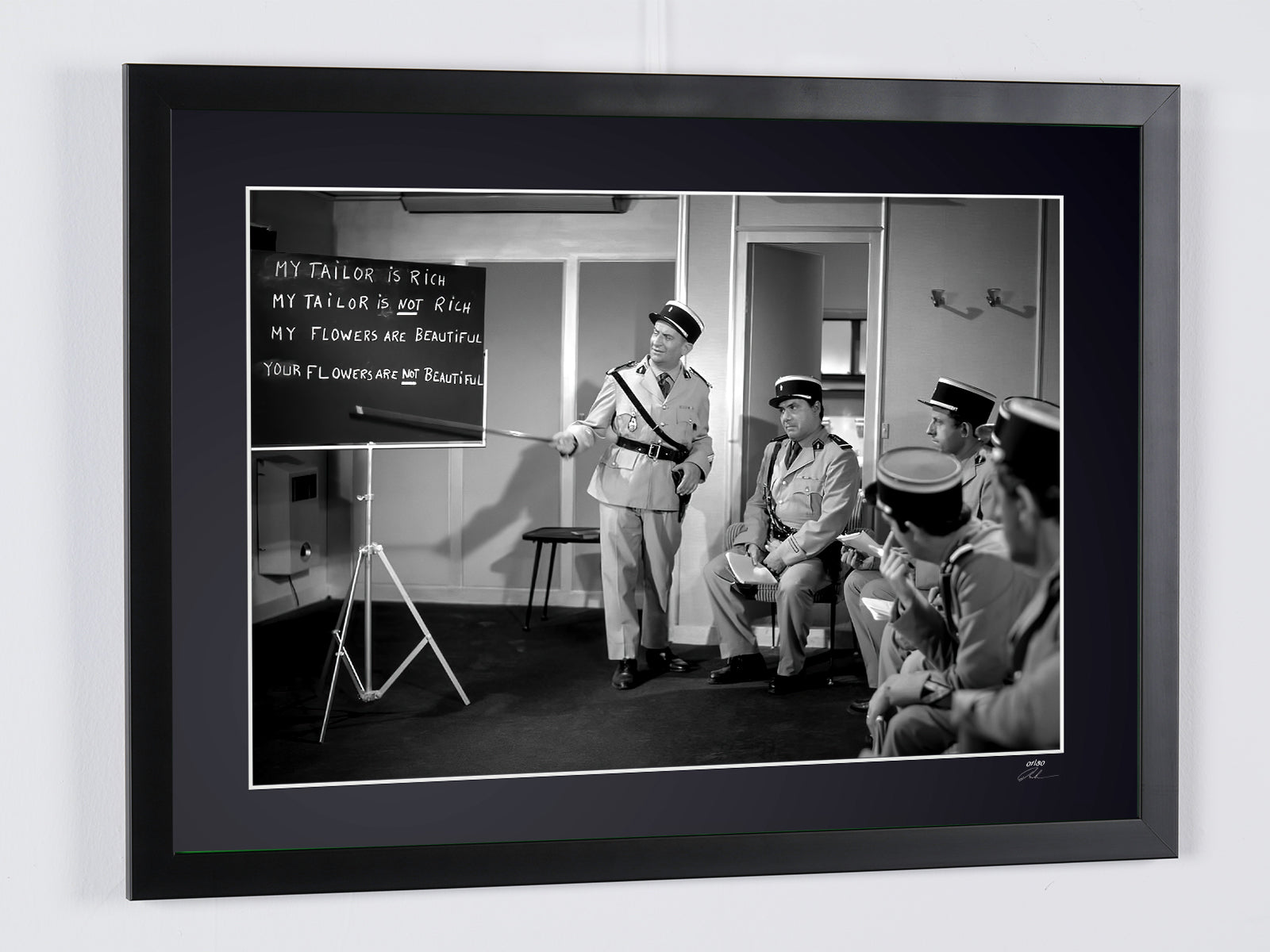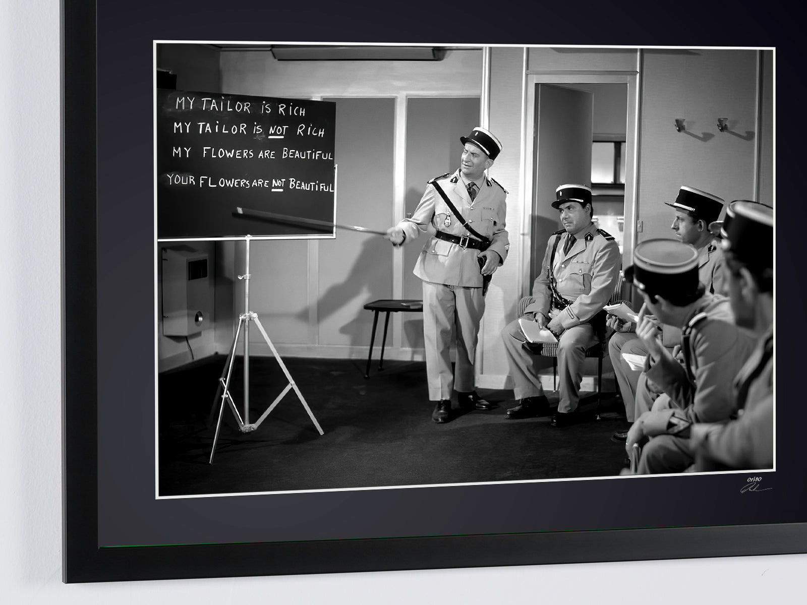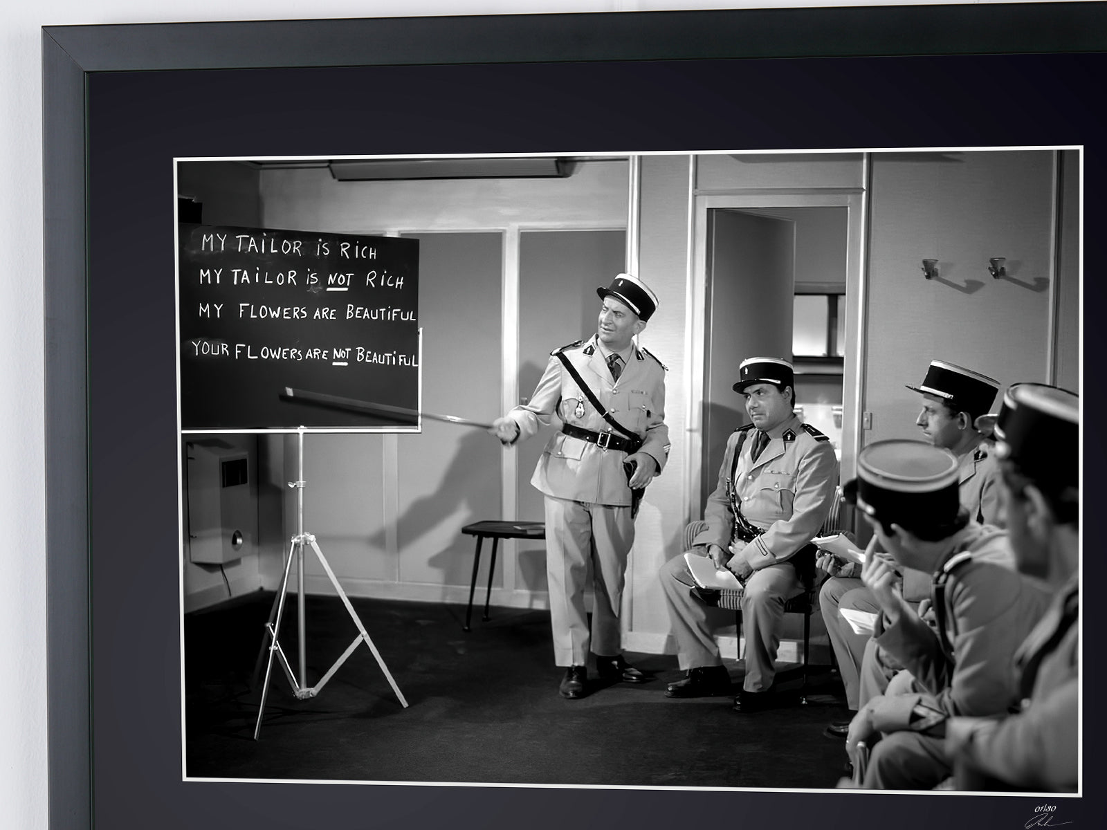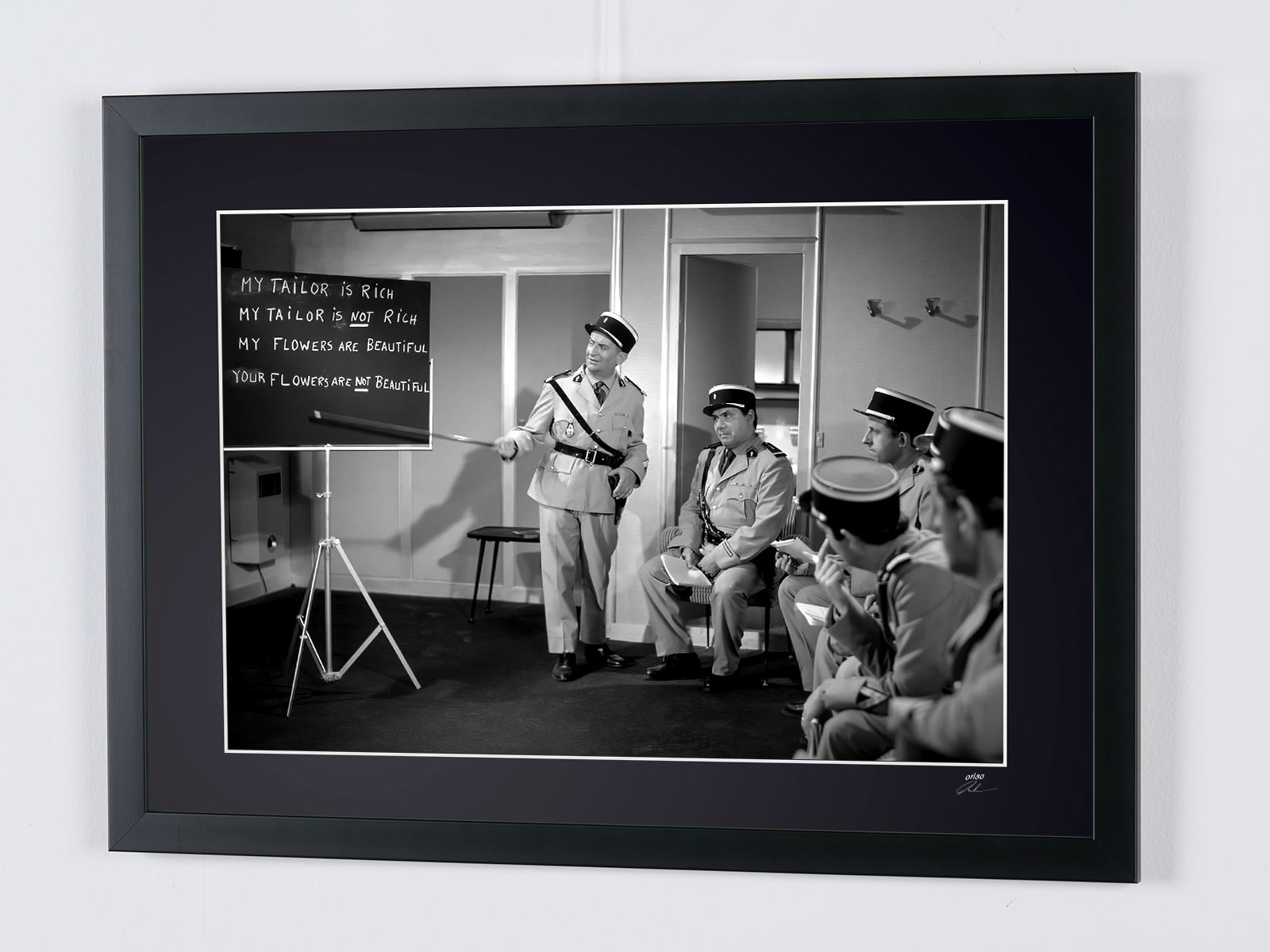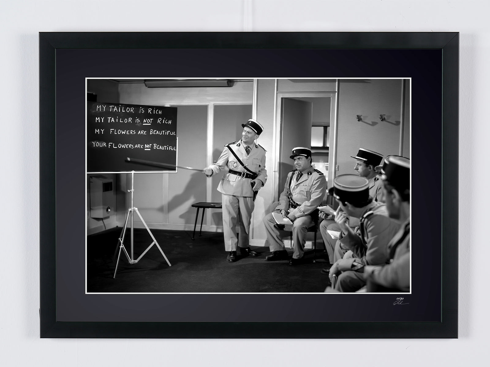 Foto incorniciata tratta dal film "Il gendarme a New York - 1965 - Louis de Funès nel ruolo del commissario Ludovic Cruchot" — Stampa artistica in bianco e nero su carta Fine Art 70x50 cm