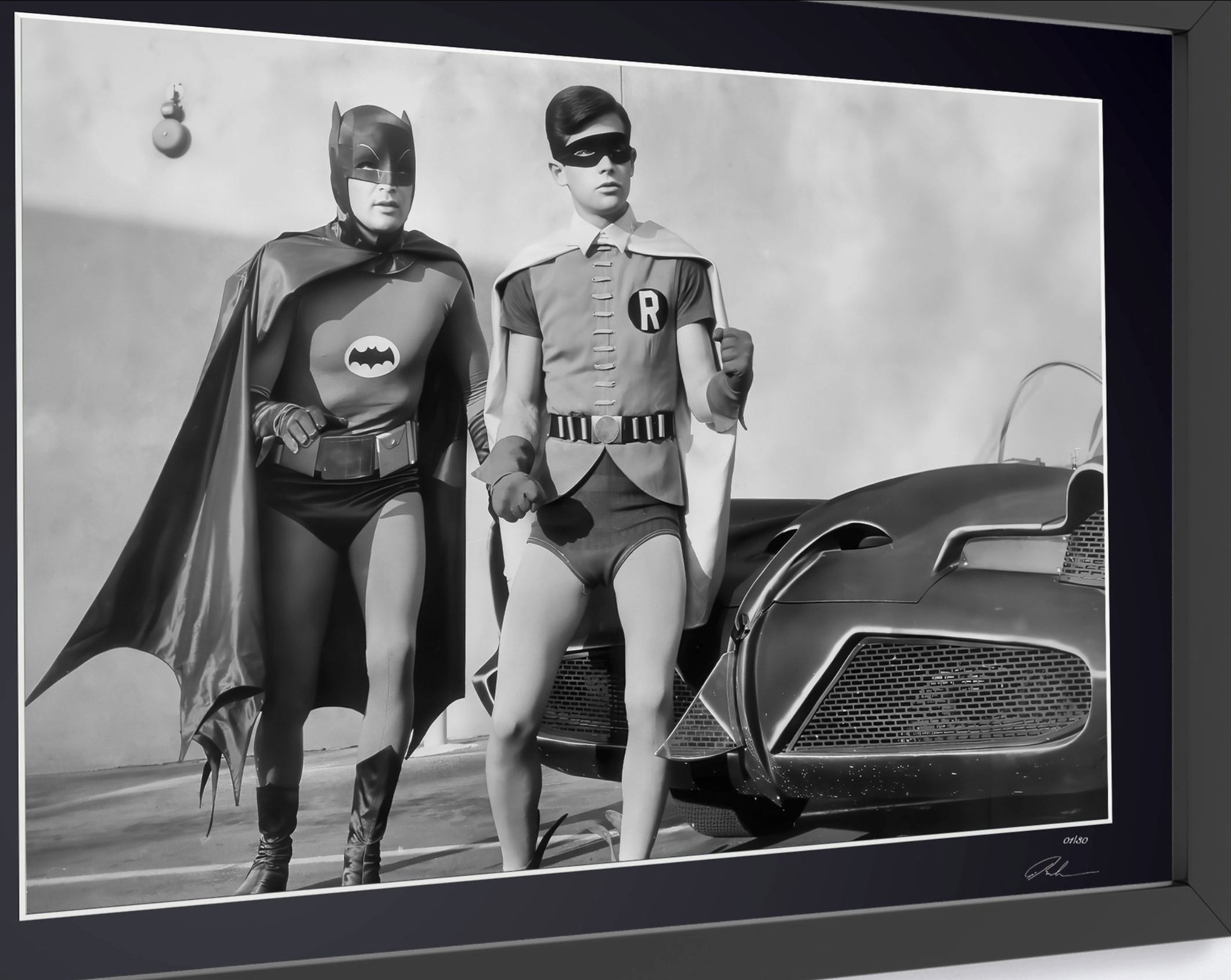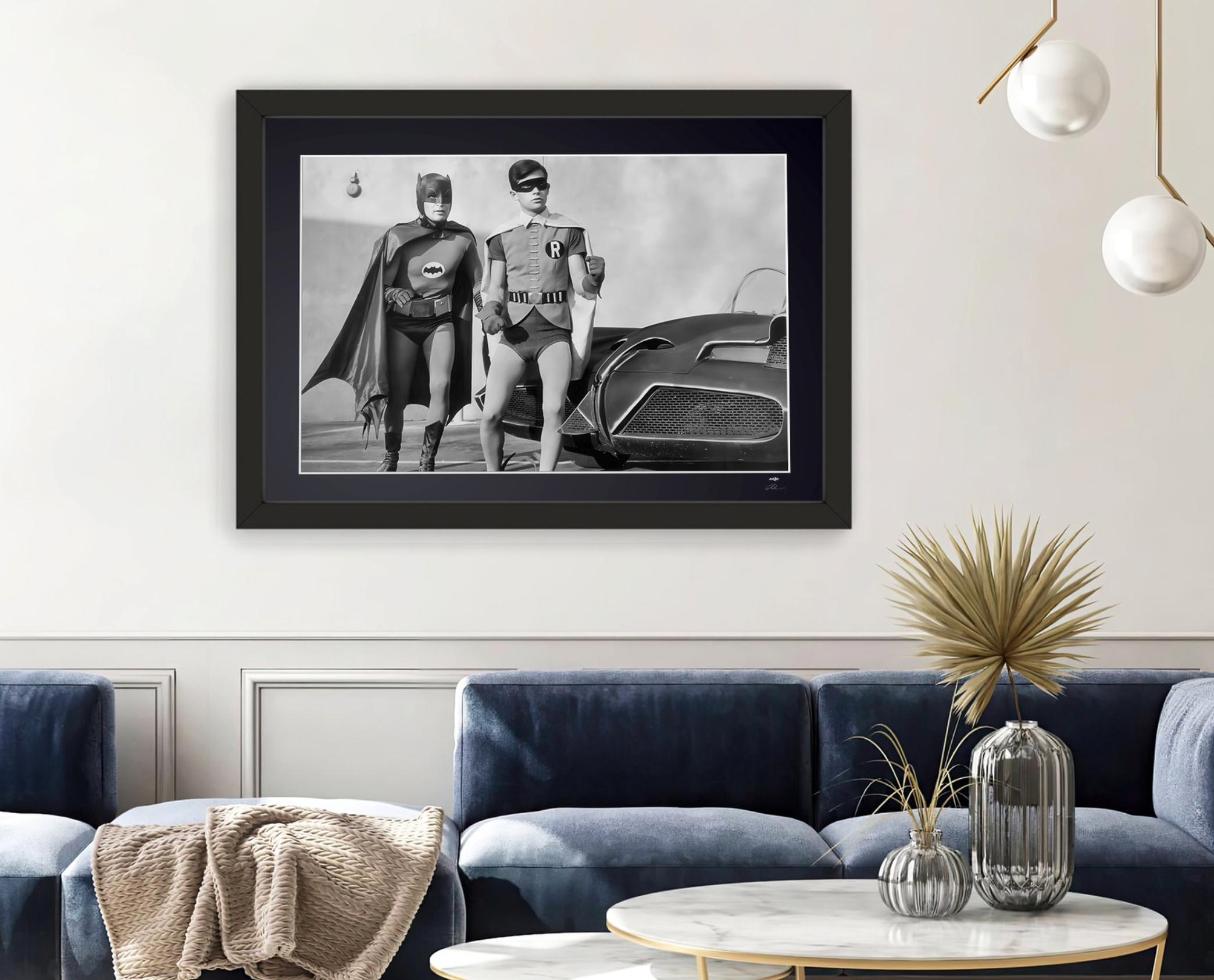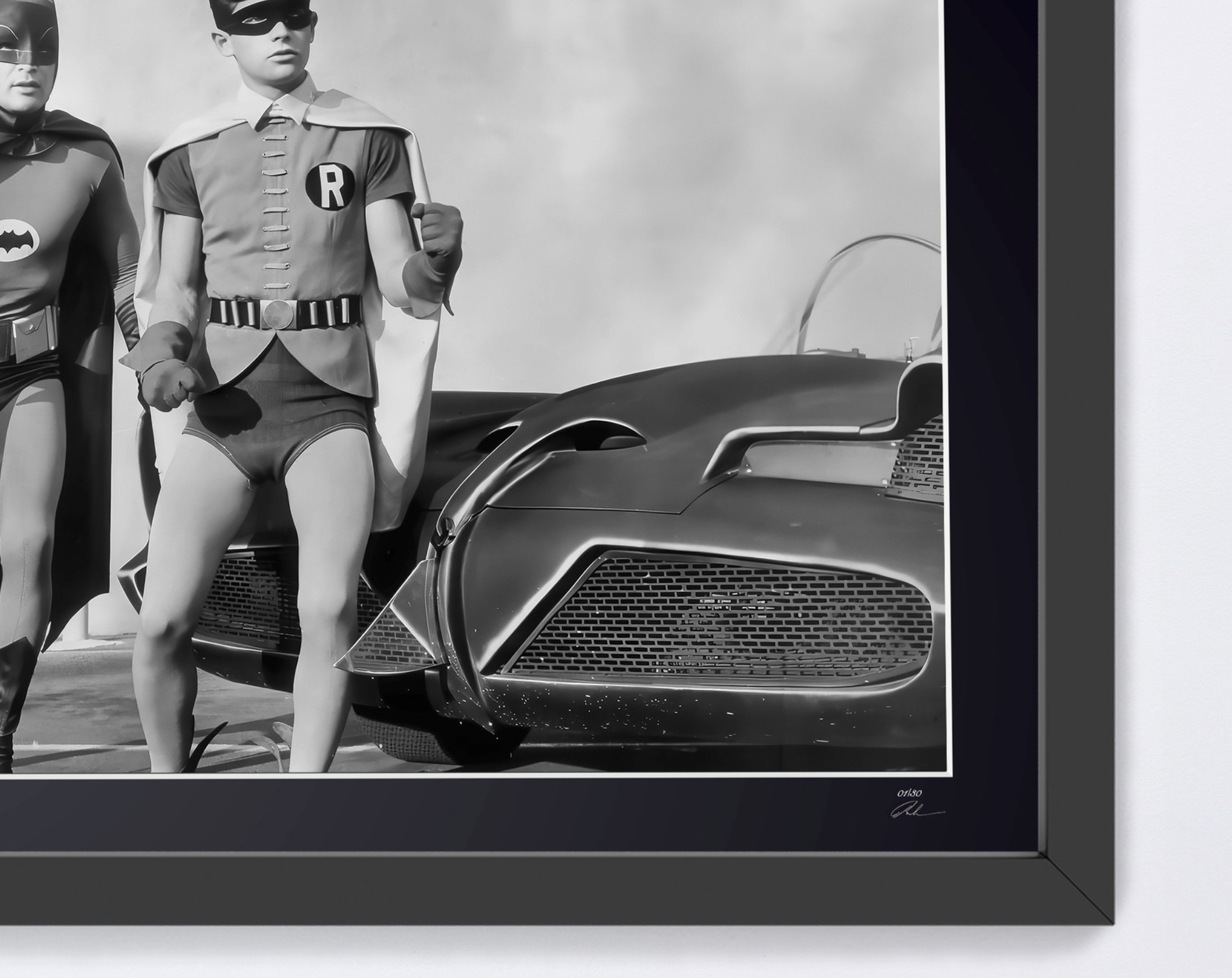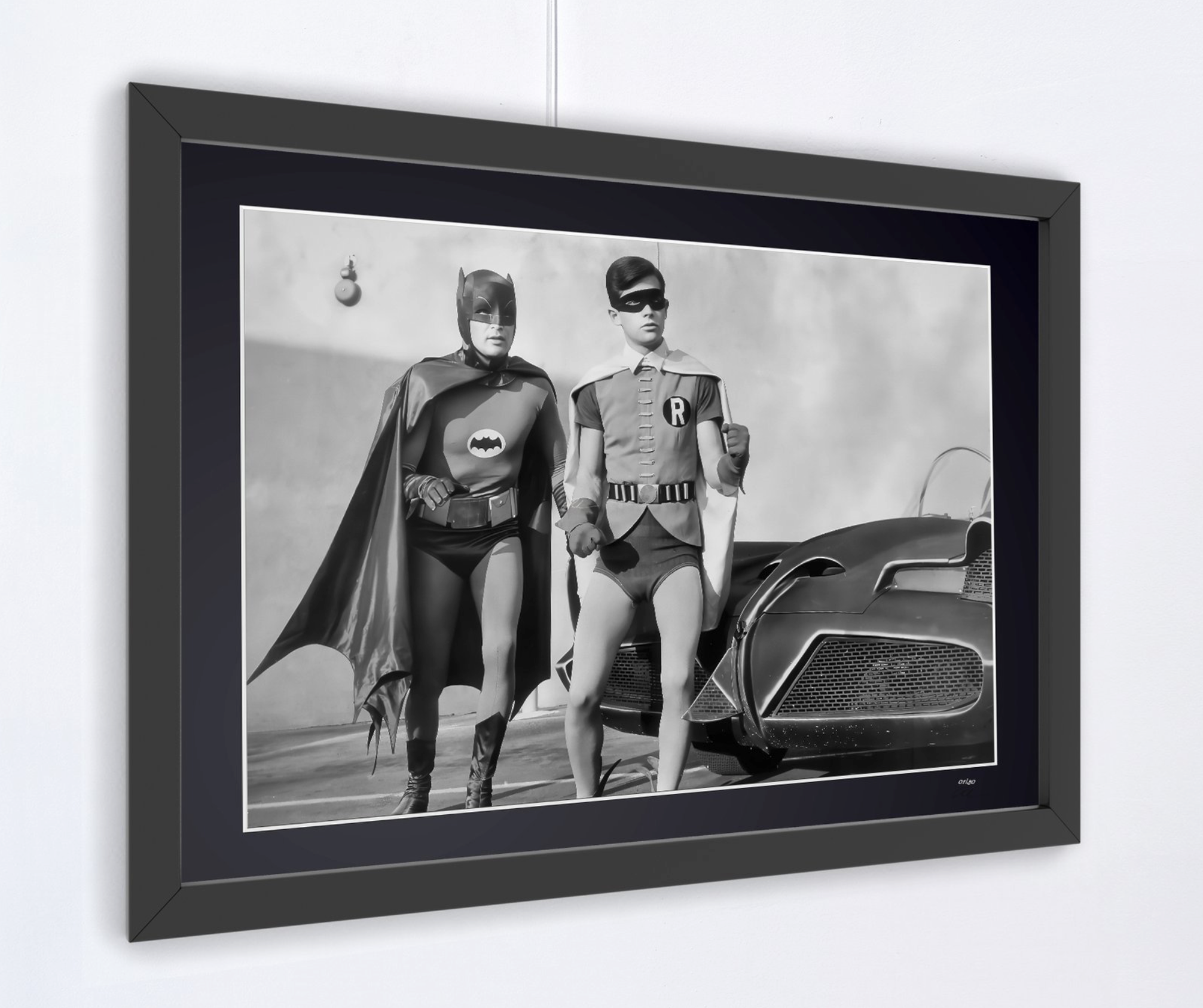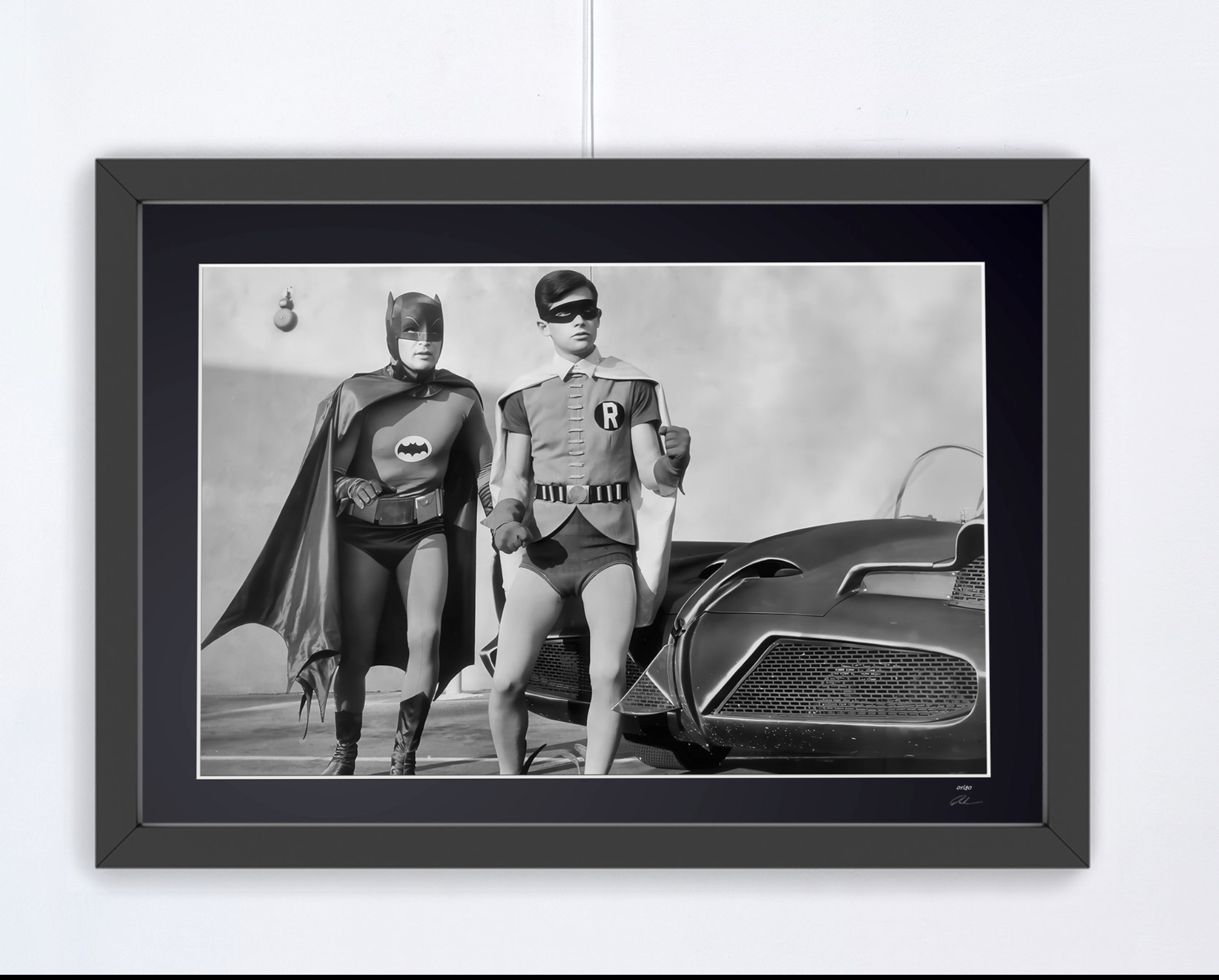 Ingelijste foto van "Adam West en Burt Ward in Batman - Batman 1966" — Zwart-wit kunstafdruk op Fine Art-papier 70 x 50 cm