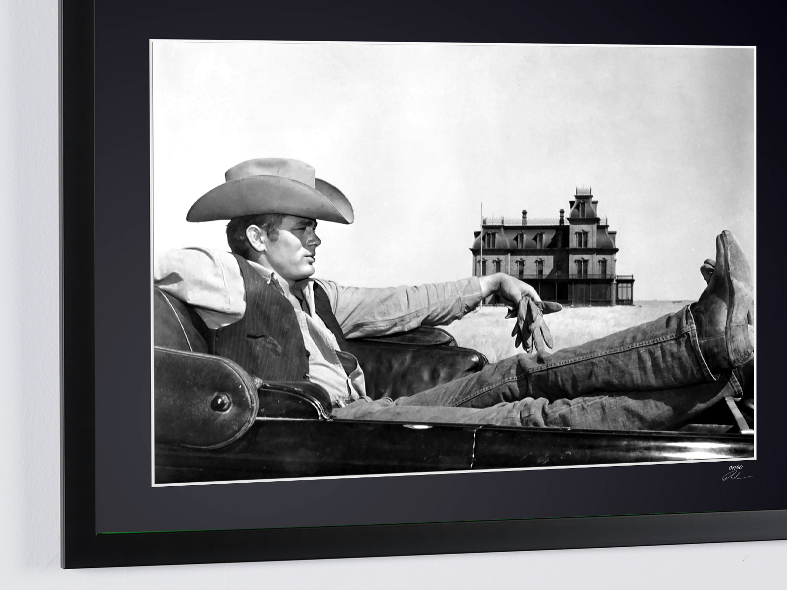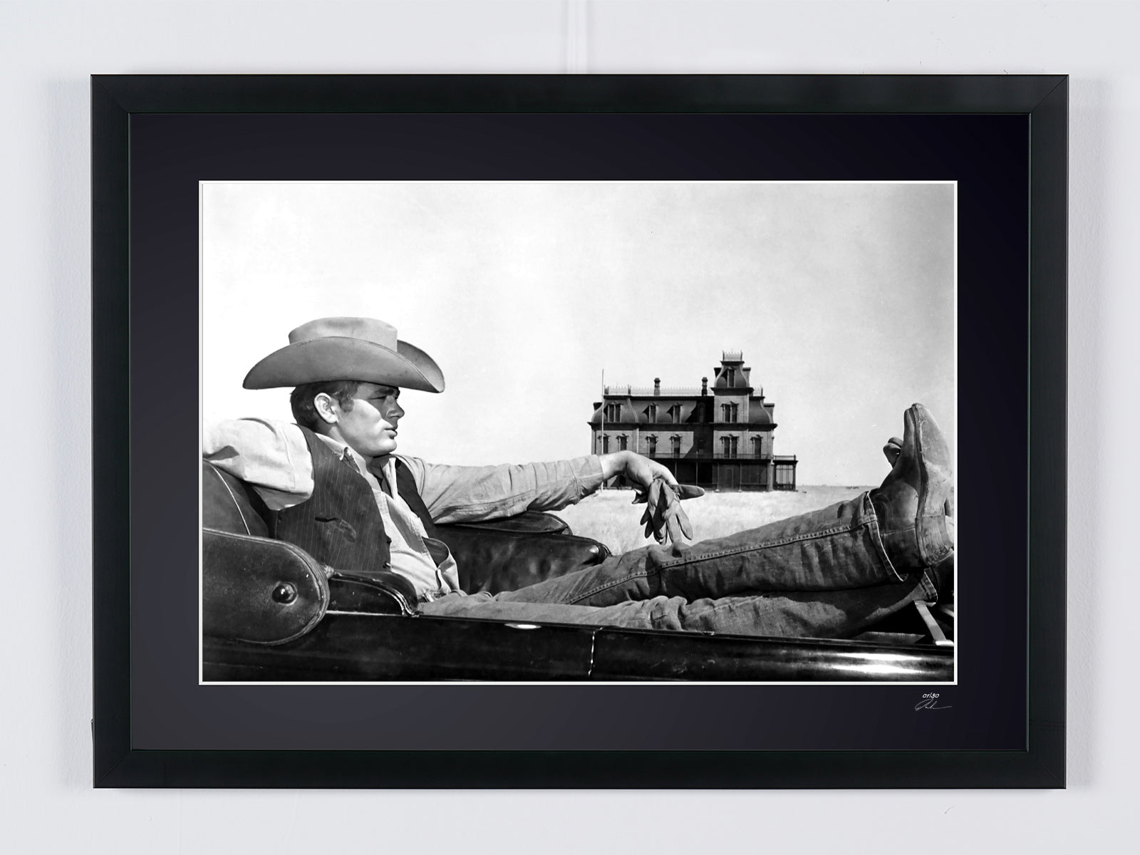 Ingelijste foto van "James Dean - Giant 1956" — Kunstafdruk in zwart-wit op Fine Art-papier 70 x 50 cm