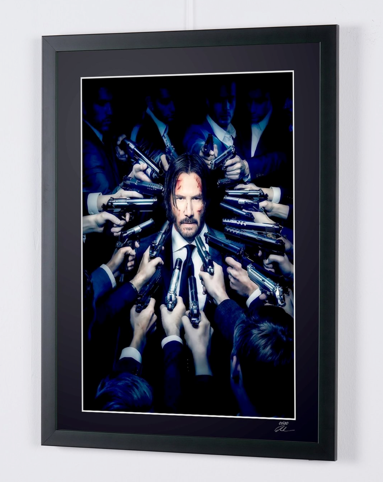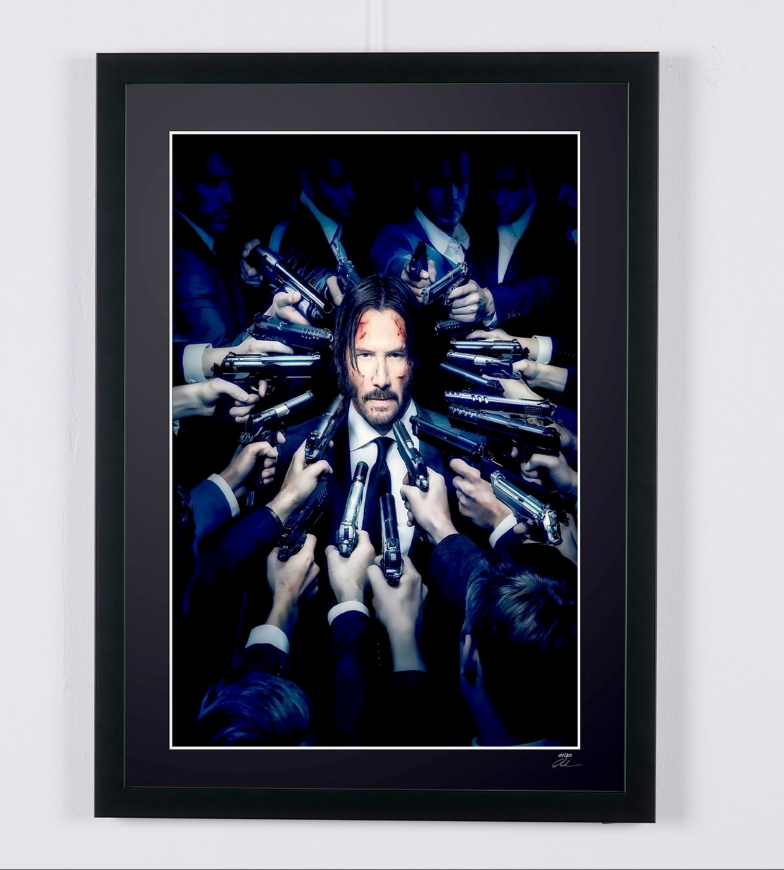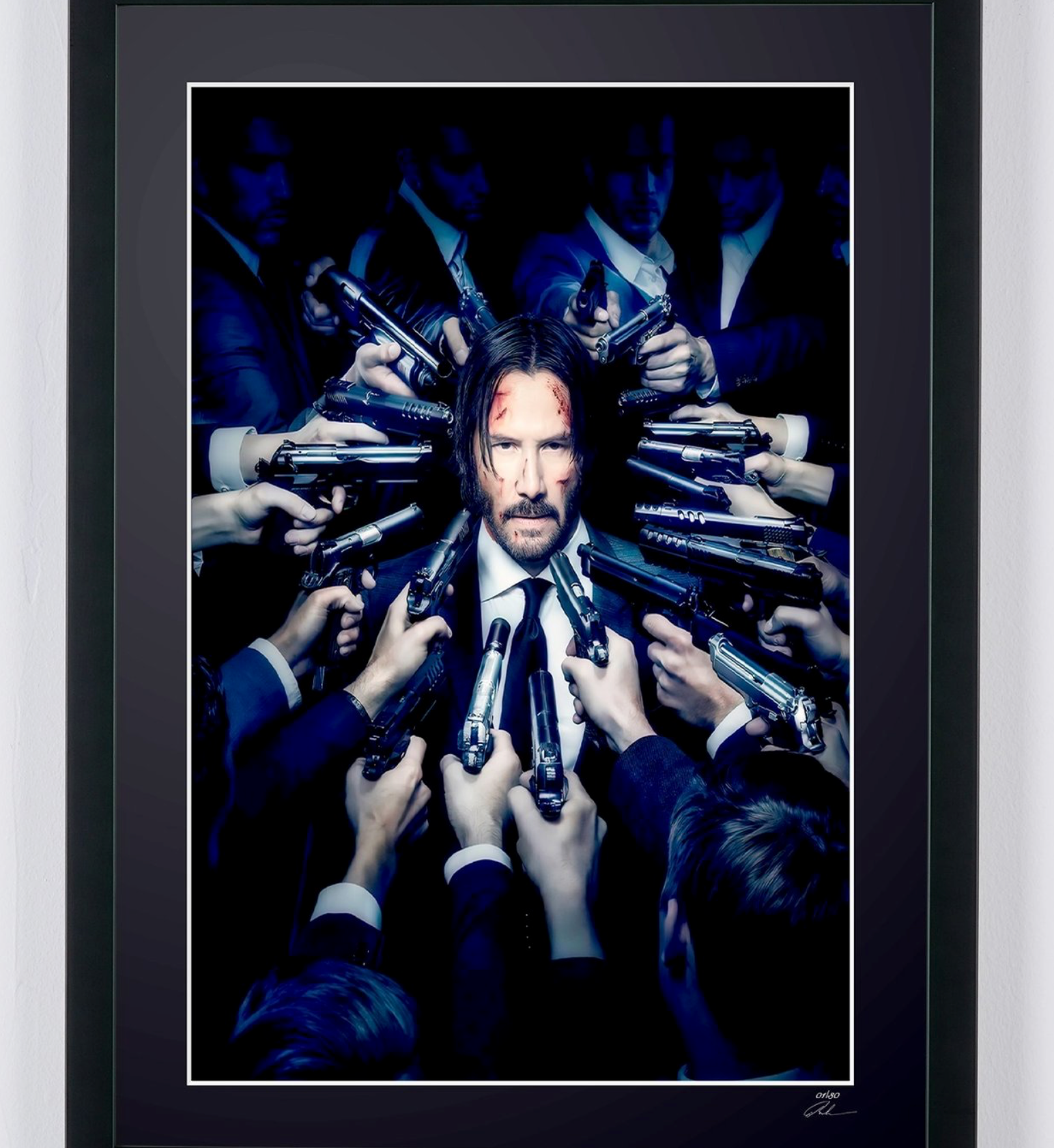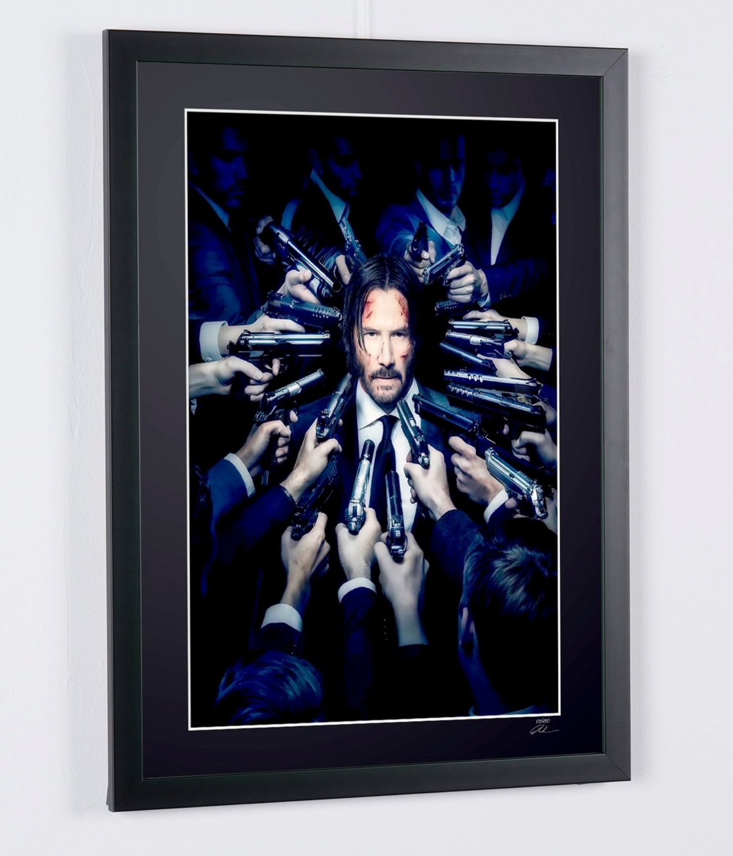 Ingelijste foto van "John Wick - Keanu Reeves" — Kunstafdruk in zwart-wit op Fine Art-papier 70 x 50 cm