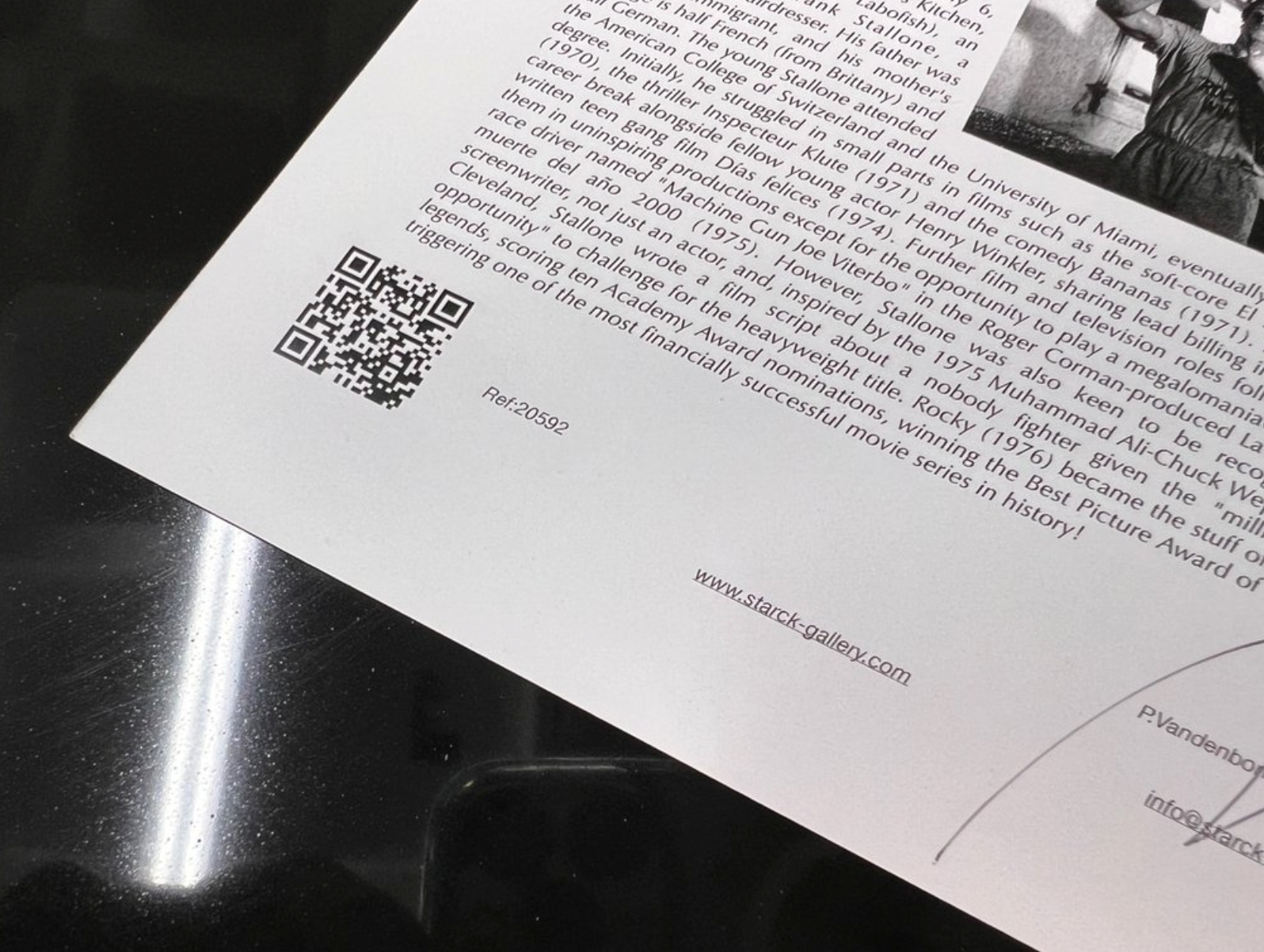 Deze Fine Art-afdruk in zwart-wit is gedrukt op museumkwaliteit papier, formaat 70×50 cm, ingelijst met massief hout en kristalglas. Strikt gelimiteerde, genummerde oplage, voorzien van een hologramcertificaat.