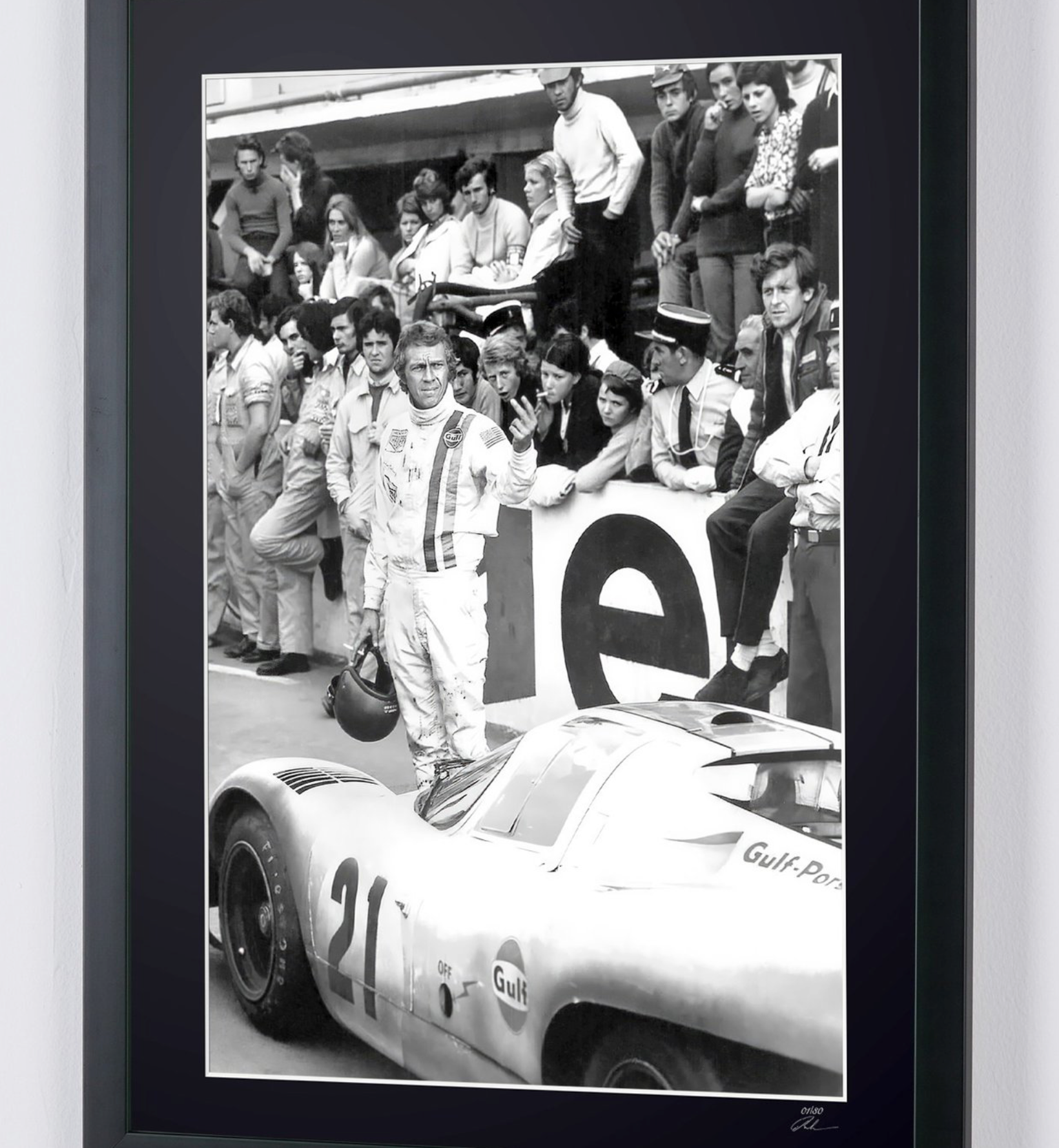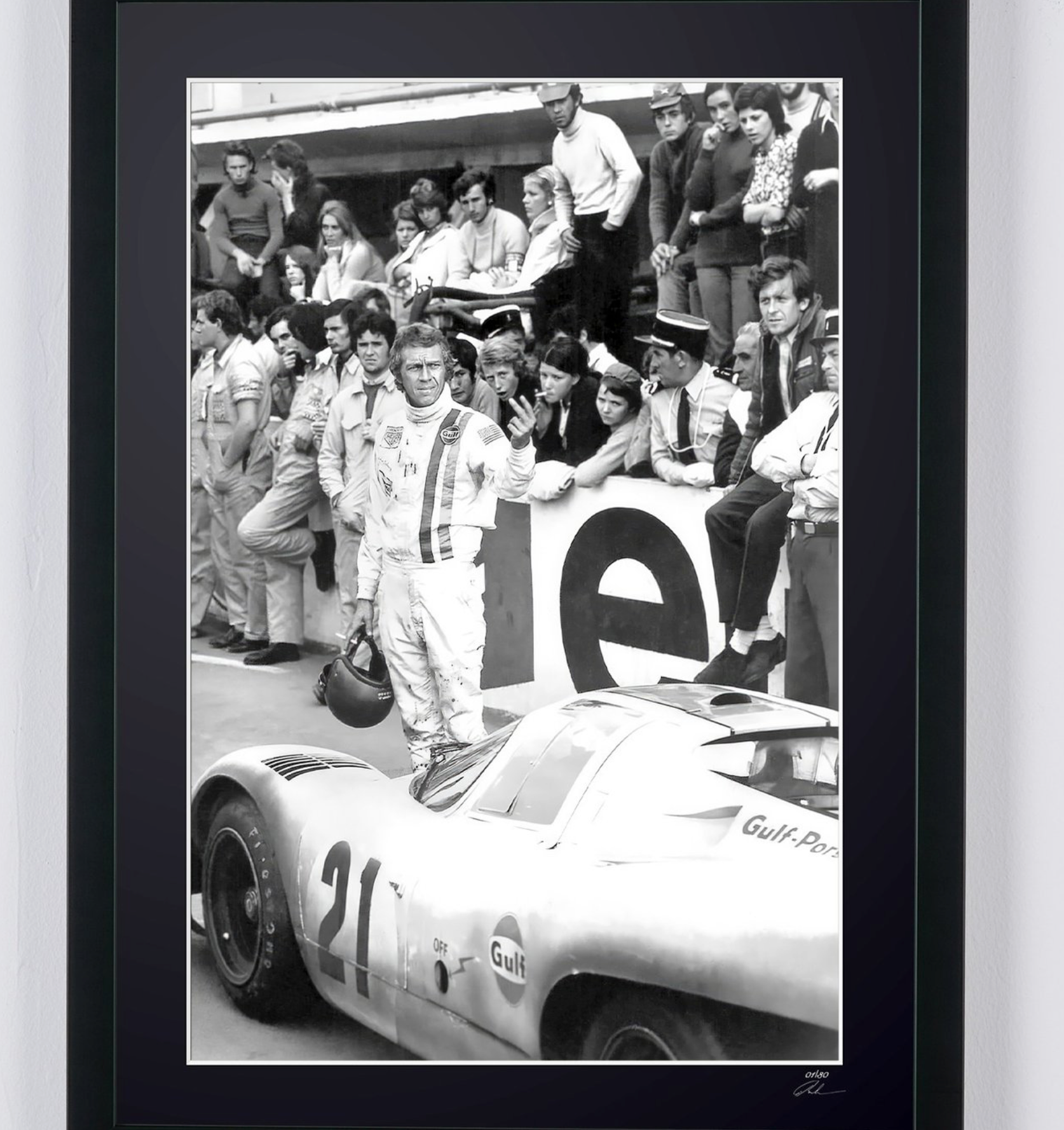 Le Mans 1971 - Steve McQueen & Derek Bell - Houten lijst 70 x 50 cm -2 - - Origineel certificaat (COA), hologramlogo van de uitgever en QR-code