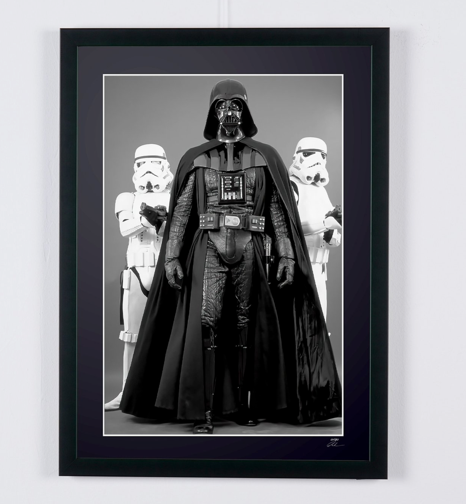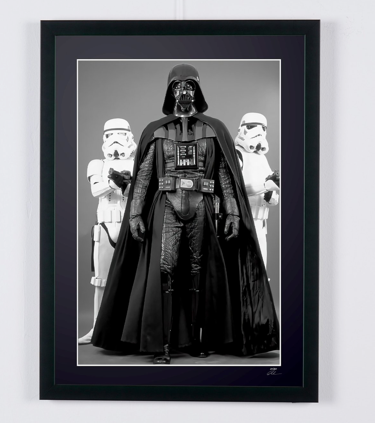 Ingelijste foto van "Star Wars: The Empire Strikes Back 1980 - Darth Vader (David Prowse) - Art Photography" — Zwart-wit kunstafdruk op Fine Art-papier 70x50 cm