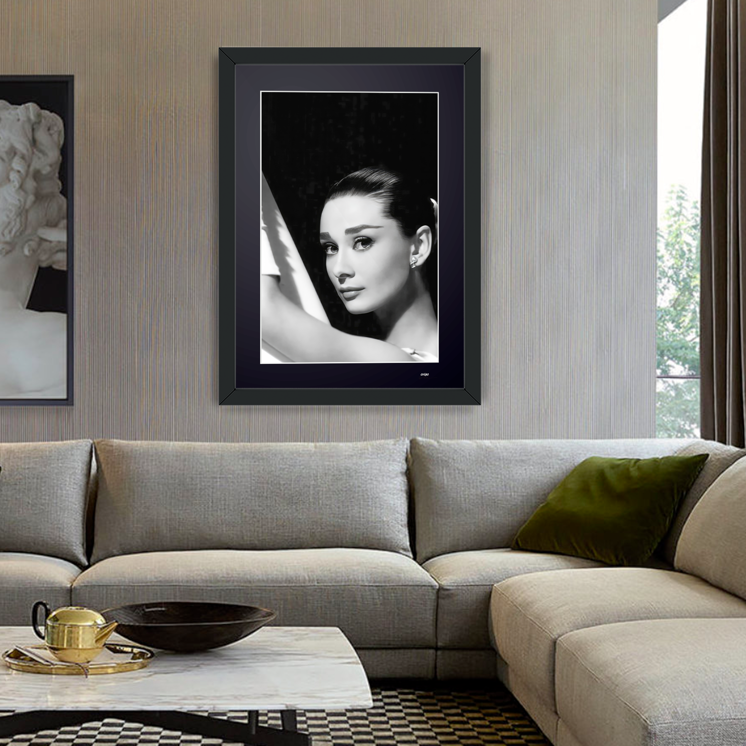 Photo encadrée de "Audrey Hepburn - Iconic" — Tirage d'art noir et blanc sur papier Fine Art 70x50 cm