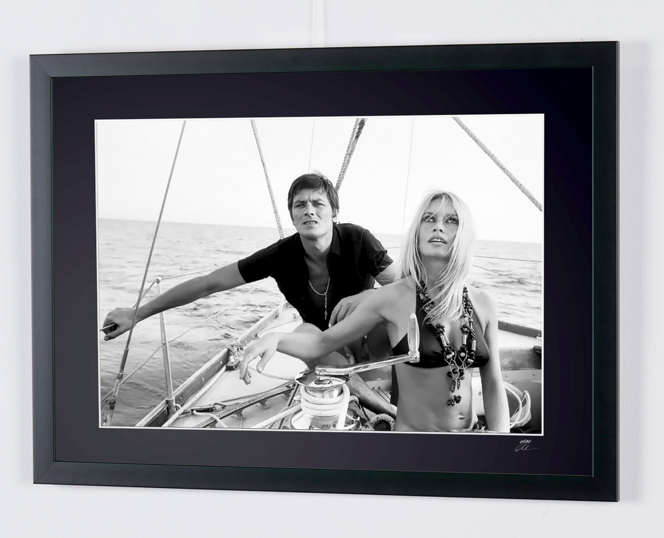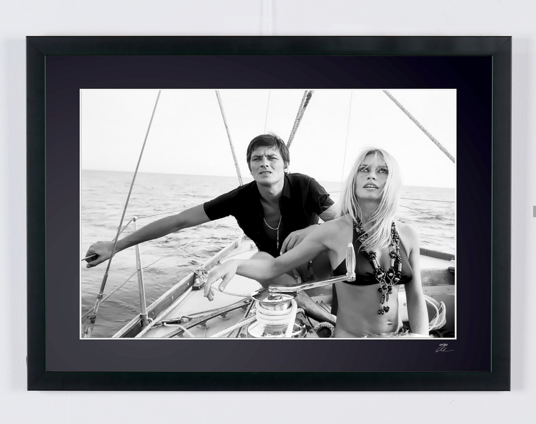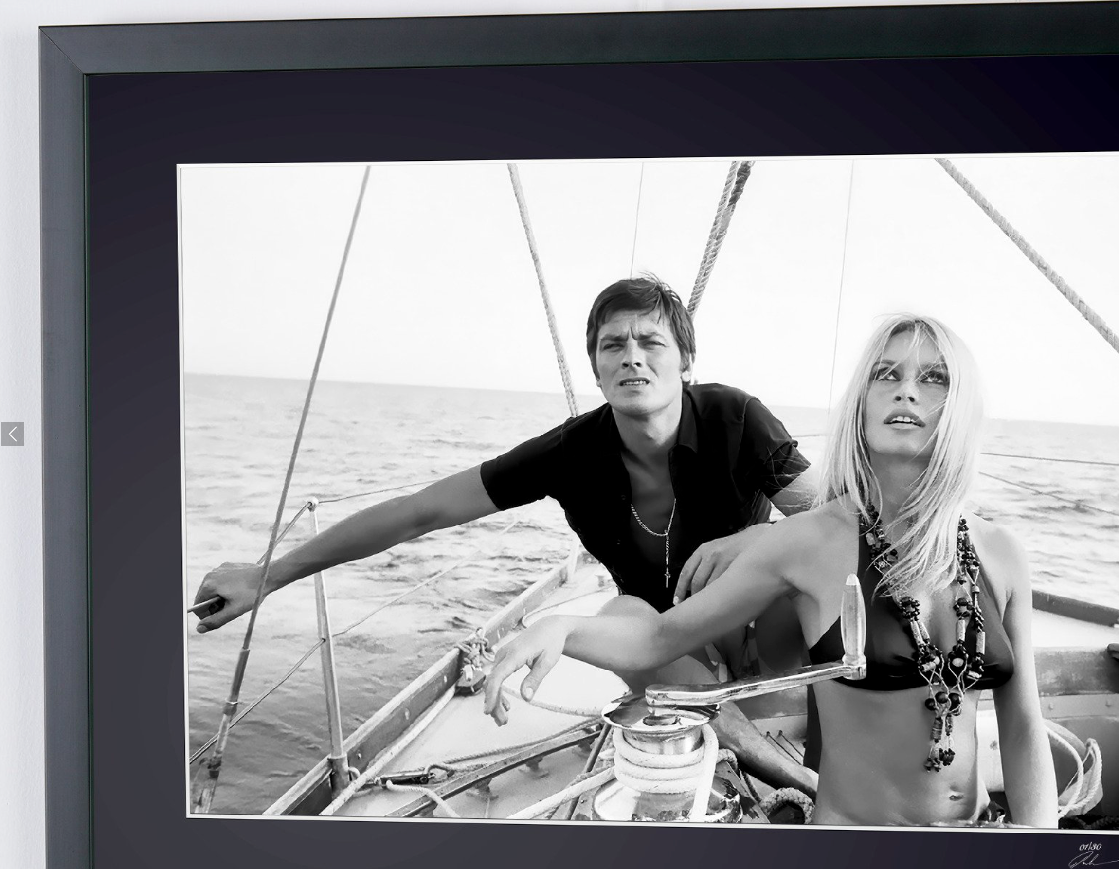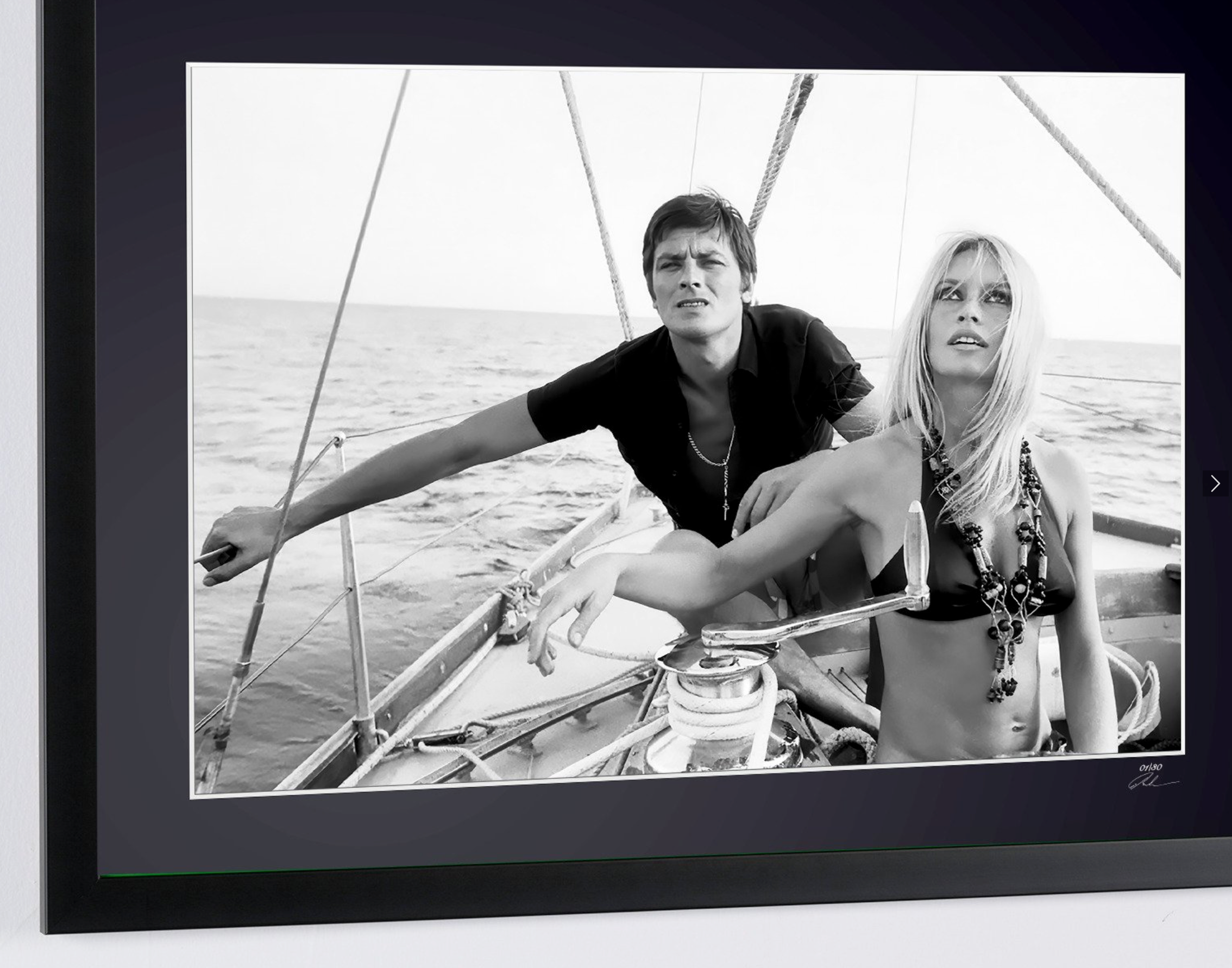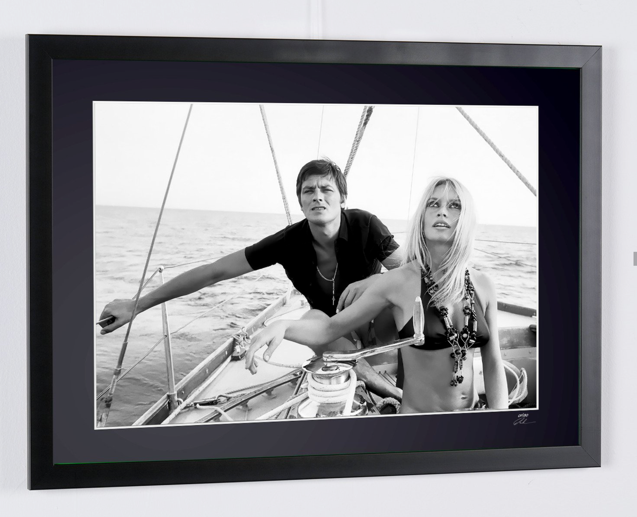 Photo encadrée de "Brigitte Bardot & Alain Delon - Saint Tropez 1968" — Tirage d'art noir et blanc sur papier Fine Art 70x50 cm