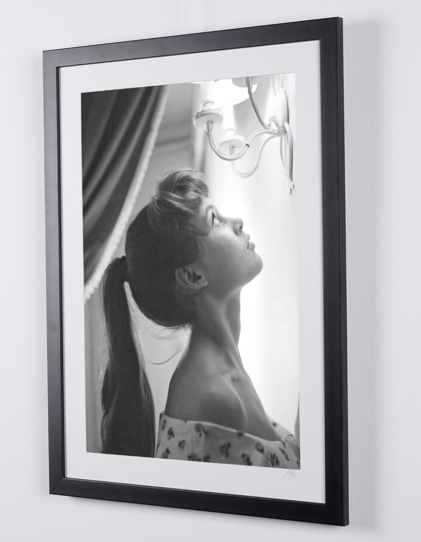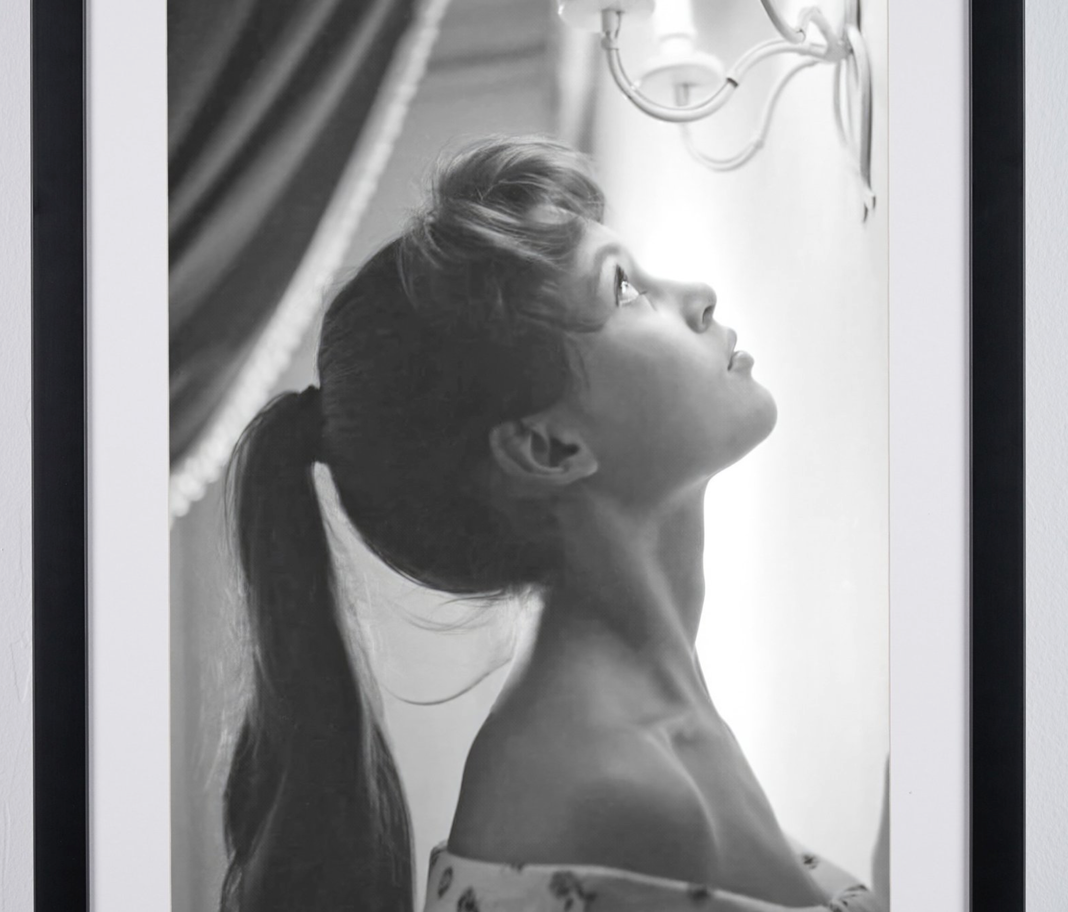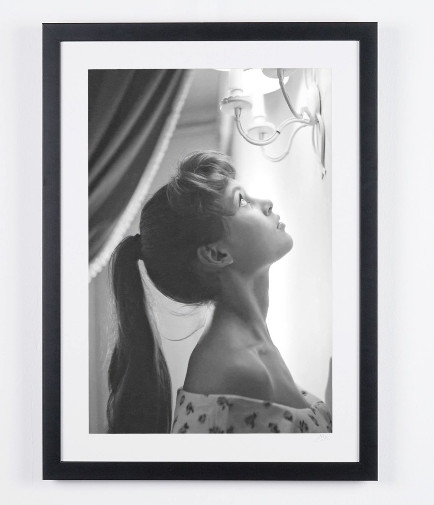 Photo encadrée de "Brigitte Bardot - Photographie, Luxury Wooden Framed 70X50 cm" — Tirage d'art noir et blanc sur papier Fine Art 70x50 cm