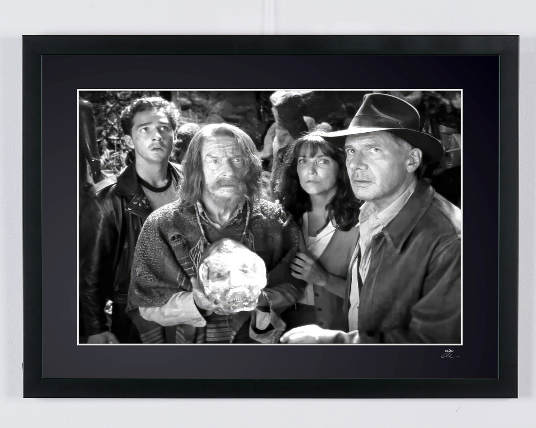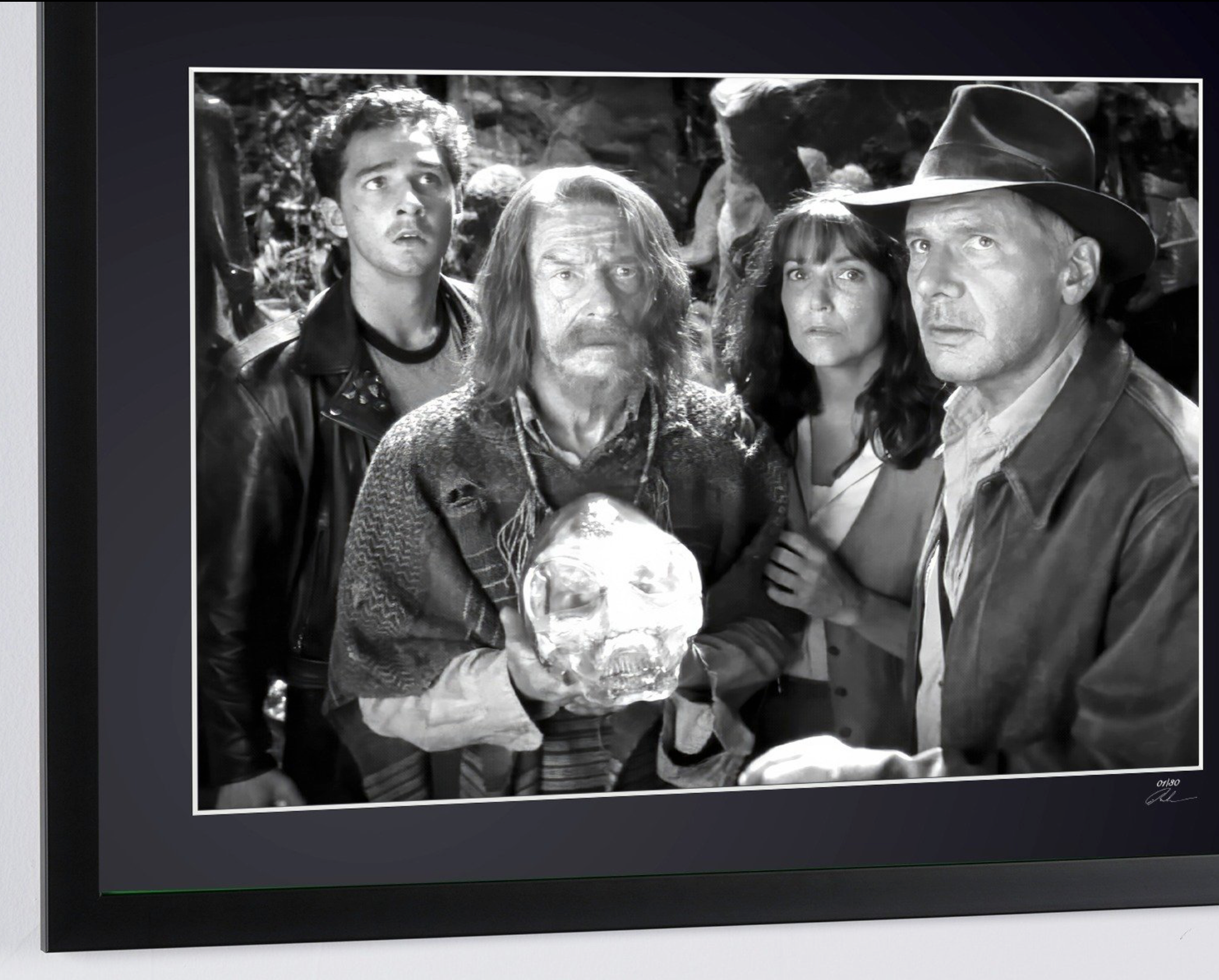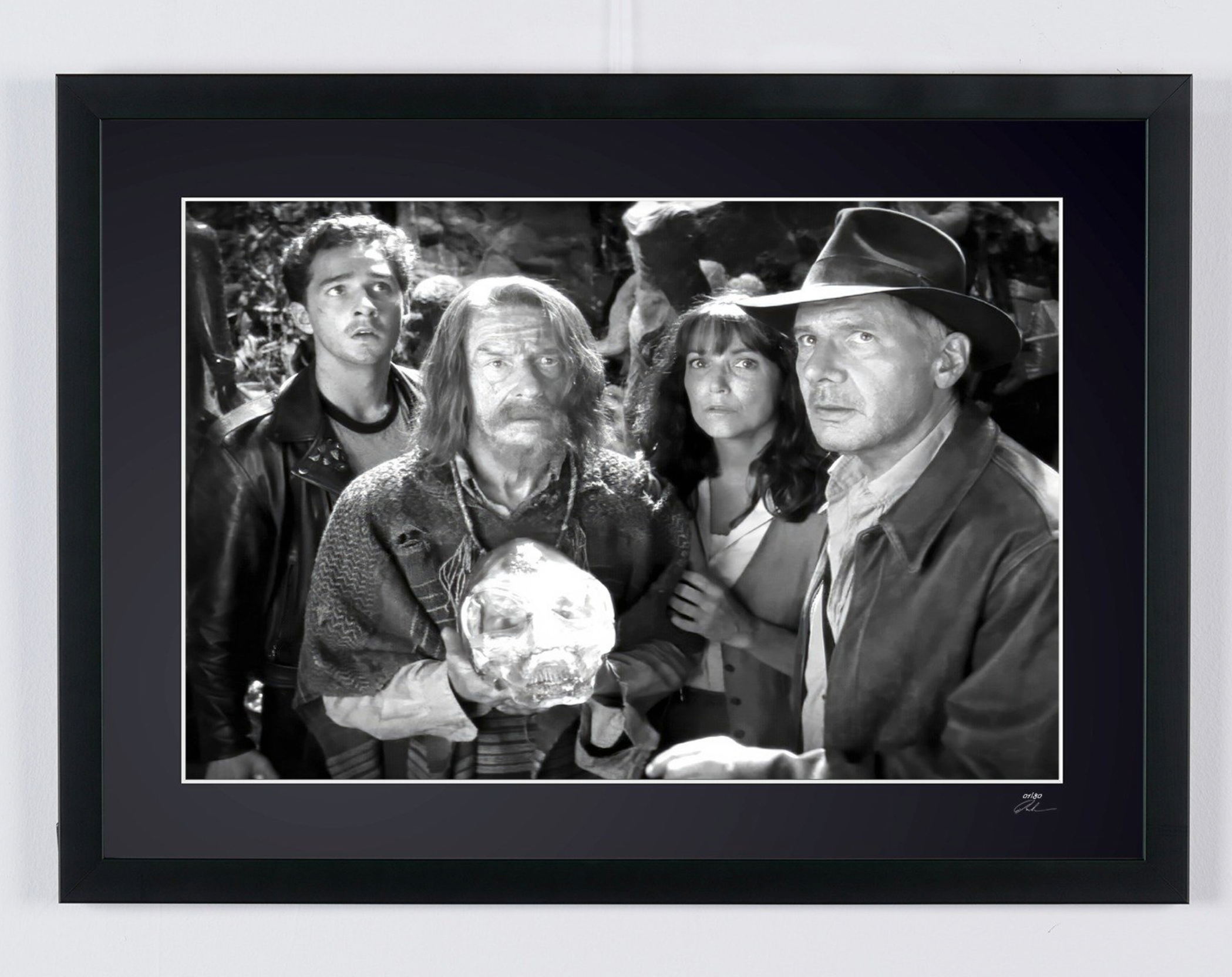 Photo encadrée de "Indiana Jones and the Kingdom of the Crystal Skull - Harrison Ford as Indiana Jones" — Tirage d'art noir et blanc sur papier Fine Art 70x50 cm